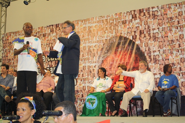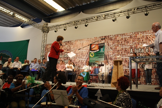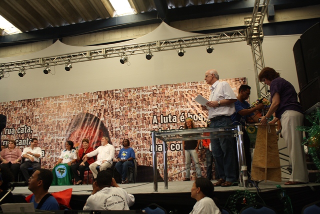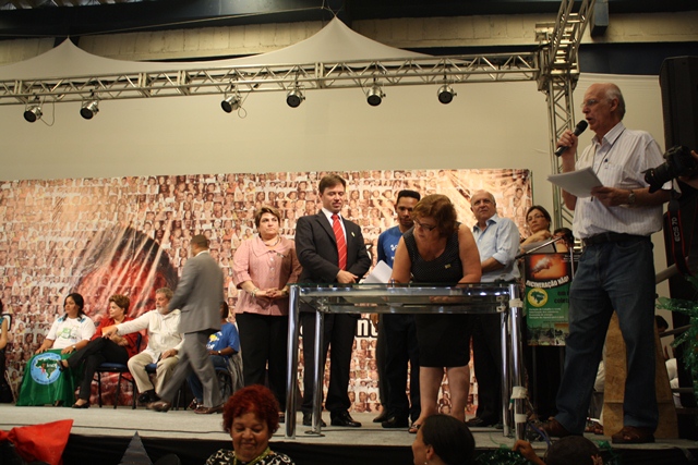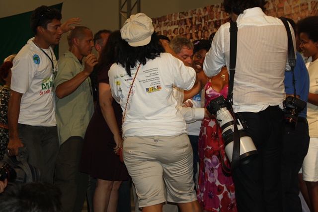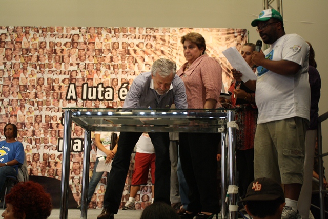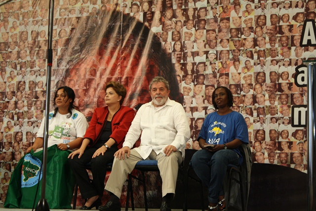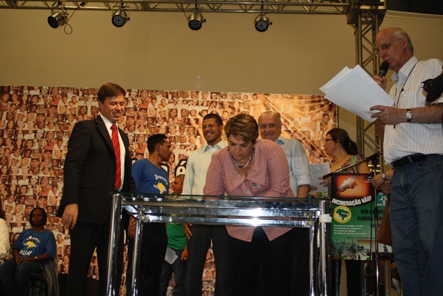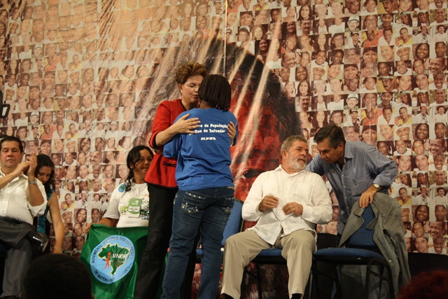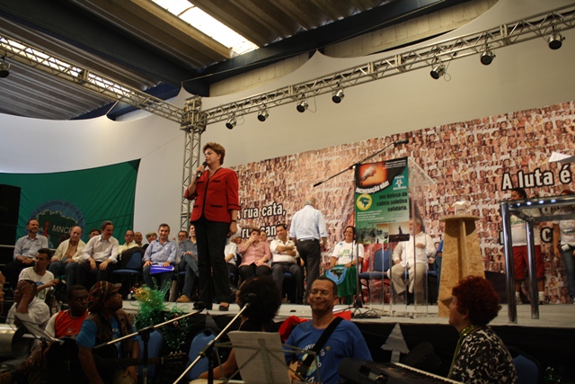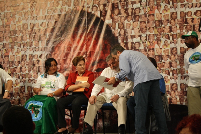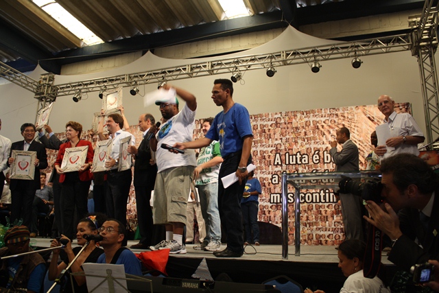 Lula e Dilma entregaram ainda um caminhão a cooperativas de catadores para a coleta seletiva solidária. Os dois acompanharam emocionados as falas das representantes do Movimentos Nacional da População em Situação de Rua, Maria Lúcia Santos Pereira, e do Movimento Nacional de Catadores, Matilde Ramos: