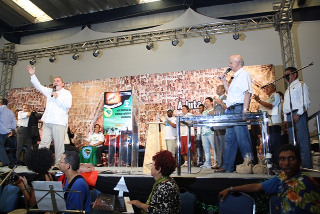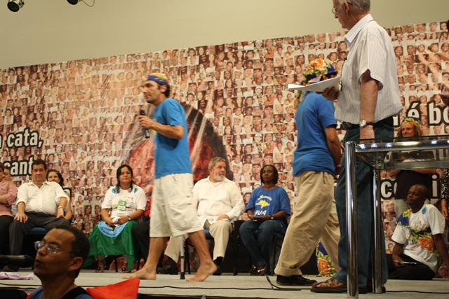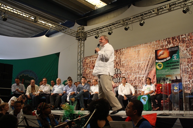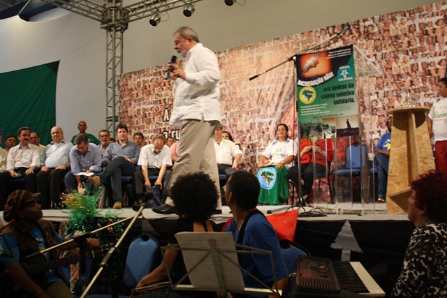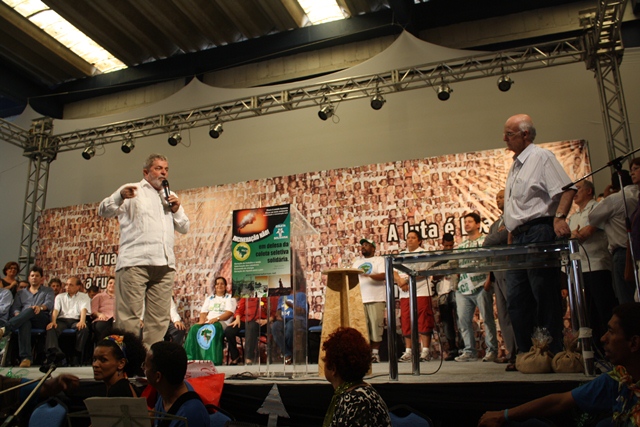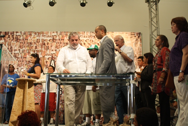 Lula contou aos presentes que tinha visitado o vice-presidente José Alencar, internado após sofrer uma hemorragia, e pediu a todos que rezassem um Pai Nosso. Em seguida, falou sobre o significado do encontro com os catadores e povo de rua: