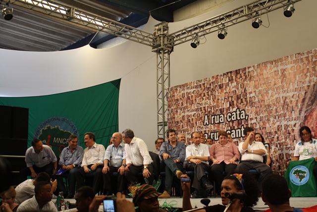 Diversos ministros e autoridades do governo estiveram presentes e firmaram convênios de apoio a projetos que beneficiam a população de rua. A Secretaria de Direitos Humanos apresentou o novo serviço do Disque 100 para receber denúncias de casos de maus tratos e violações contra as pessoas em situação de rua e fornecer informações sobre albergues, centros de referência e assistência social e casas de repouso. As ligações são gratuitas.