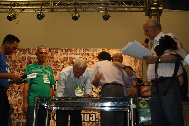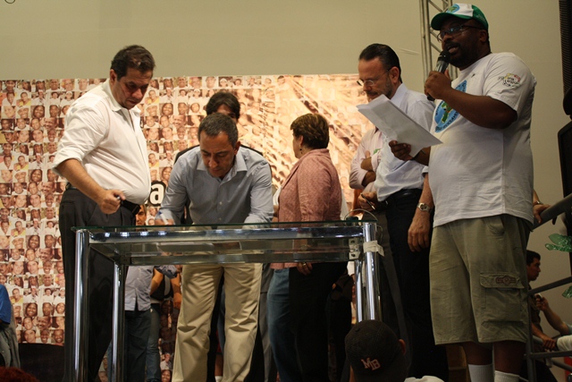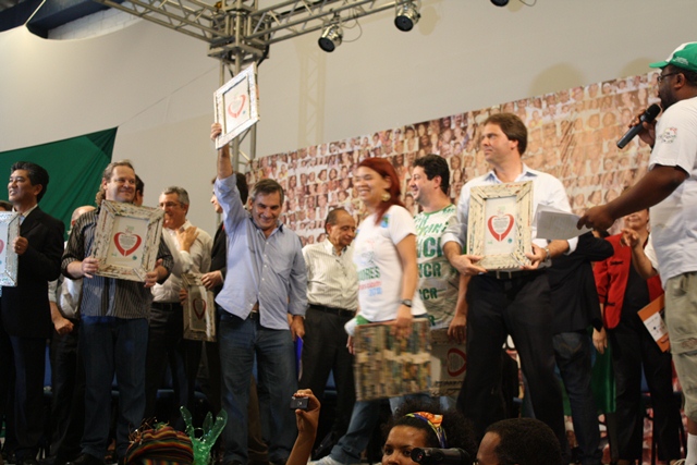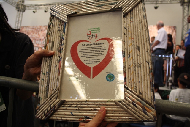 Prefeitos de diversas cidades receberam o selo “Amigo do Catador” por terem aderido ao projeto lançado em 2009 em que o município paga às cooperativas de catadores pelos serviços prestados.