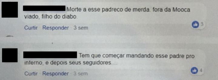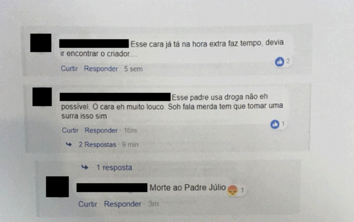 Abaixo, leia alguns dos ataques feitos ao padre: