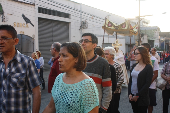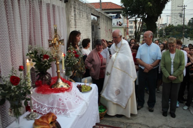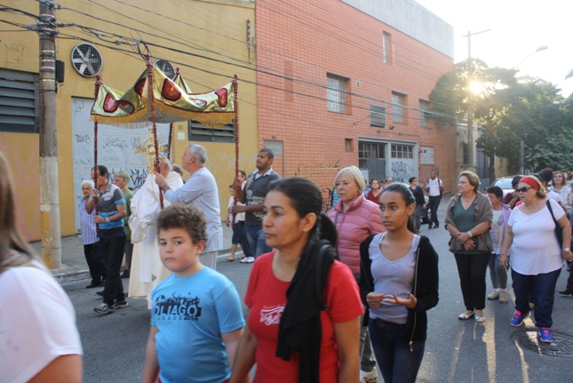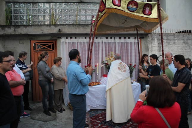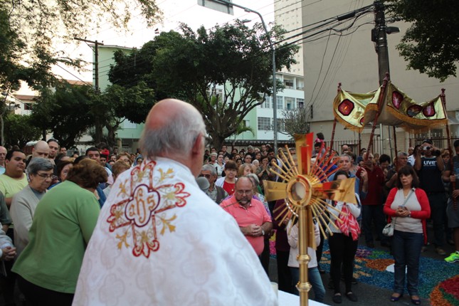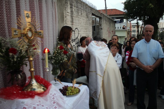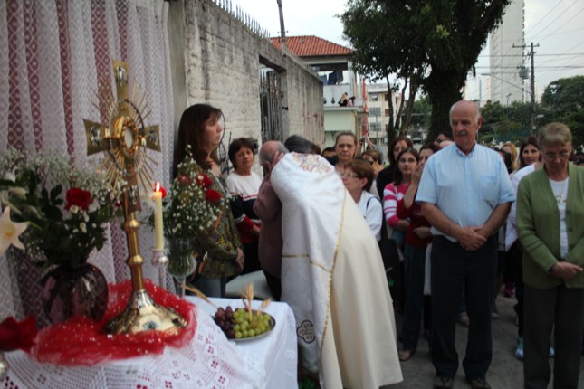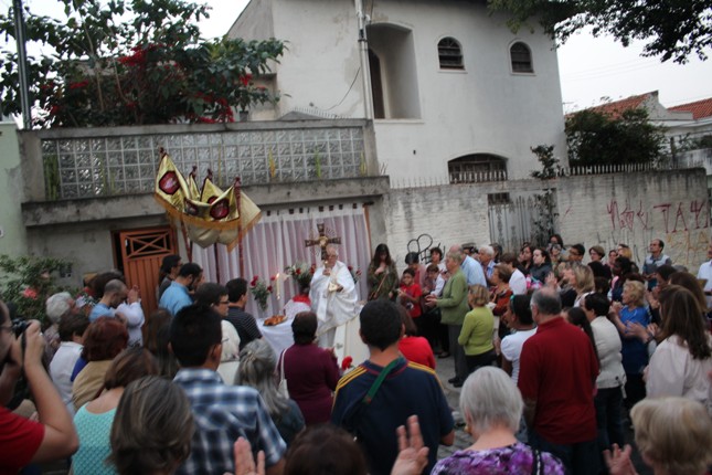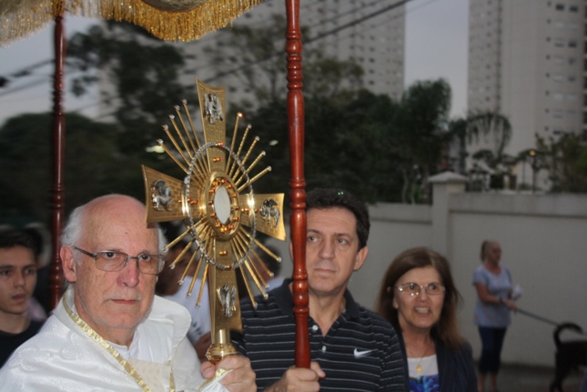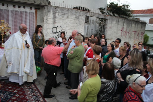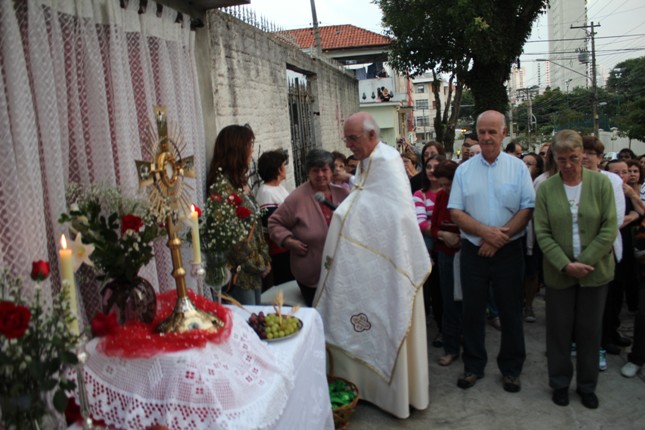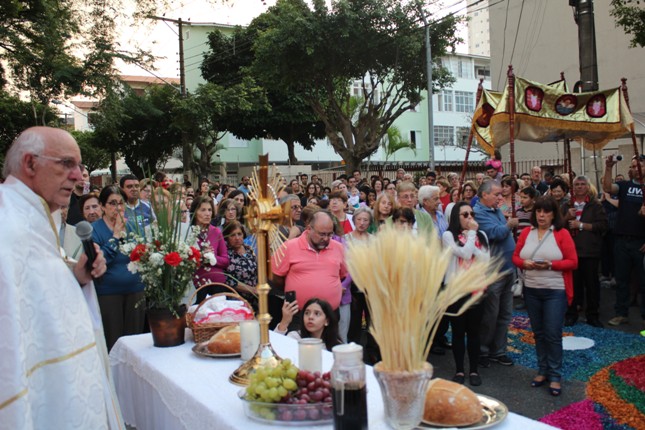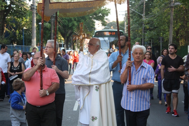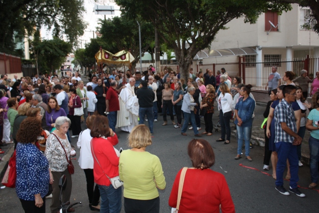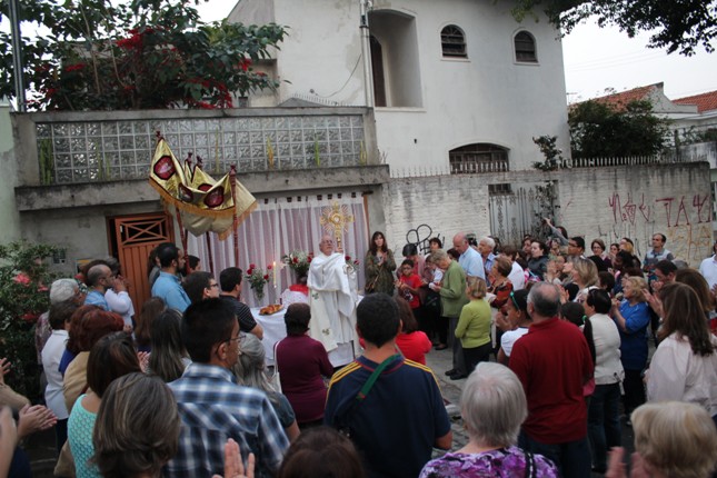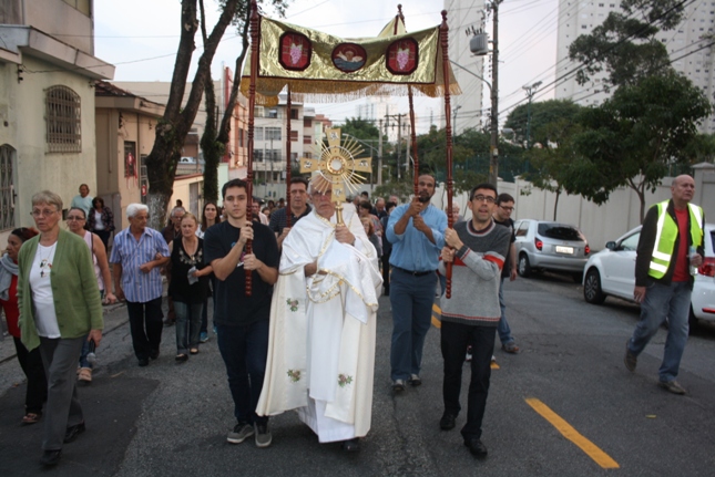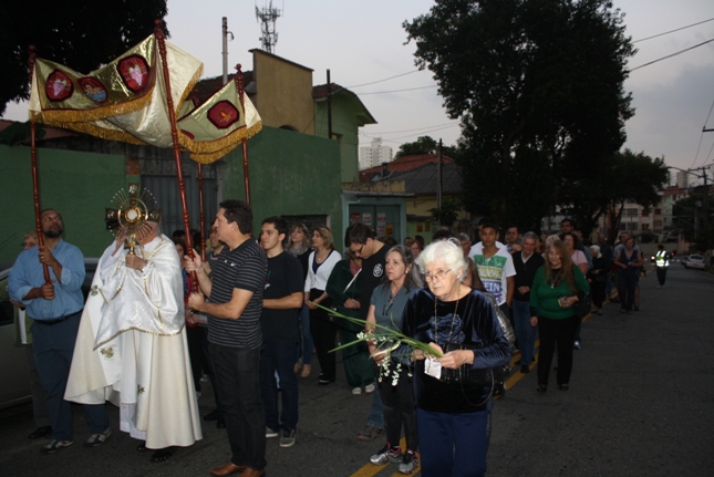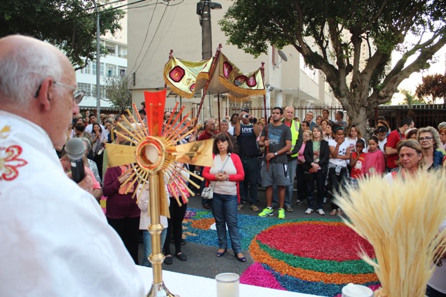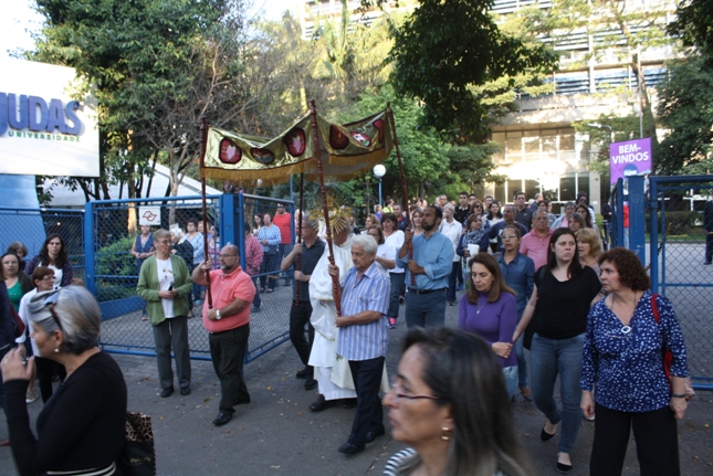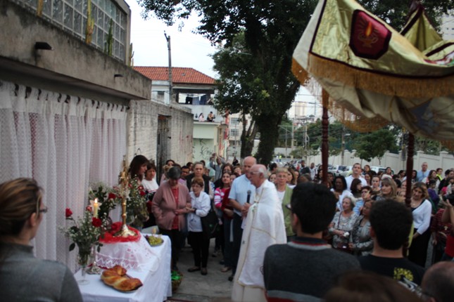 Na solenidade do Santíssimo Corpo e Sangue de Cristo, a Comunidade São Miguel Arcanjo se reuniu na Capela da Universidade São Judas Tadeu nesta quinta-feira 04/06/15 às 15hs, celebrou a santa Eucaristia e, com o Senhor Sacramentado percorreu em procissão as ruas do bairro. No caminho e sob o pálio, o carinho de todos, com orações e cânticos.