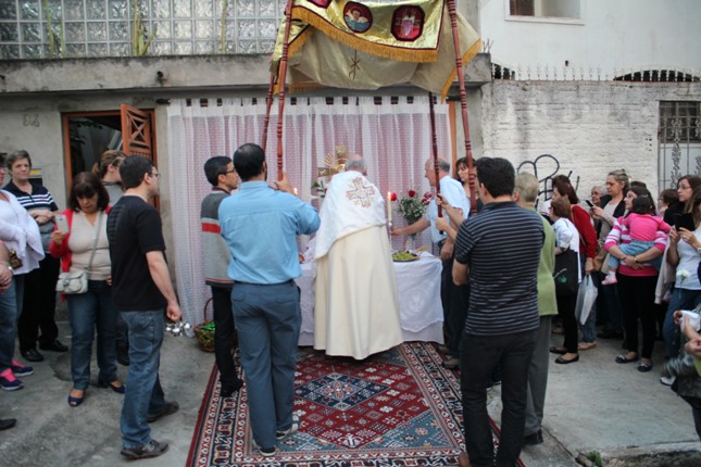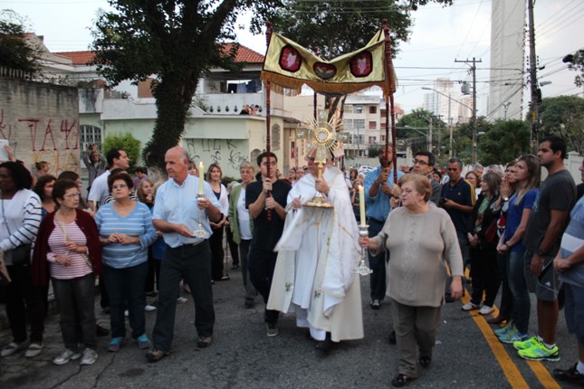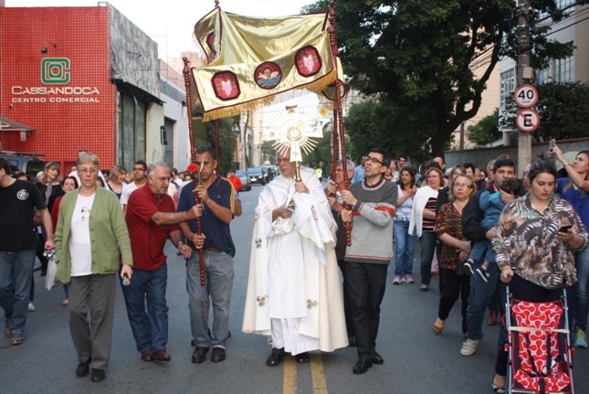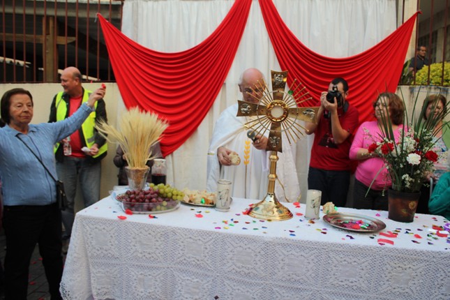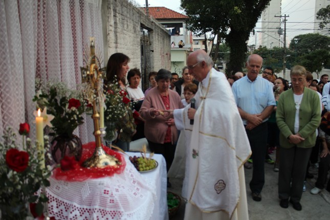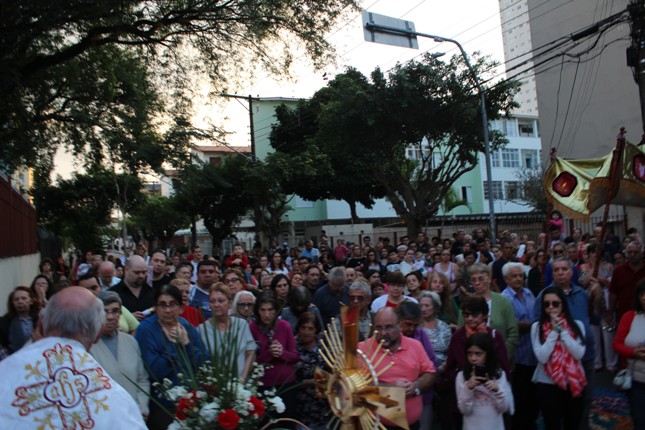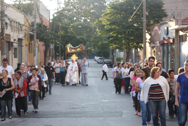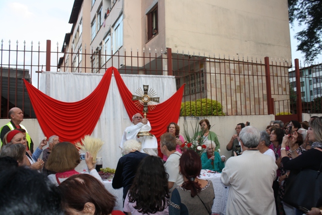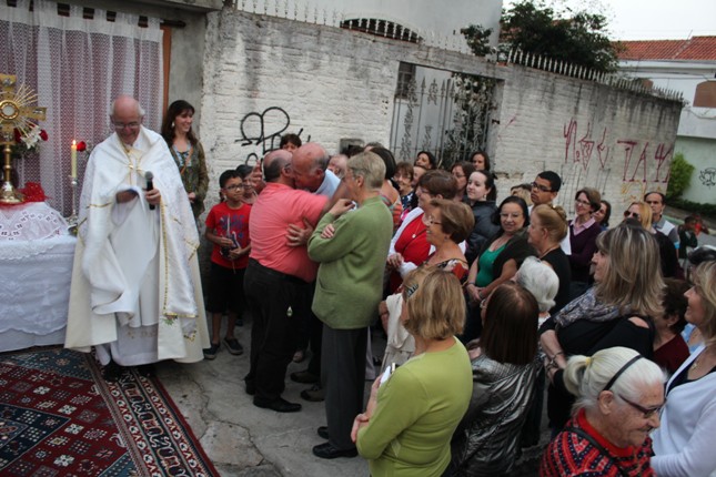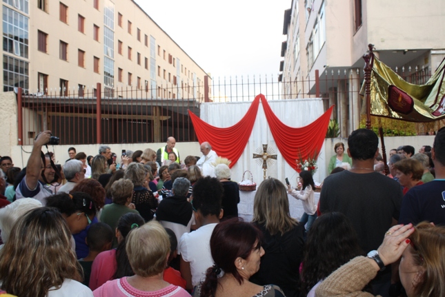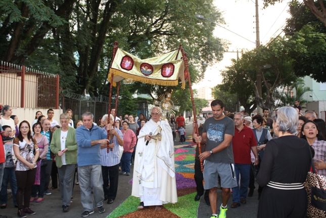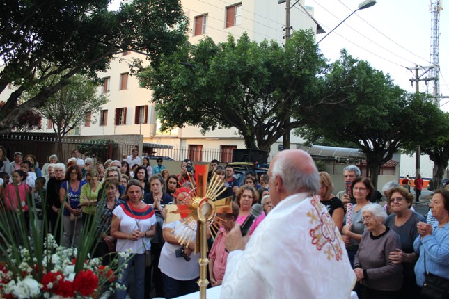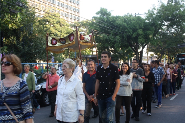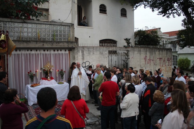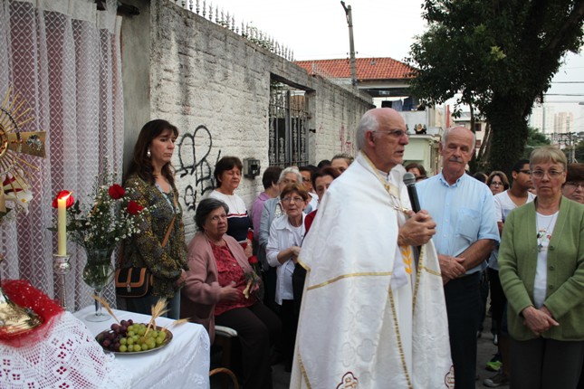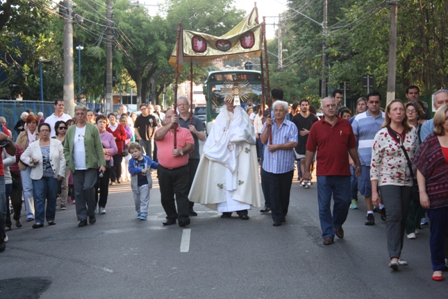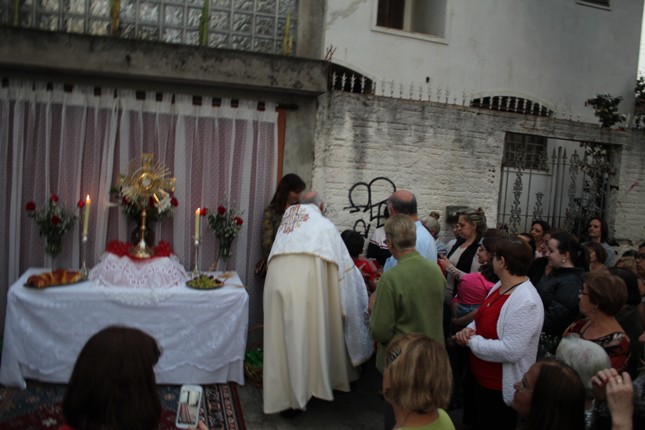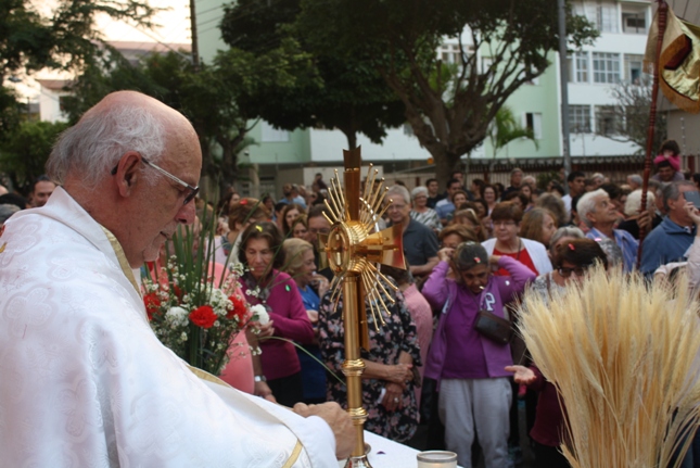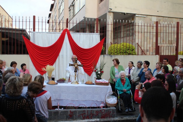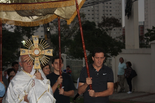 Na solenidade do Santíssimo Corpo e Sangue de Cristo, a Comunidade São Miguel Arcanjo se reuniu na Capela da Universidade São Judas Tadeu nesta quinta-feira 04/06/15 às 15hs, celebrou a santa Eucaristia e, com o Senhor Sacramentado percorreu em procissão as ruas do bairro. No caminho e sob o pálio, o carinho de todos, com orações e cânticos.