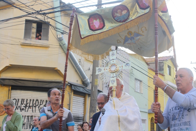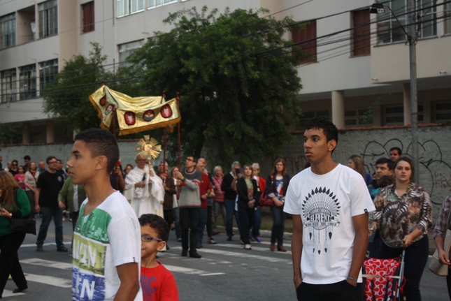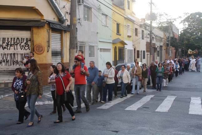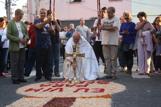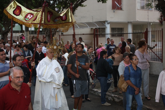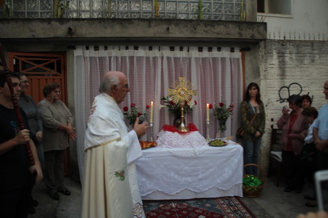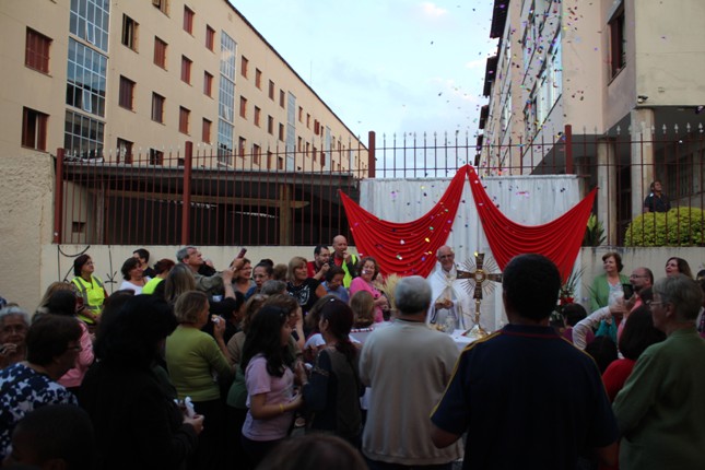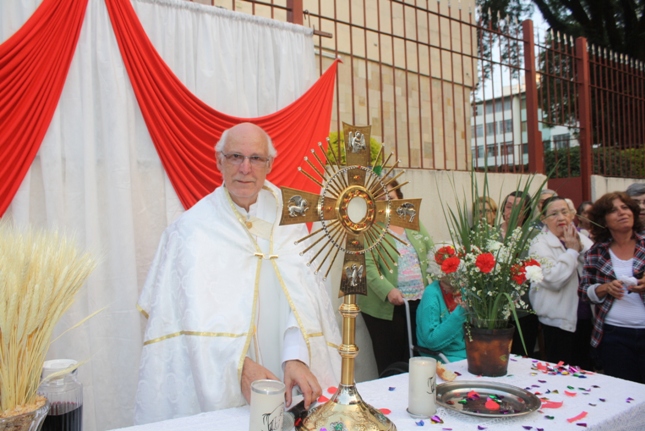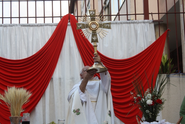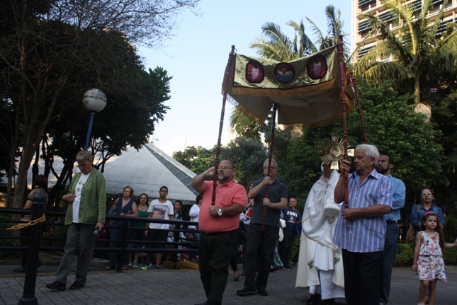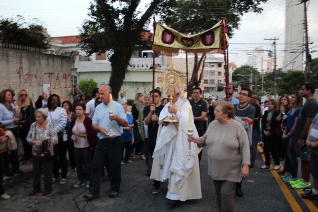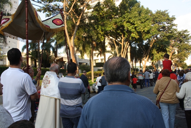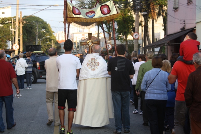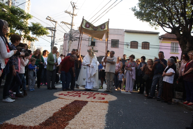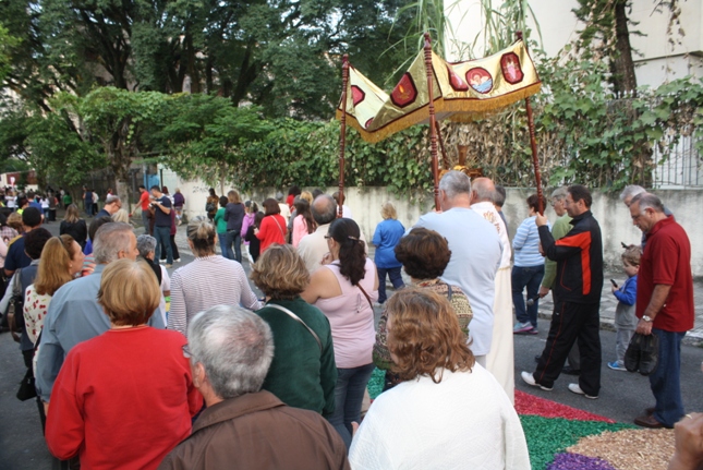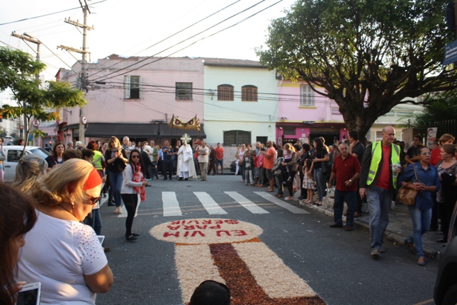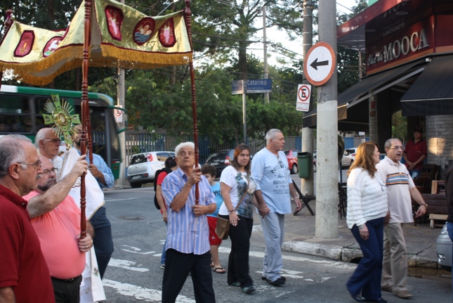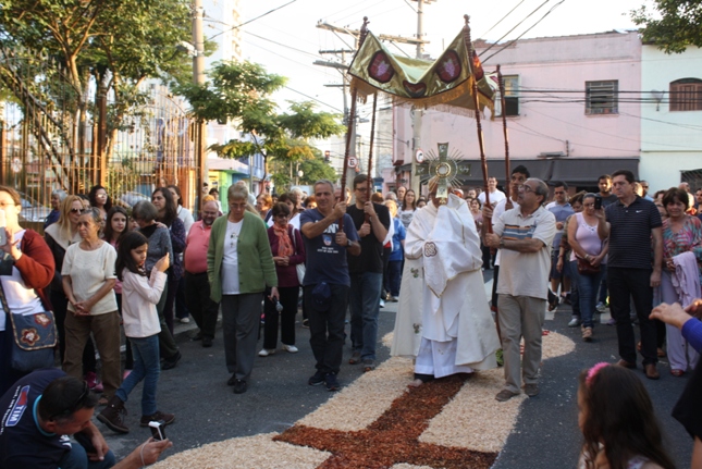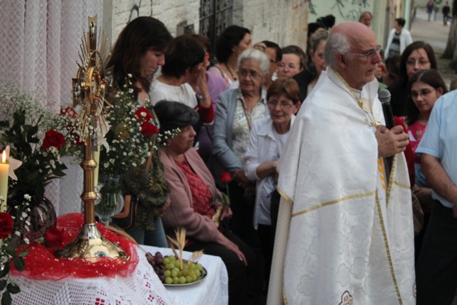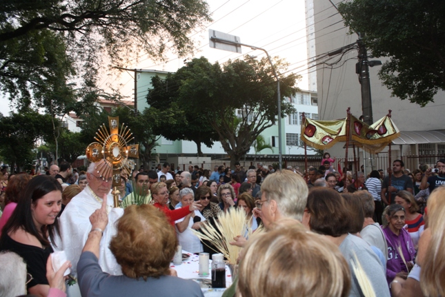 Na solenidade do Santíssimo Corpo e Sangue de Cristo, a Comunidade São Miguel Arcanjo se reuniu na Capela da Universidade São Judas Tadeu nesta quinta-feira 04/06/15 às 15hs, celebrou a santa Eucaristia e, com o Senhor Sacramentado percorreu em procissão as ruas do bairro. No caminho e sob o pálio, o carinho de todos, com orações e cânticos.