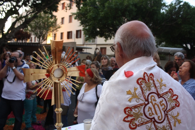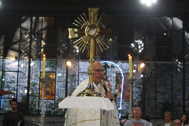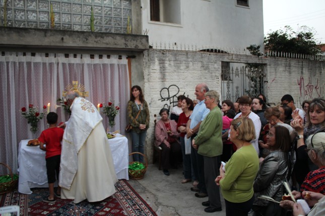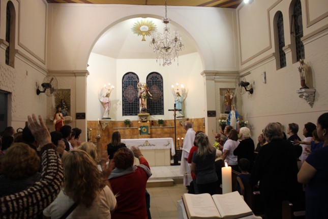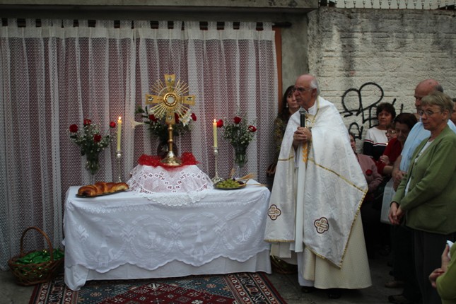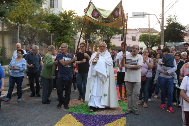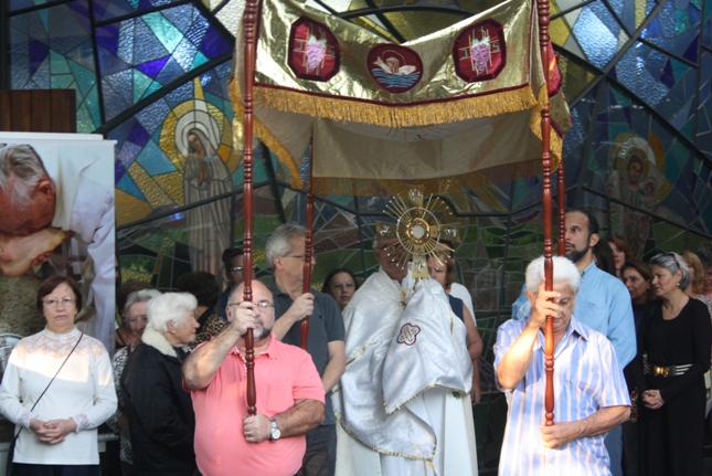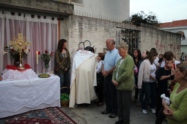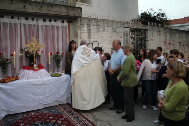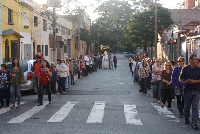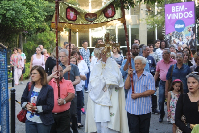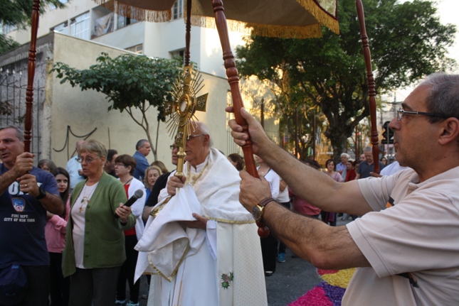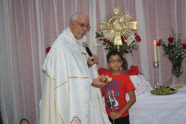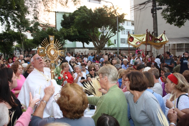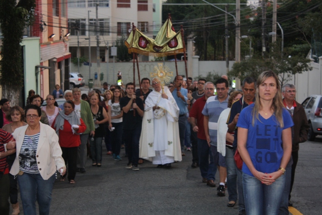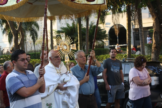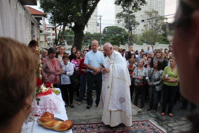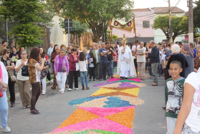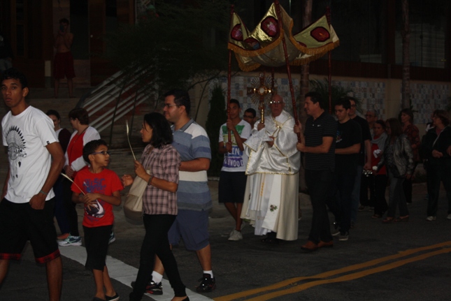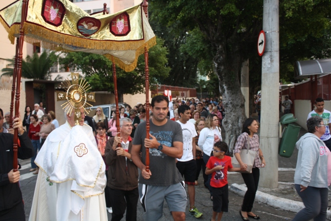 Na solenidade do Santíssimo Corpo e Sangue de Cristo, a Comunidade São Miguel Arcanjo se reuniu na Capela da Universidade São Judas Tadeu nesta quinta-feira 04/06/15 às 15hs, celebrou a santa Eucaristia e, com o Senhor Sacramentado percorreu em procissão as ruas do bairro. No caminho e sob o pálio, o carinho de todos, com orações e cânticos.