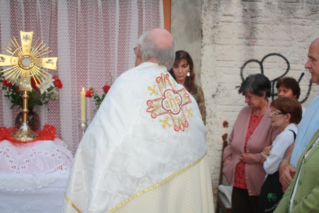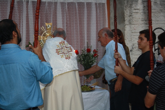 Continuando a caminhada, a procissão se dirigiu à frente da casa da família Fabretti, onde outro altar foi dedicado ao Senhor. A chegada do pálio com o Senhor foi ao som da música Prova de Amor maior não há, que doar a vida ao irmão”. Aí a lembrança da Fernanda, querida filha do José Fabretti e da Cidinha ora na eternidade, que possibilitou por doação dos órgãos, a vida para aproximadamente 10 pessoas.