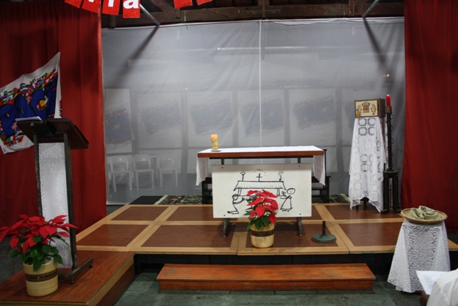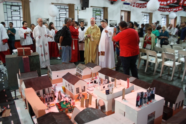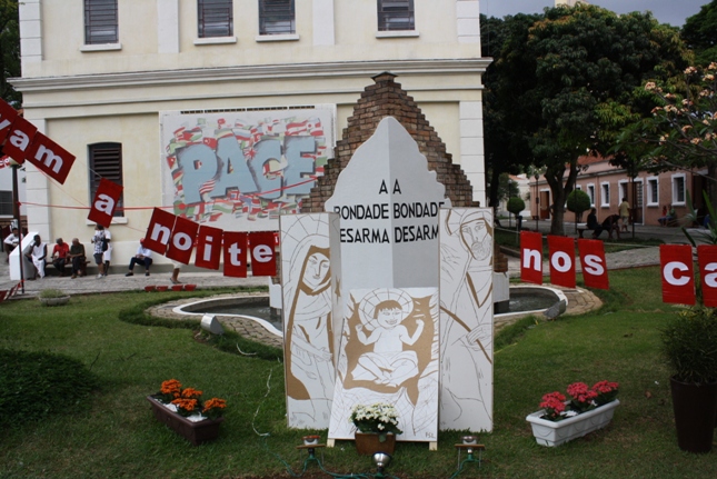 No final da tarde de Natal, a celebração eucarística no Arsenal da Esperança, presidida por Dom Odilo Pedro Scherer e concelebrada pelo Padre Júlio Lancellotti. Momento especial, já no lado de fora, com os cartazes do Natal, os semblantes esperançosos dos irmãos em situação de rua e a imprensa que veio cobrir esse momento. Dentro do espaço da celebração o presépio em forma de maquete  preparado e retratando o entorno do Arsenal.