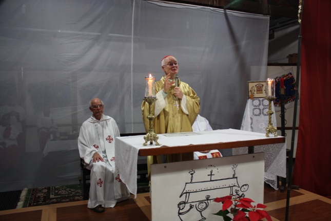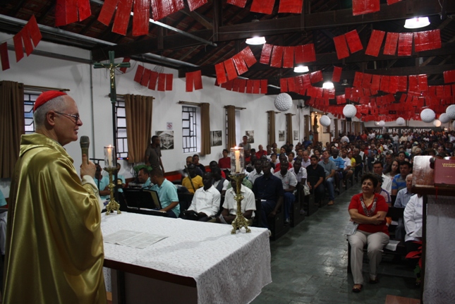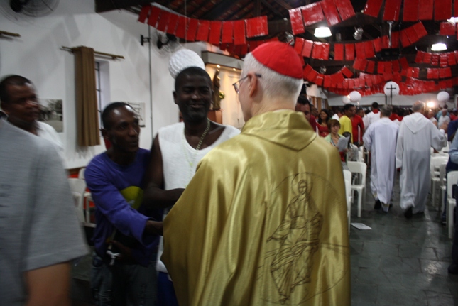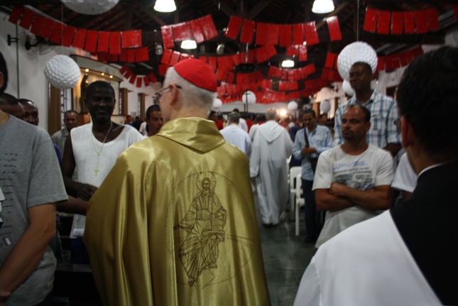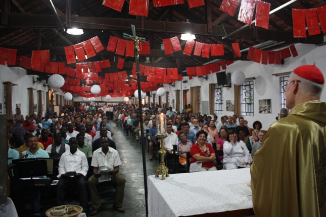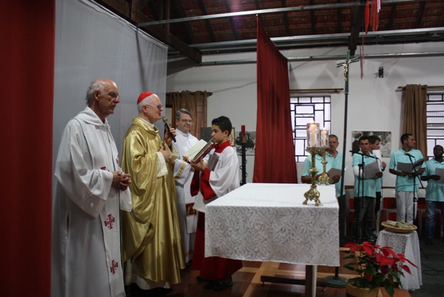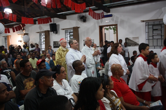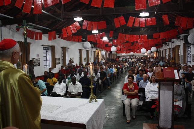A celebração toda especial, quer  pelo dia de natal, quer pela presença marcante do Cardeal Dom Odilo. Os cantos foram entoados pelos moradores em situação de rua e dentre eles, um grupo originário da Guiné Bissao. Agradecimento especial aos que ajudaram a preparação, que demandou muito esforço e dedicação, inclusive no presépio. Na homilia, toda a reflexão sobre o nascimento do salvador e sua presença entre os mais fracos, os mais necessitados e especialmente entre os moradores de rua.