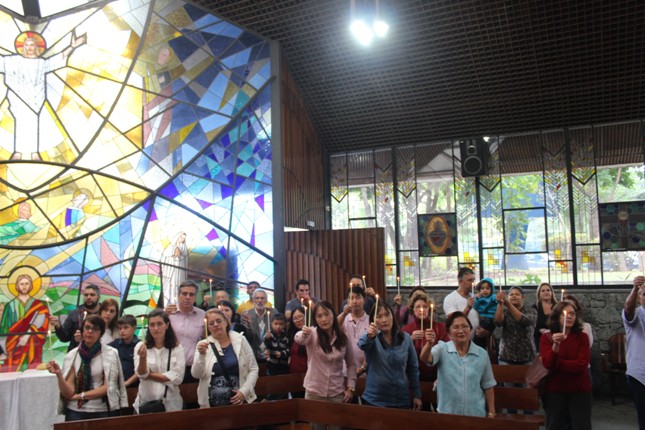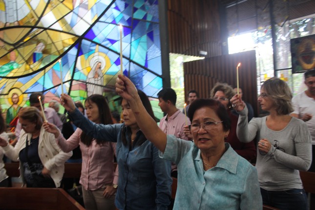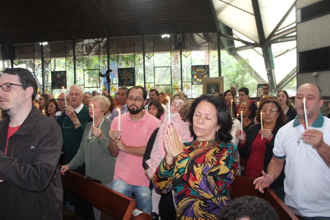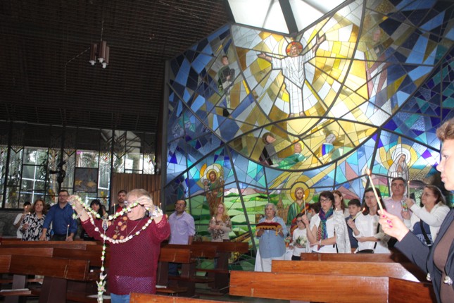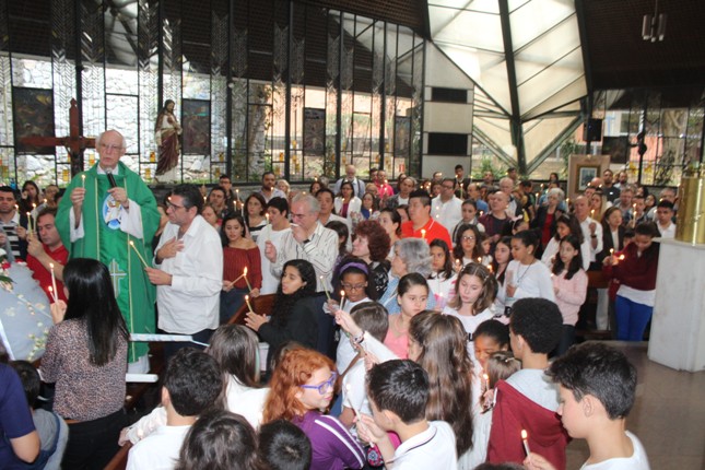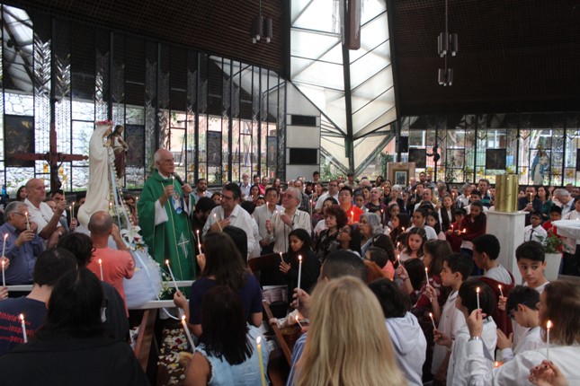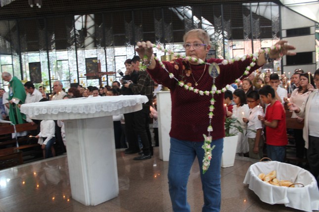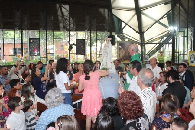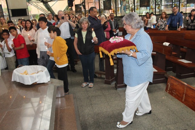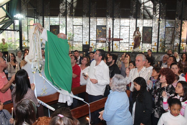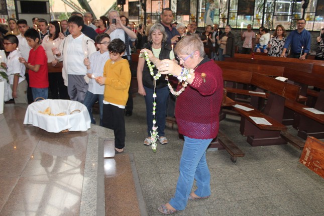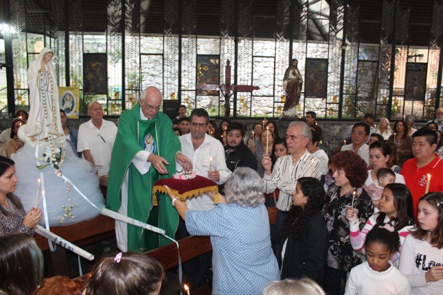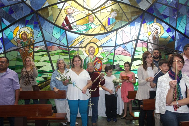 Muito aguardada, a sempre bonita coroação de Nossa Senhora, encerrando o mês de Maria, neste domingo 29/05/16 na missa das dez. Flores, o Terço, as pétalas de rosas e, a coroa para Nossa Senhora. Não faltaram as velas e muita oração. Neste ano a Silvia é que foi coroar Nossa Senhora.