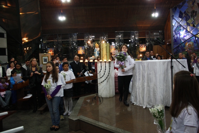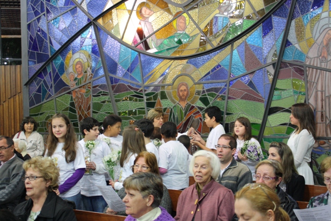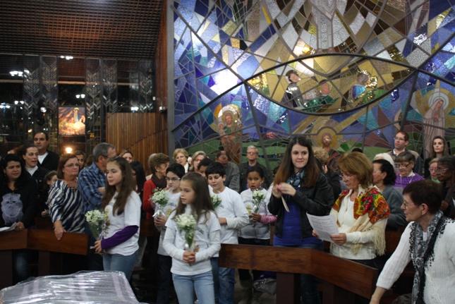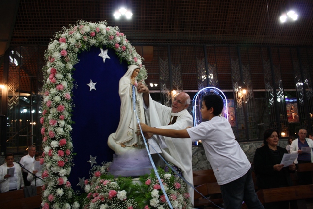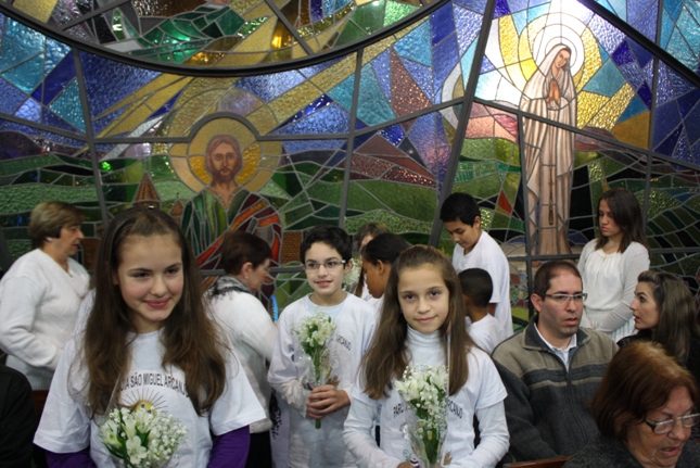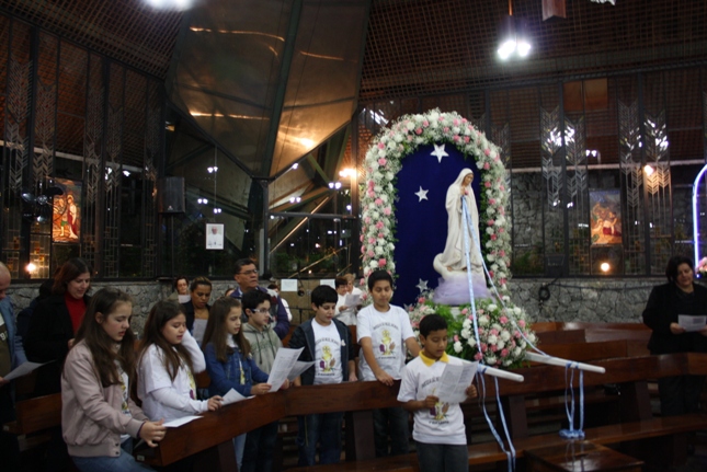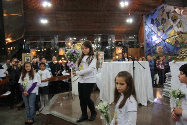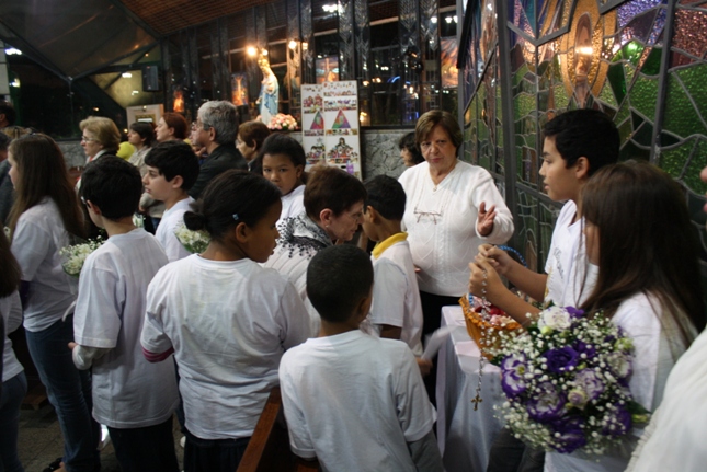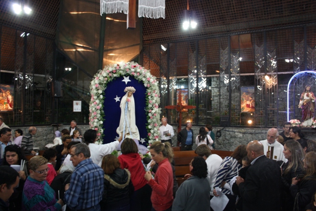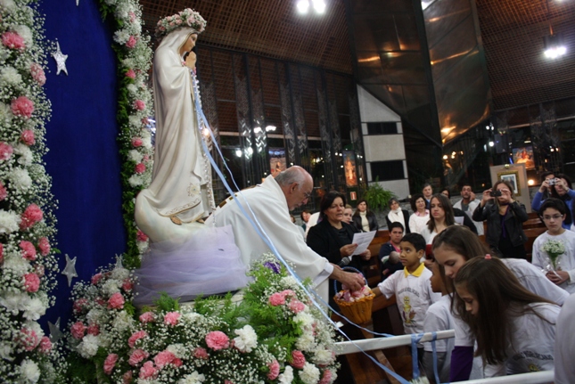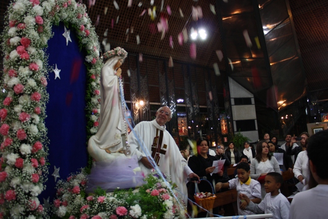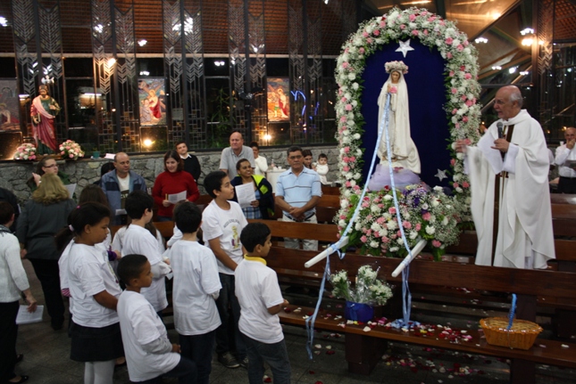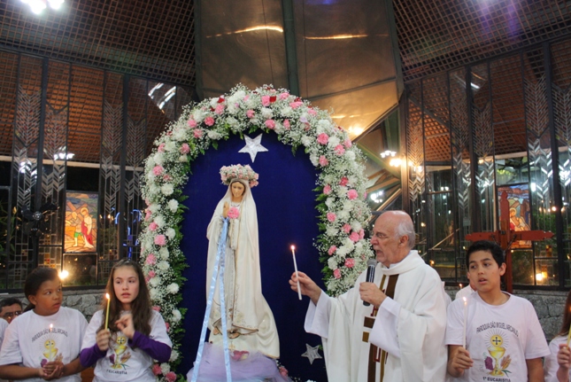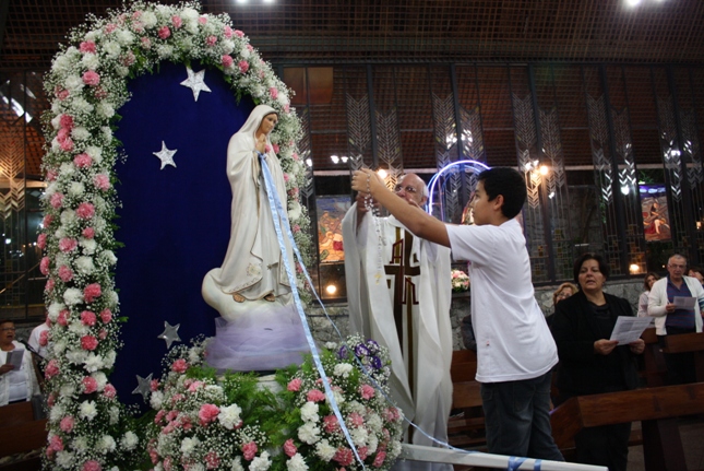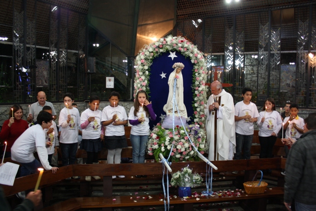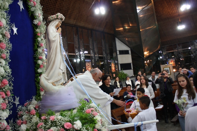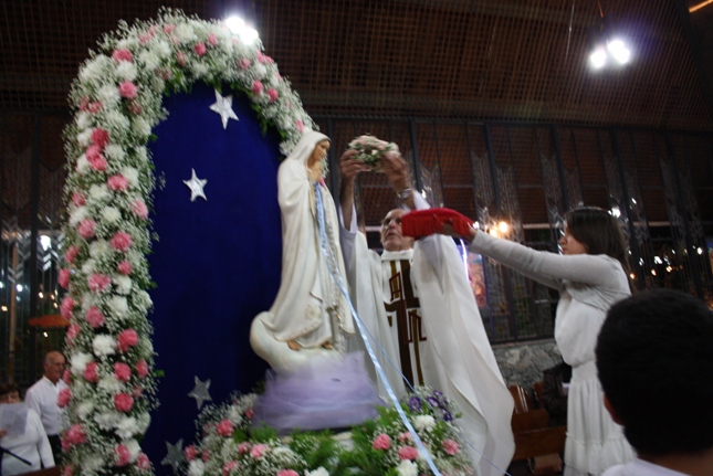 Como é tradicional, neste 31/05 a Comunidade São Miguel Arcanjo promoveu bonita celebração no encerramento do mês de Maria, com a coroação da imagem de Nossa Senhora de Fátima. O dia da visitação. Destacou-se desse momento celebrativo, o carinho a Nossa Senhora, com as flores, inclusive na coroa, mas também na participação das crianças e adolescentes e, especialmente, a solicitude da comunidade na doação de cobertores, agasalhos e meias, à mãe de Jesus, que serão repassados a seus outros filhos, os moradores em situação de rua.