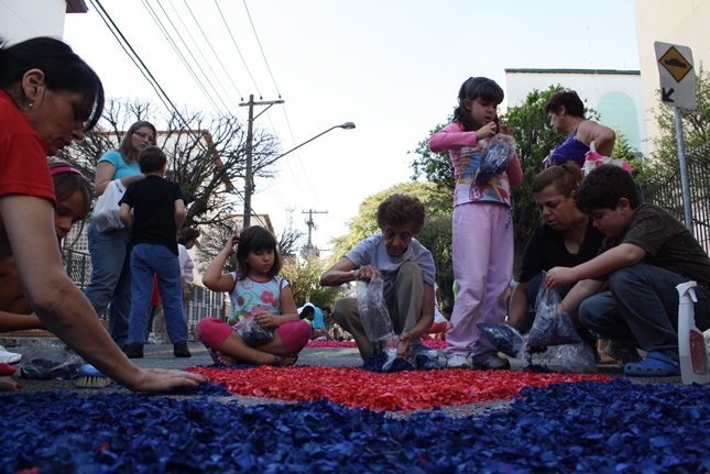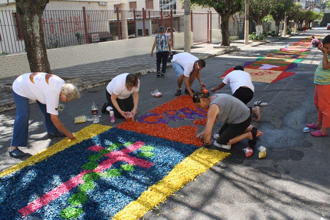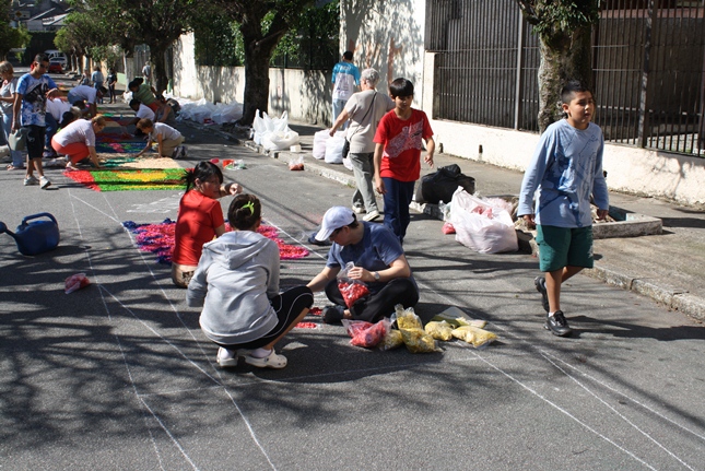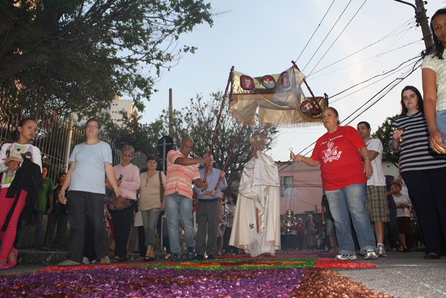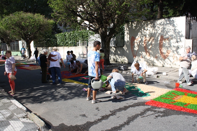 Corpus Christi foi celebrado pela comunidade, com missa na capela da Universidade São Judas Tadeu, seguida de procissão pelas ruas do bairro, passando pelo bonito tapete no Conjunto Residencial IAPI.
