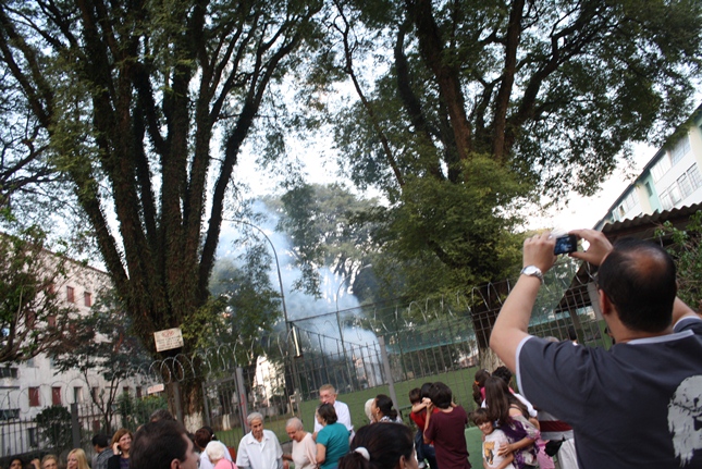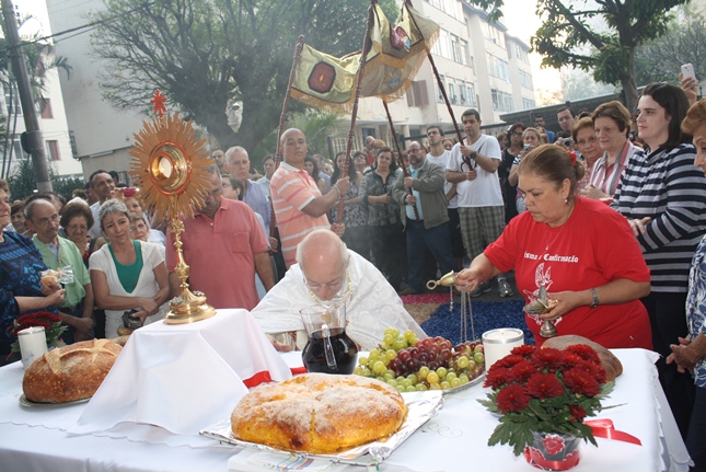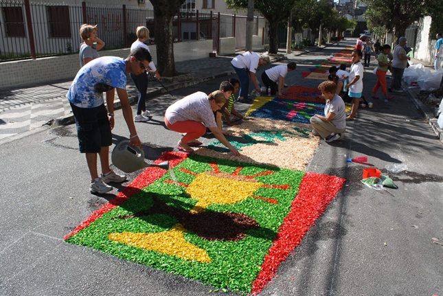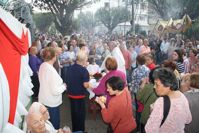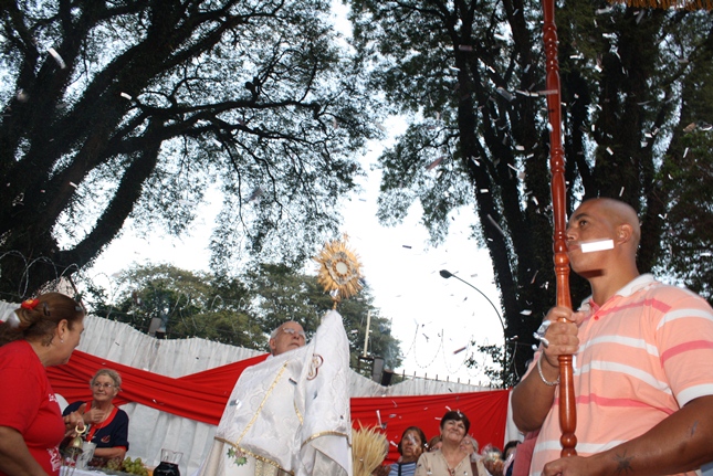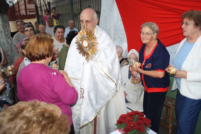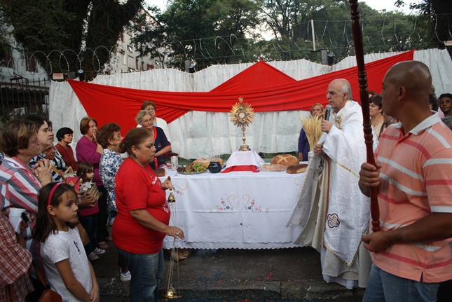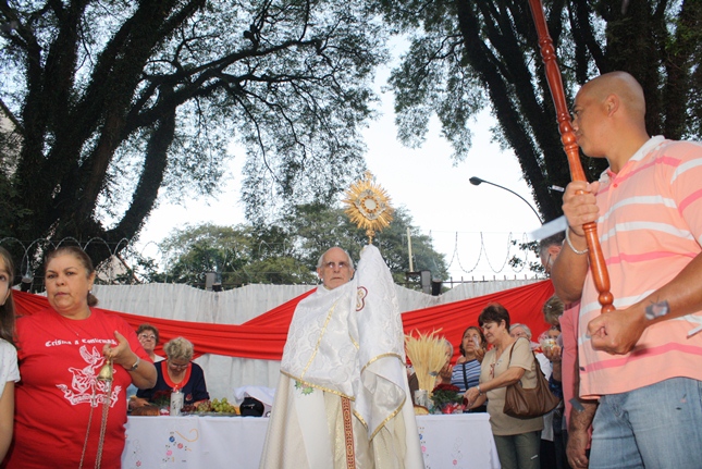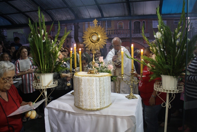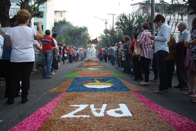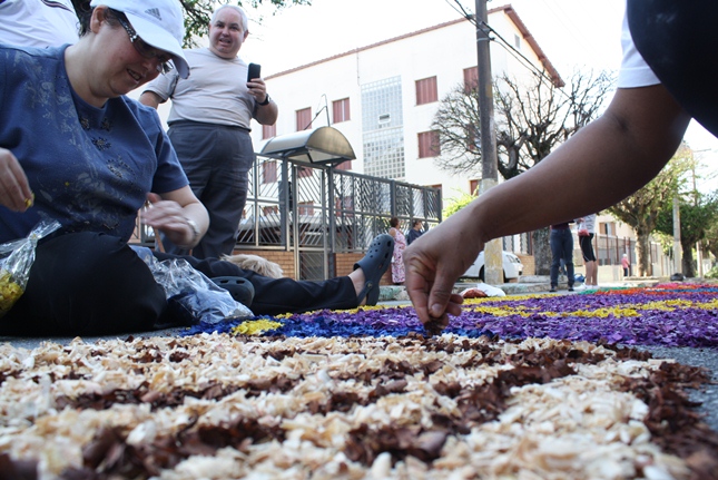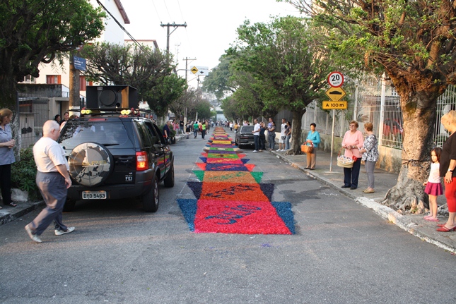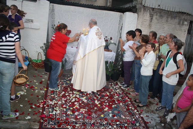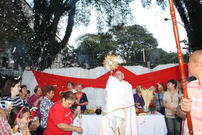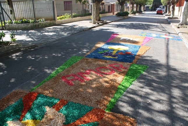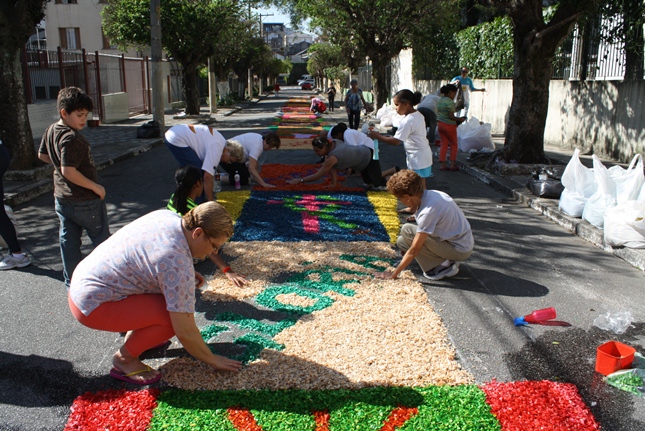 O tapete decorado com os temas de Corpus Christi, na Rua Jerônimo de Mendonça – IAPI, começou a ser montado pela manhã. Muitos voluntários participaram, incluindo as crianças. A comunidade sensibilizada pelo episódio do incêndio que ocorreu na casa do Pe Júlio, destinou a ele os quatro primeiros tapetes, escrevendo: Pe Júlio, força, coragem, conte conosco. A procissão chegou com músicas e o Santíssimo sendo carregado pelo Pe Júlio, que caminhou sobre o tapete, com a humildade de sempre, descalço. Muitos fogos, orações, pedidos, partilha do pão, carinho. Fez-se um belíssimo momento de oração. Na sequência a procissão parou novamente na frente da casa da família Fabretti, que igualmente preparou um bonito altar e mais fogos e muita oração.
