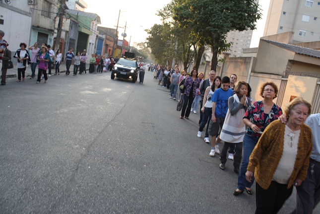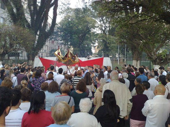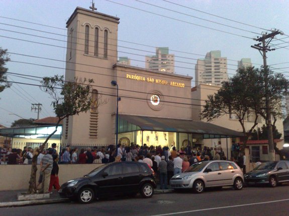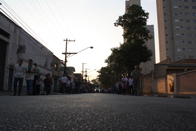 A chegada aconteceu na Igreja São Miguel Arcanjo no início da noite. Uma caminhada de fé.