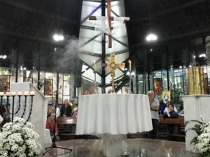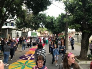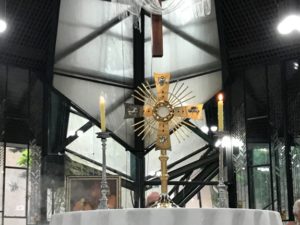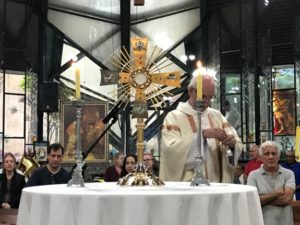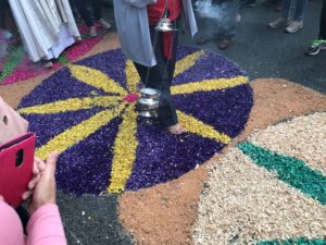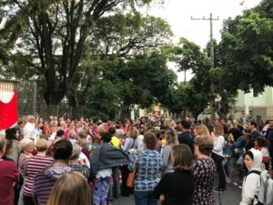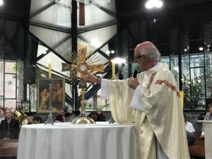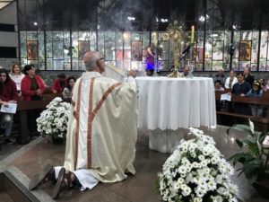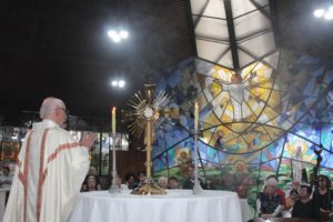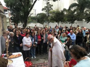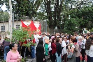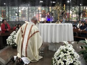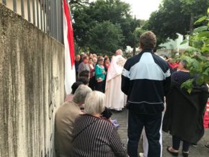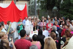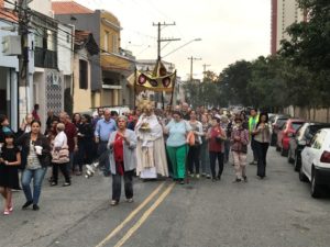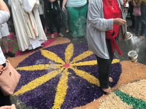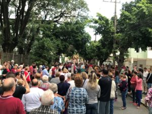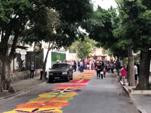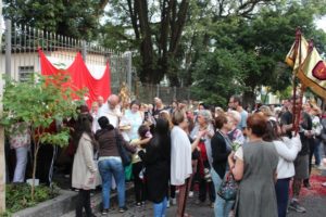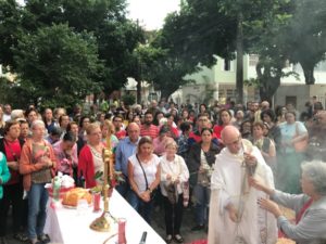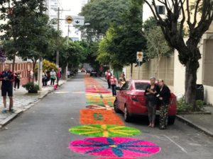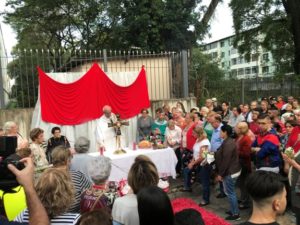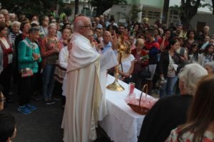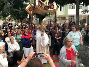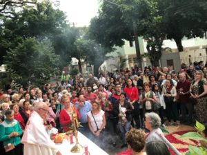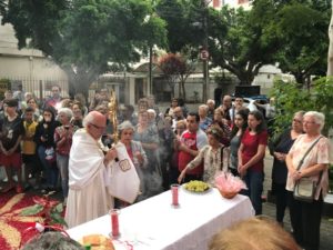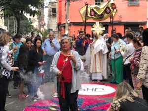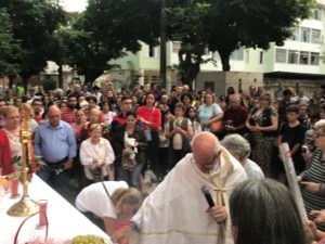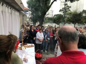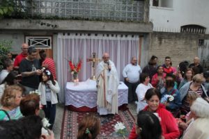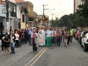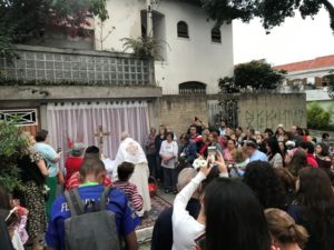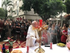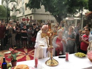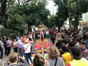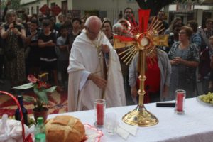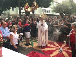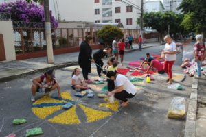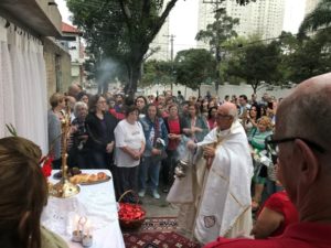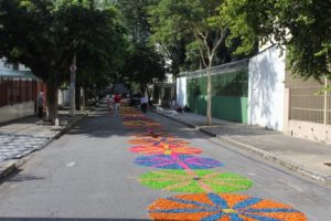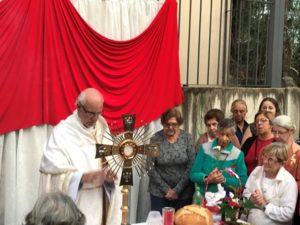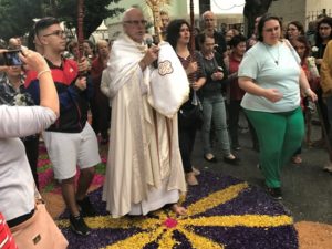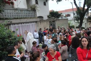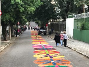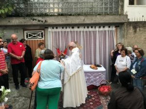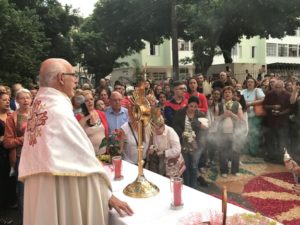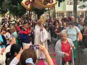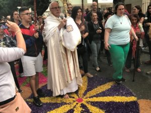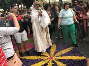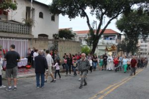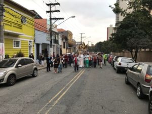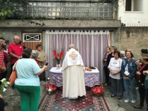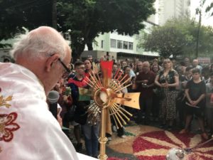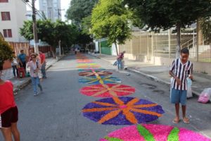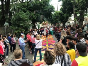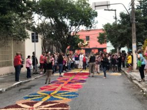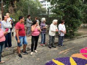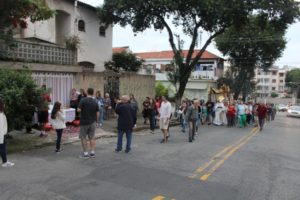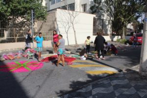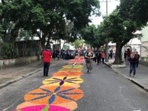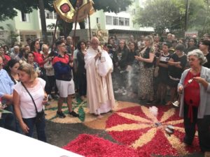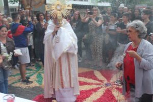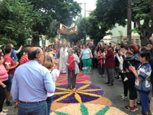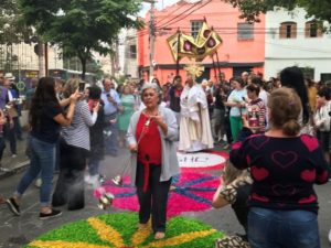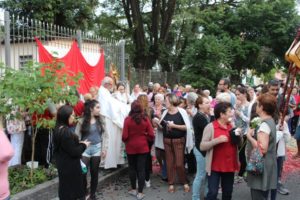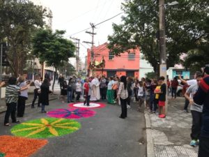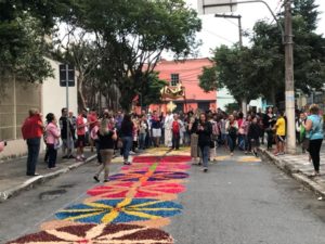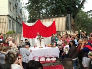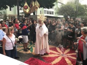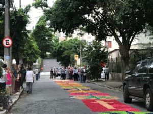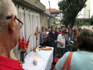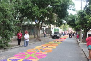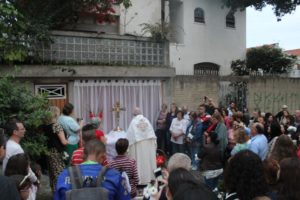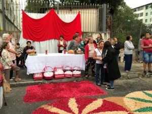 Mesmo numa cidade dificil e complicada, a Comunidade São Miguel Arcanjo estendeu o tapete para a passagem do Santissimo Sacramento.