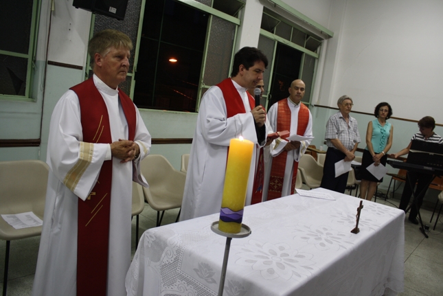 Uma celebração abriu o evento com a participação dos padres Marcelo, Aldo, Eduardo e Lauricio.