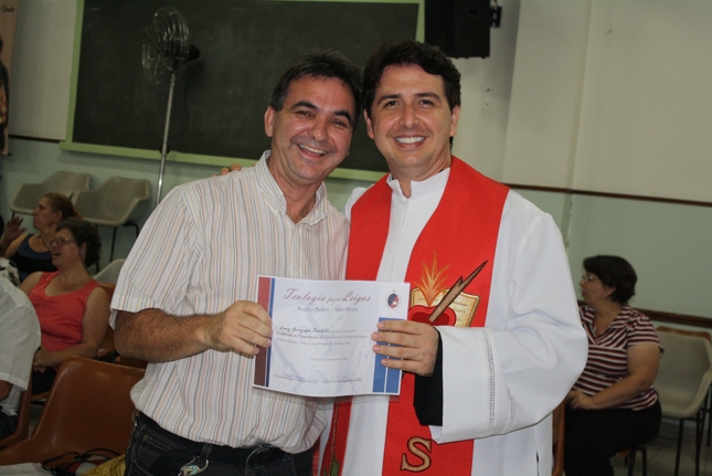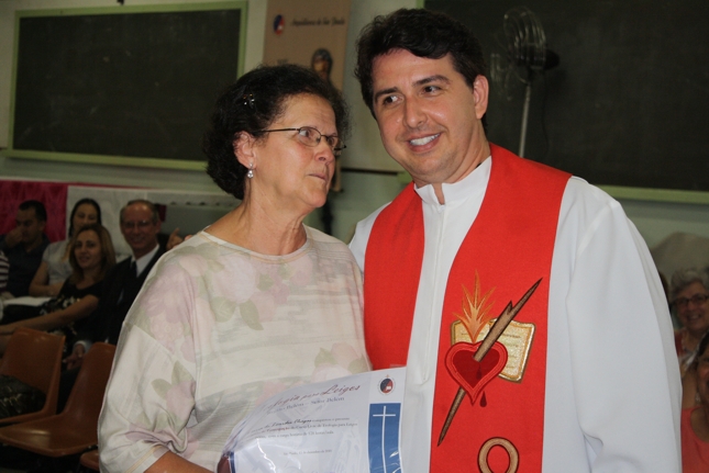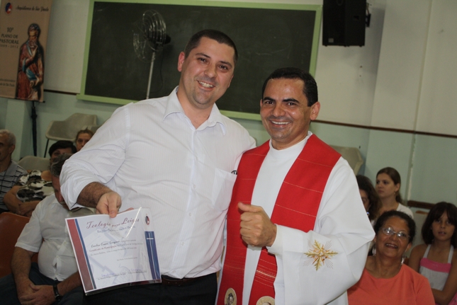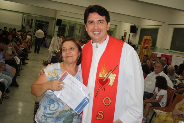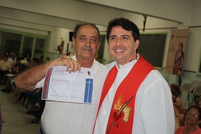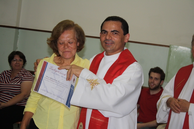 Padre Marcelo Matias, Coordenador do Curso, como mestre de cerimônia bem humorado recebeu os formandos para a entrega dos certificados. Os formandos emocionados relataram experiências e vivências renovadas na fé.