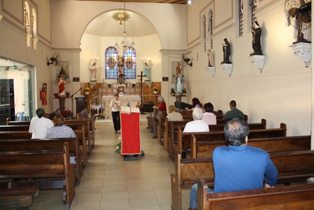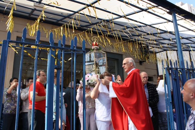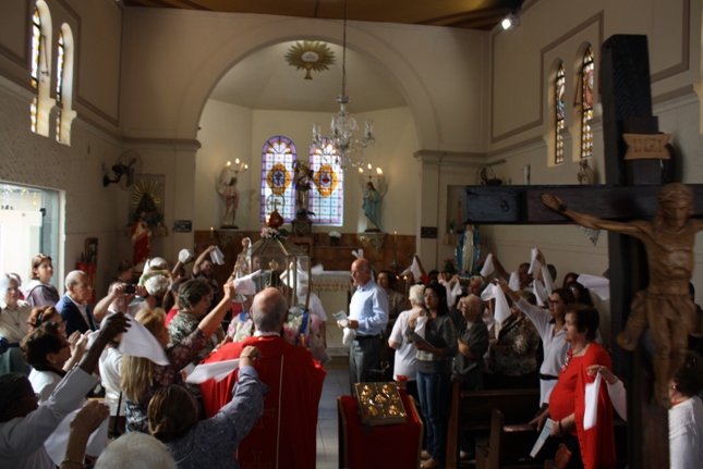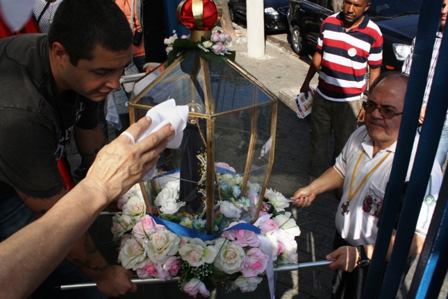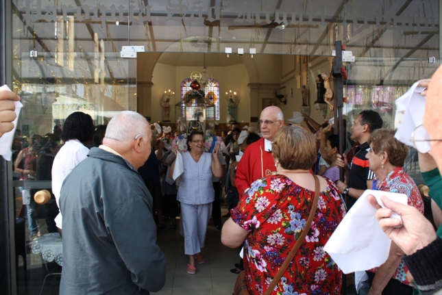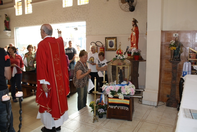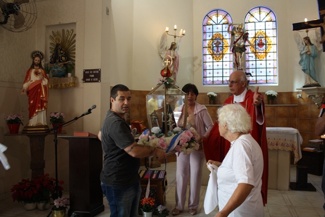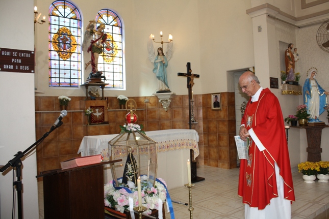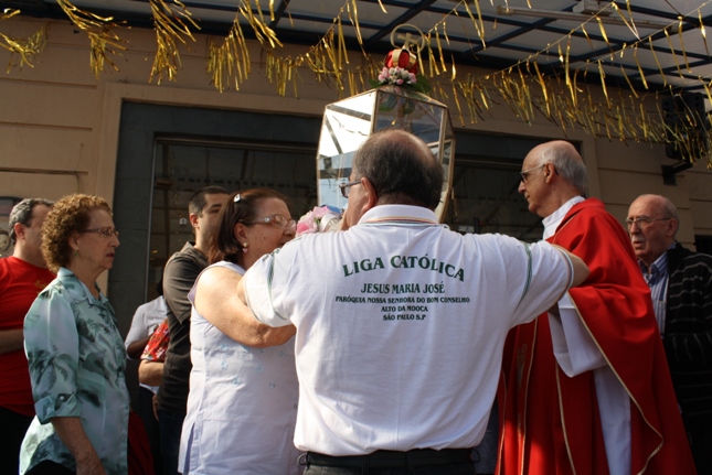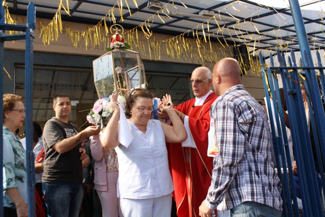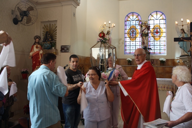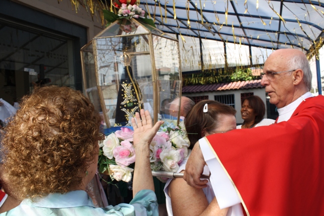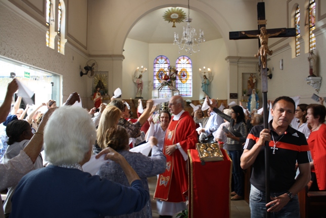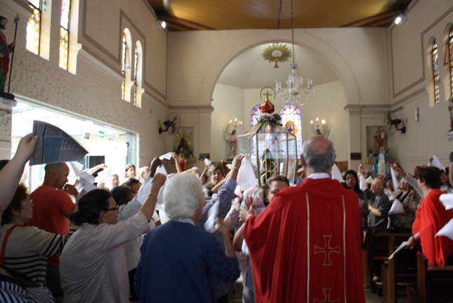 Na manhã deste domingo, 14/09/14 na Igreja São Miguel Arcanjo, após a celebração eucarística das 7h30, com lenços brancos a Comunidade se despediu da imagem peregrina de Nossa Senhora Aparecida, levada para a Paróquia São José do Belém. Alegria, orações, agradecimentos, muita emoção. O Terço às 15hs prosseguirá.