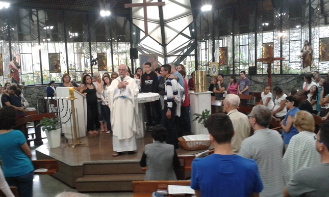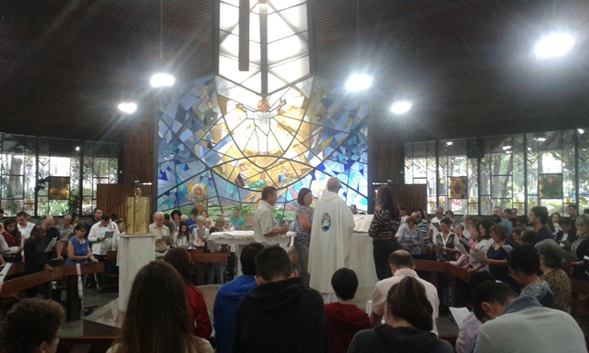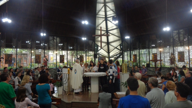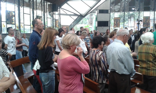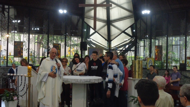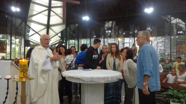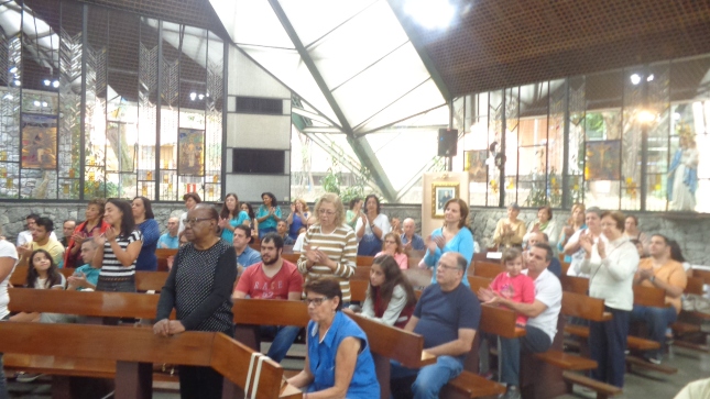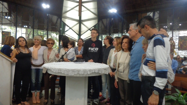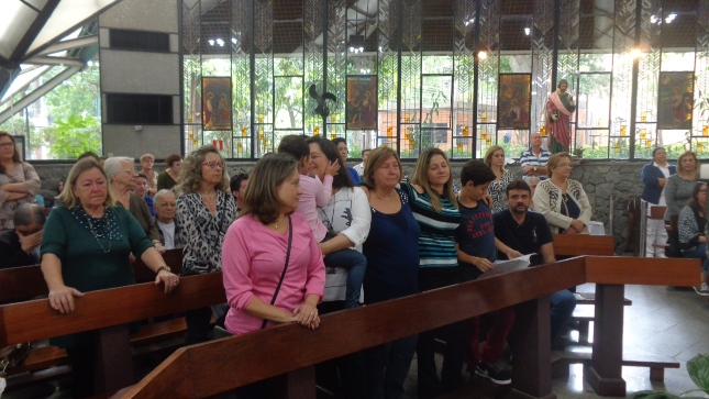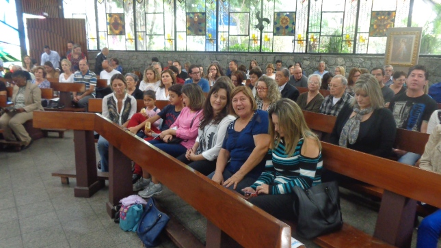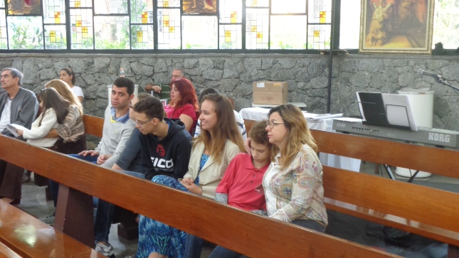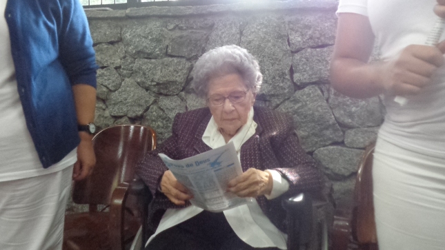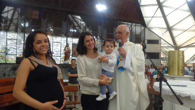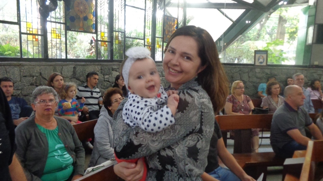 No dia em que celebramos a ascensão do Senhor e também o dia mundial das comunicações, após a celebração eucarística na capela universitária São Judas Tadeu, o carinho às mães da Comunidade São Miguel Arcanjo, na missa das dez deste 08/05/16. Não foram esquecidas as mães que estão na eternidade. Mãe que está esperando seu bebê, mães que cantam, que rezam, mães de adolescentes, de crianças pequenas, de jovens, de mais maduros, gerações de mães, que são também avós, bisavós e tataravós, todas mães. Professora Alzira está próxima de seus 101 anos.