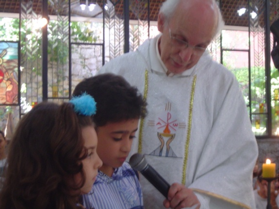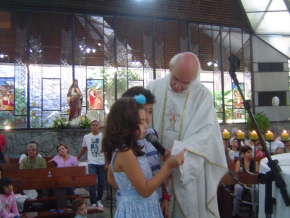 As mães merecem todas as homenagens. Muitas estão presentes, outras distantes, outras com o Pai. As crianças da catequese, representadas pela Laís e Ailton, fizeram uma homenagem às mães, declamando: