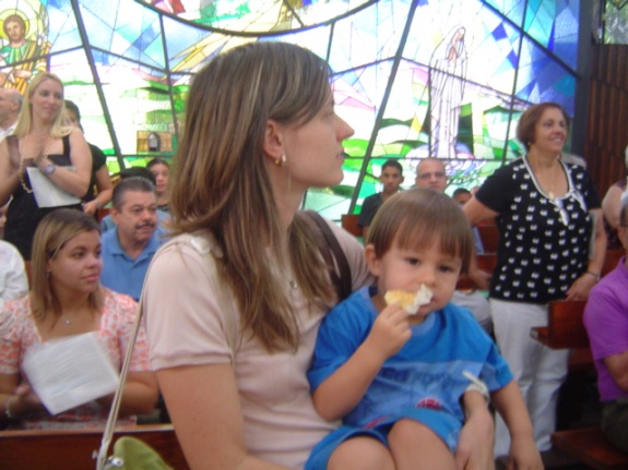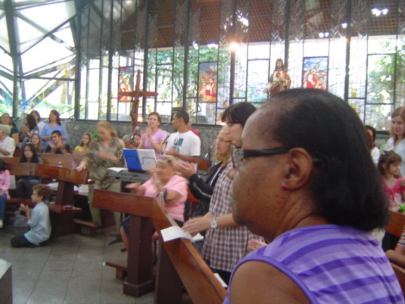 No final da missa das 18h, lembrando Maria, os presentes cantaram “Com minha mãe estarei” e Lilian Sgarioni Roberto leu uma mensagem: