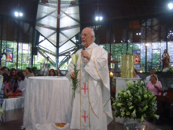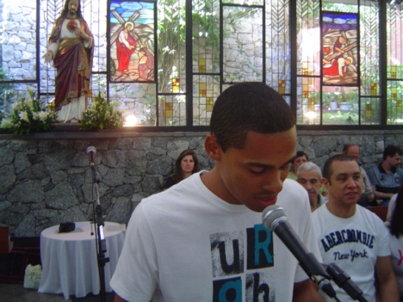 O Carlinhos cantou para as mães e o Padre Julio as homenageou, com a entrega de uma flor e um forte abraço a uma das mães presentes.