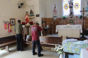 As flores que ornamentavam o altar na Capela São Judas Tadeu foram distribuídas pelo Pe Julio para que as pessoas pudessem entregá-las a uma pessoa pobre como gesto de carinho.