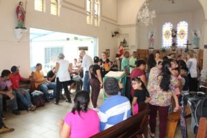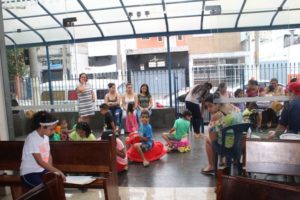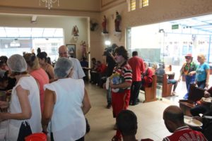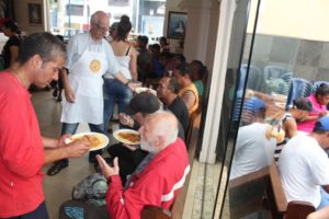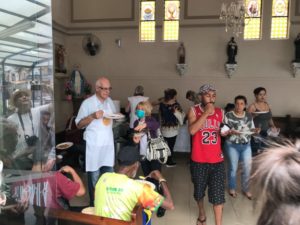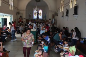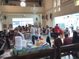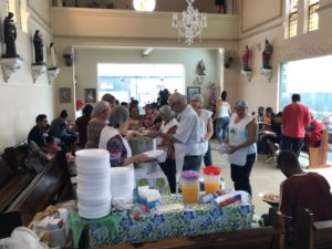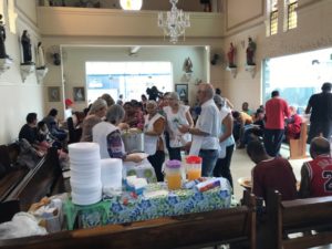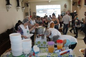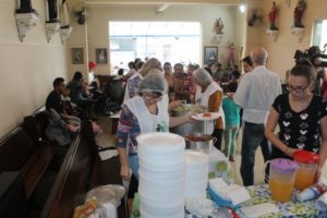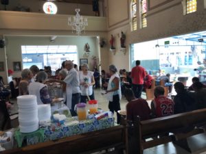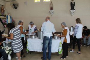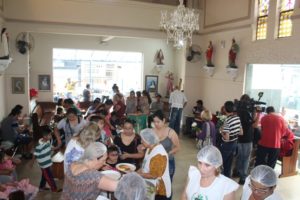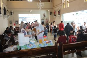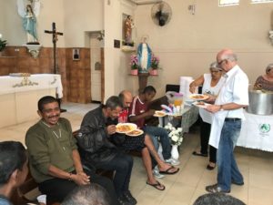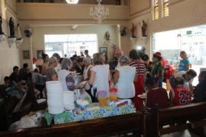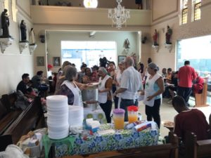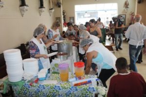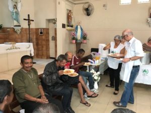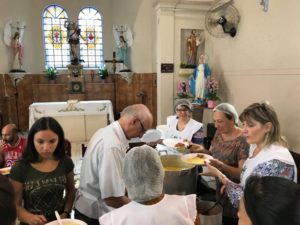 A partilha na Igreja São Miguel no domingo, 19/11, Dia Mundial dos Pobres, ao meio-dia foi de um almoço aos sofredores de rua e as crianças e suas famílias assistidas pela Pastoral da Criança.