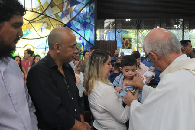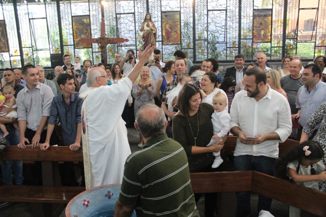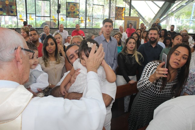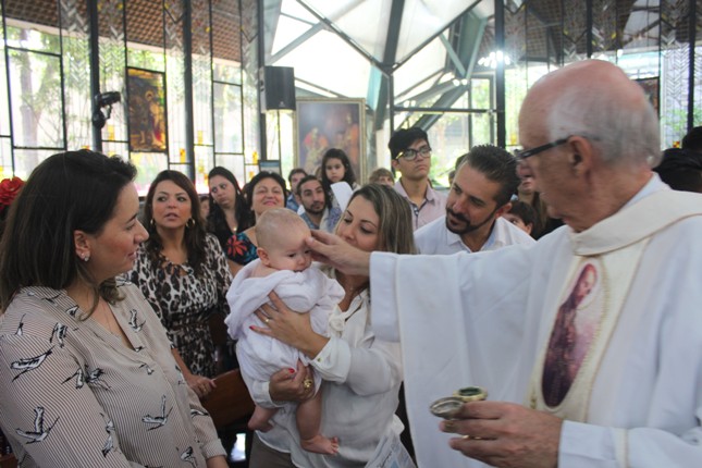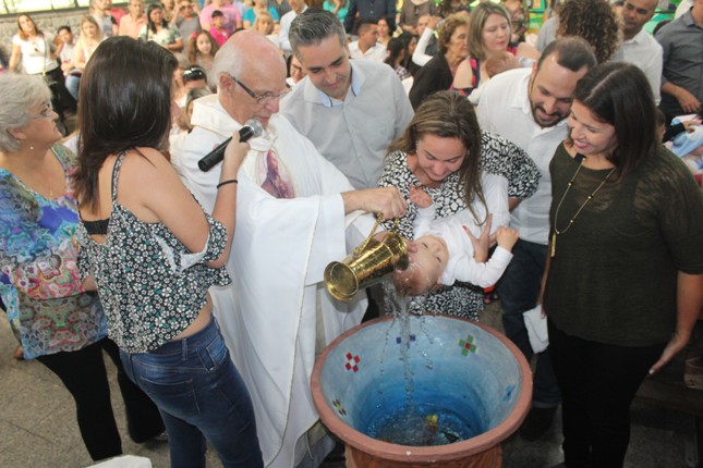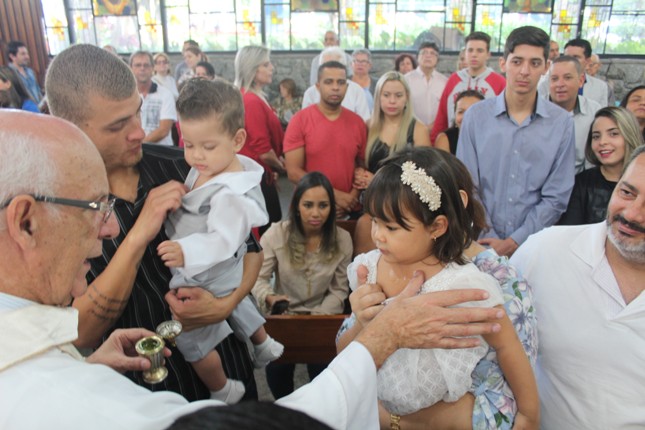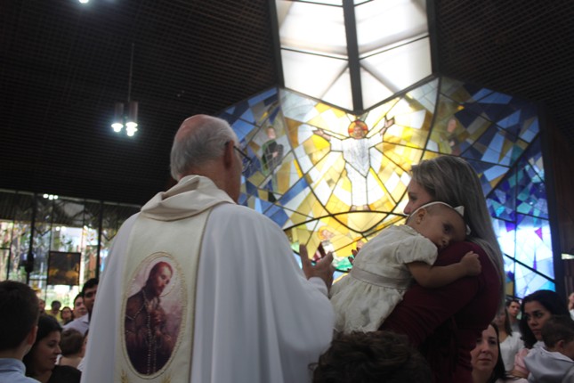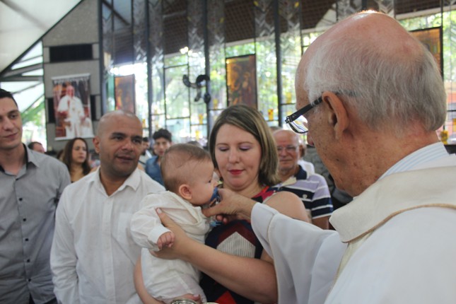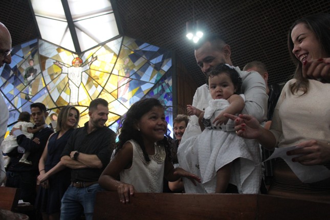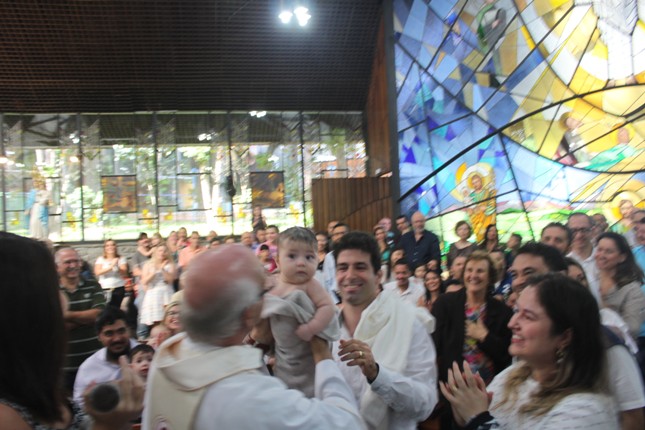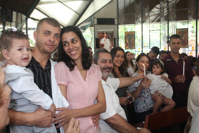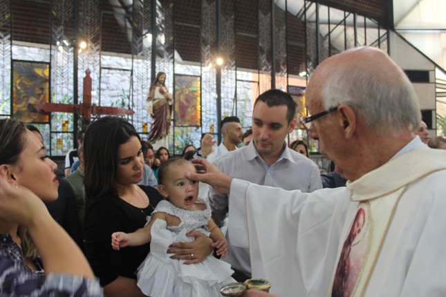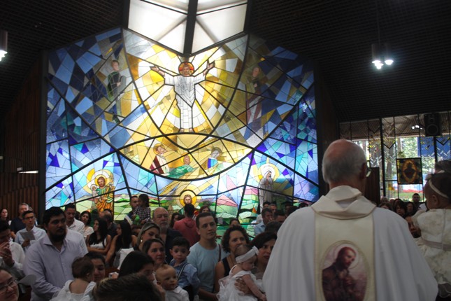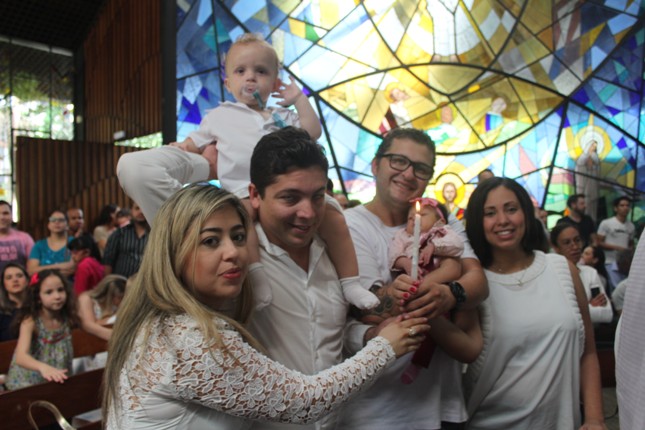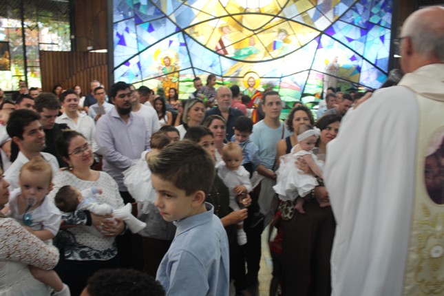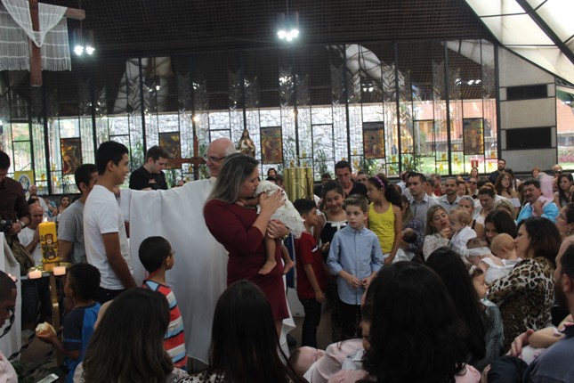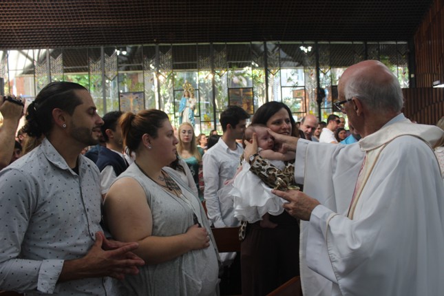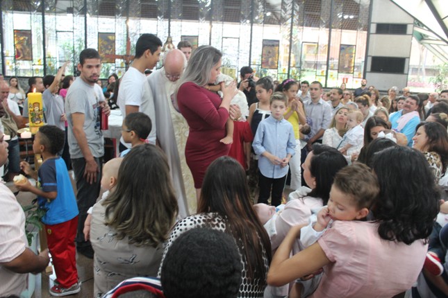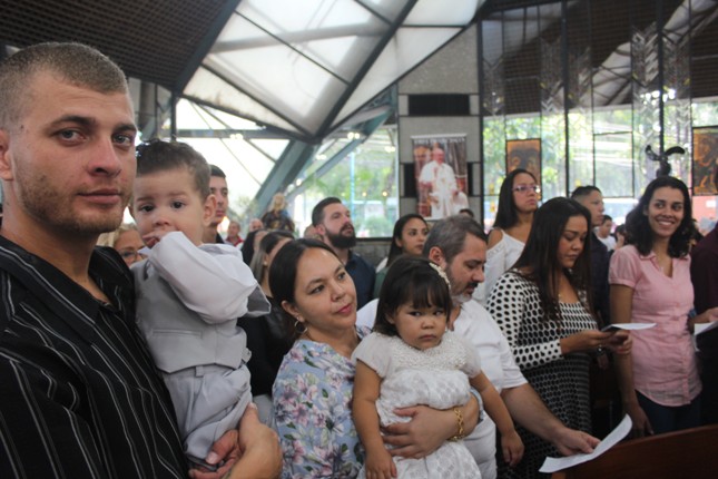 Na capela universitária São Judas Tadeu, antes da celebração eucarística, os batizados como nos mostram as fotos.