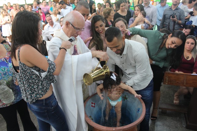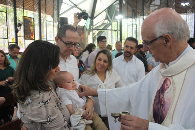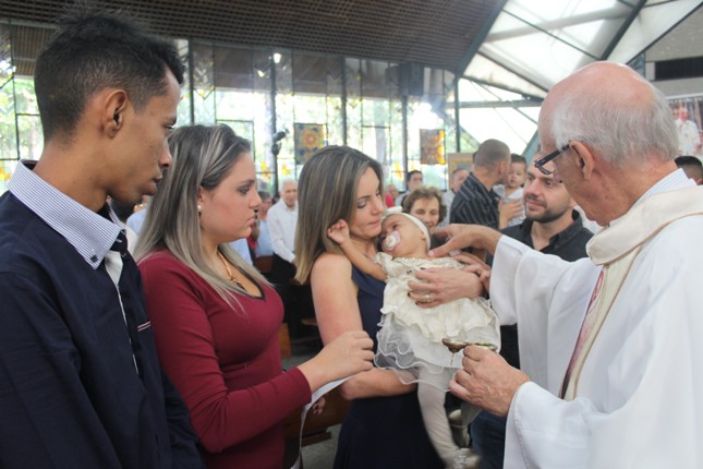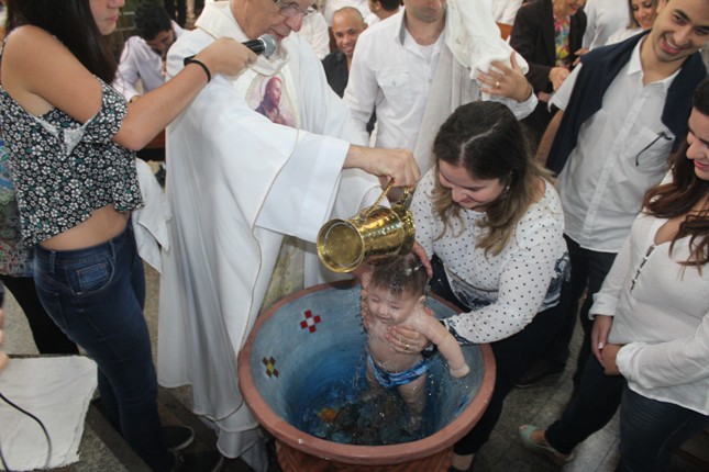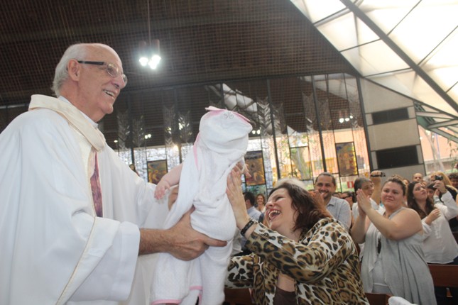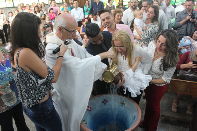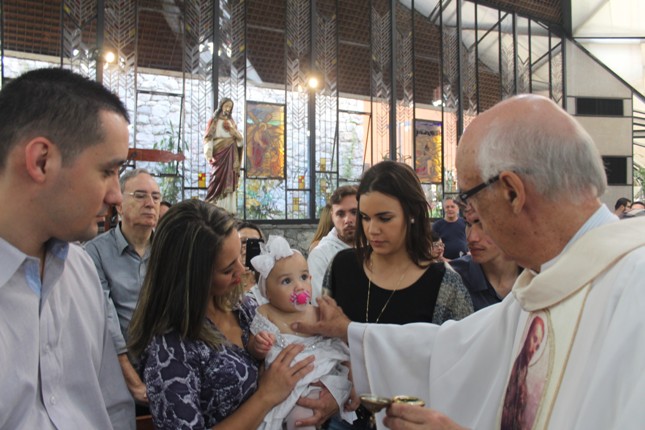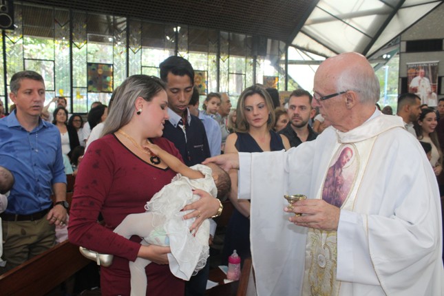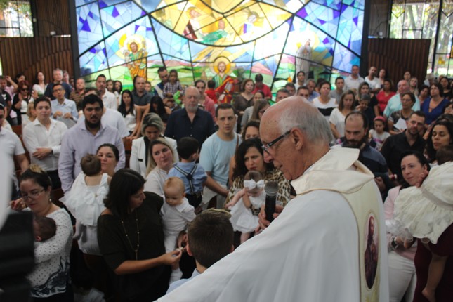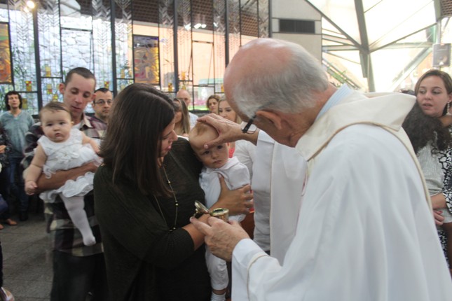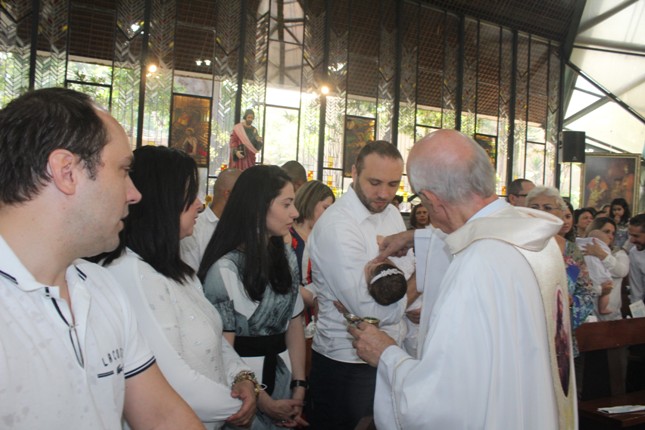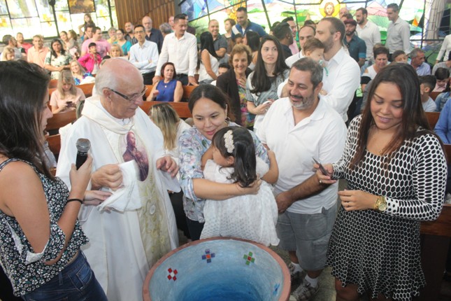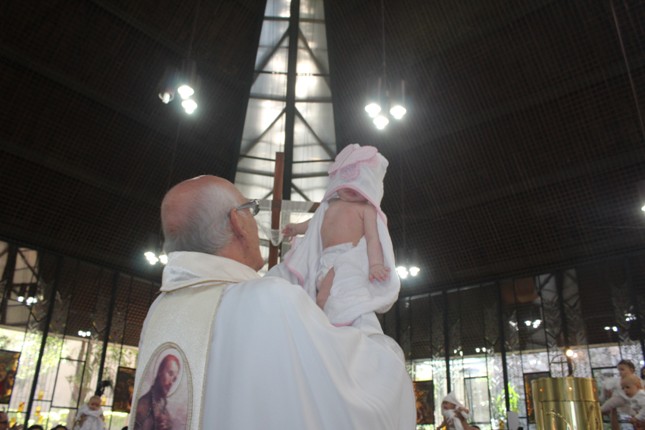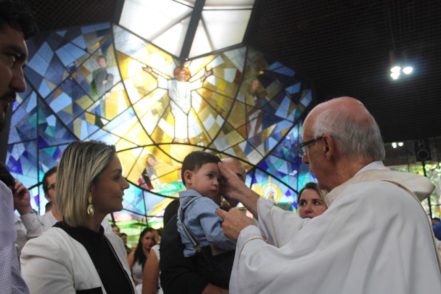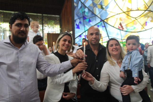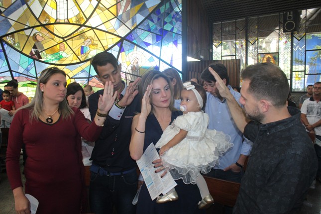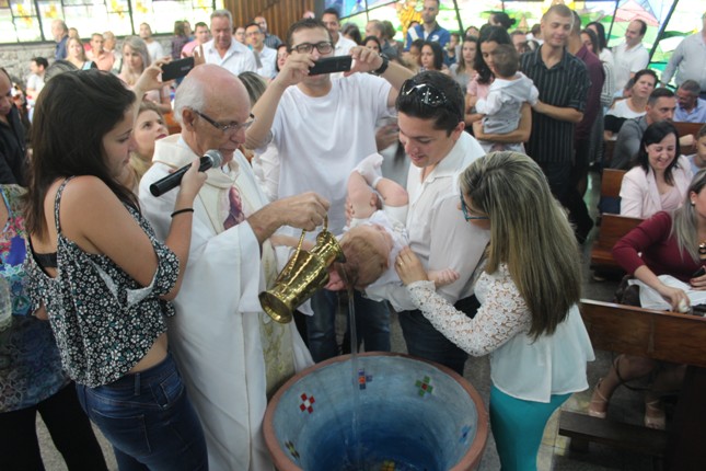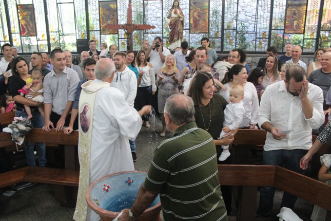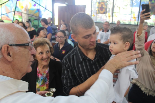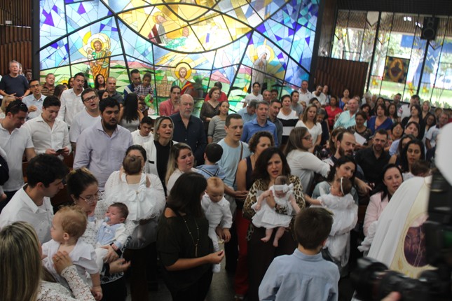 Na capela universitária São Judas Tadeu, antes da celebração eucarística, os batizados como nos mostram as fotos.