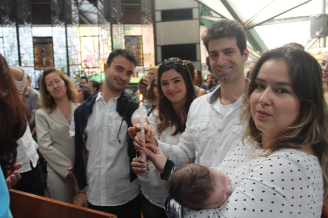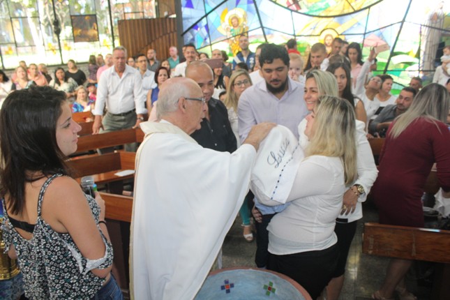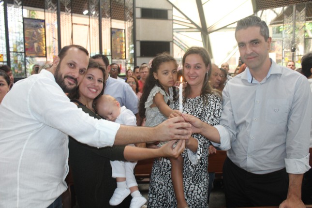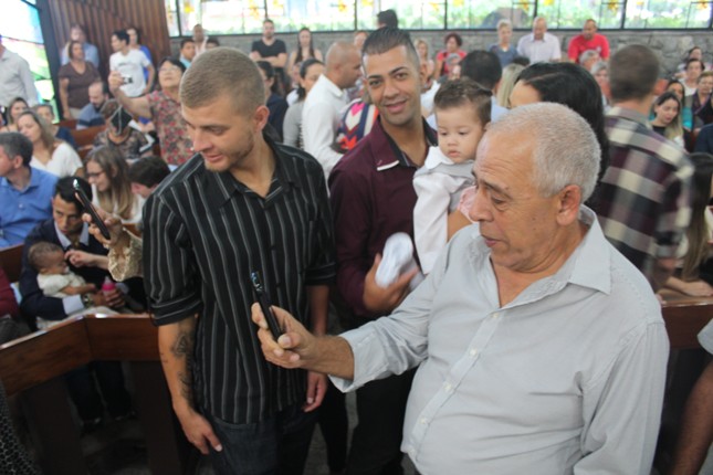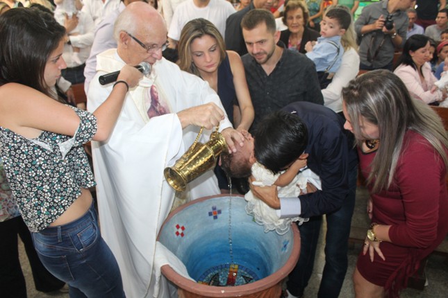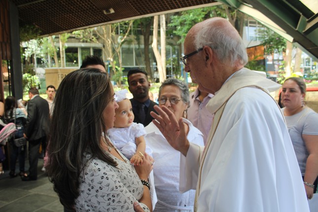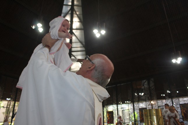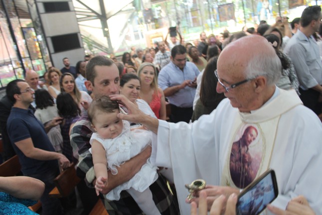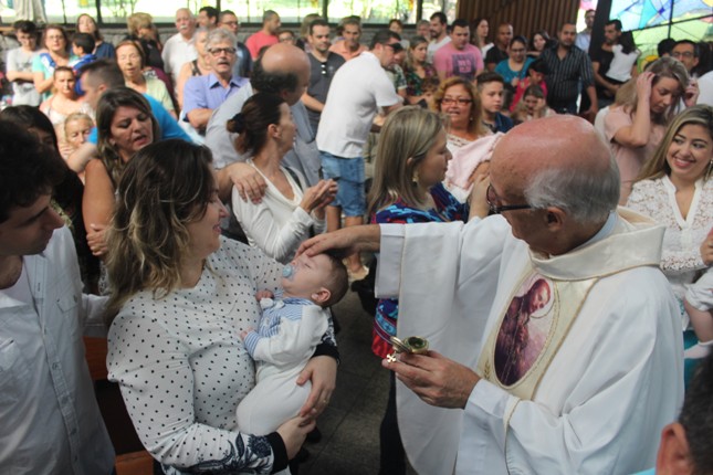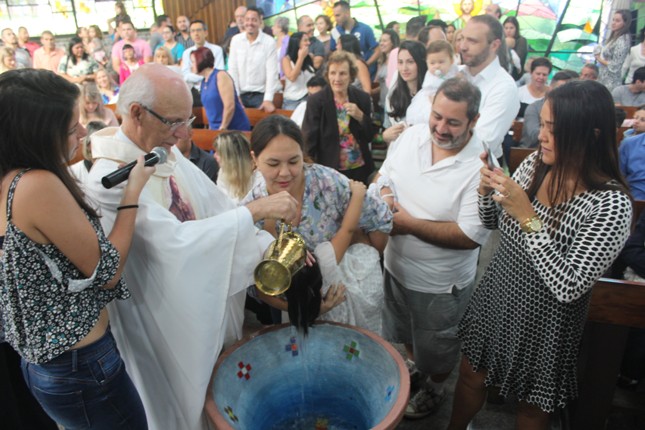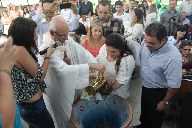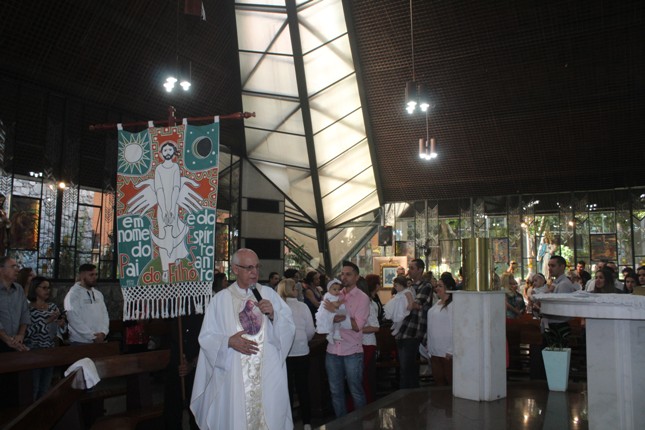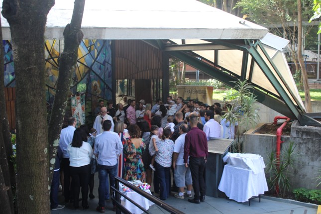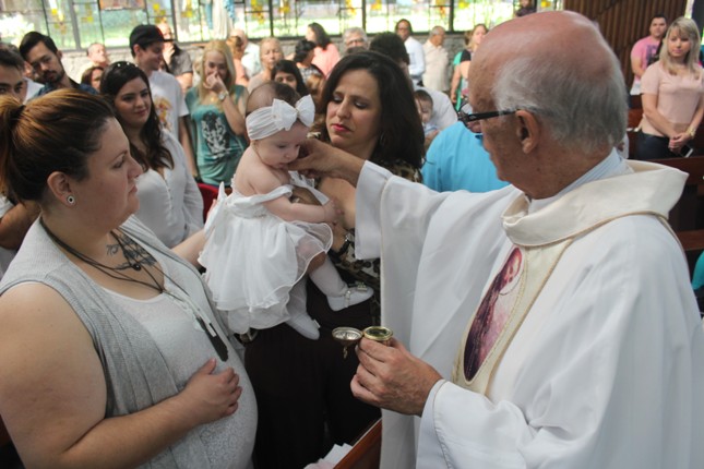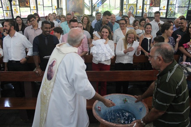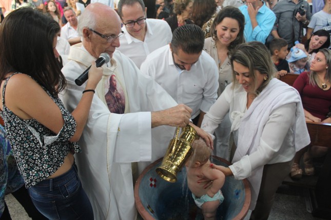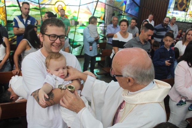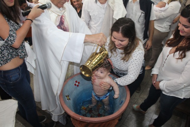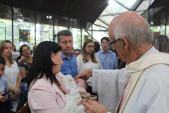 Na capela universitária São Judas Tadeu, antes da celebração eucarística, os batizados como nos mostram as fotos.