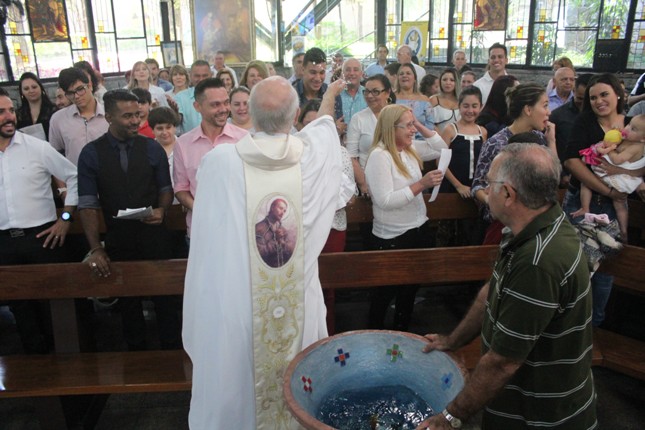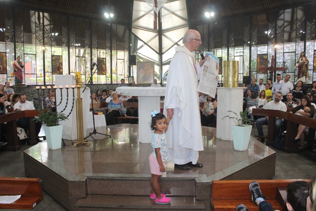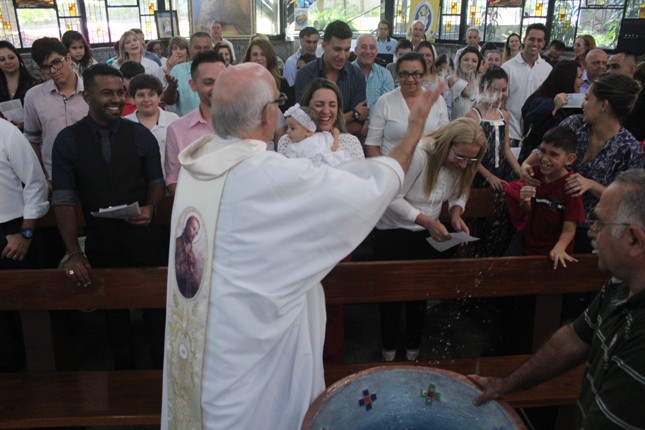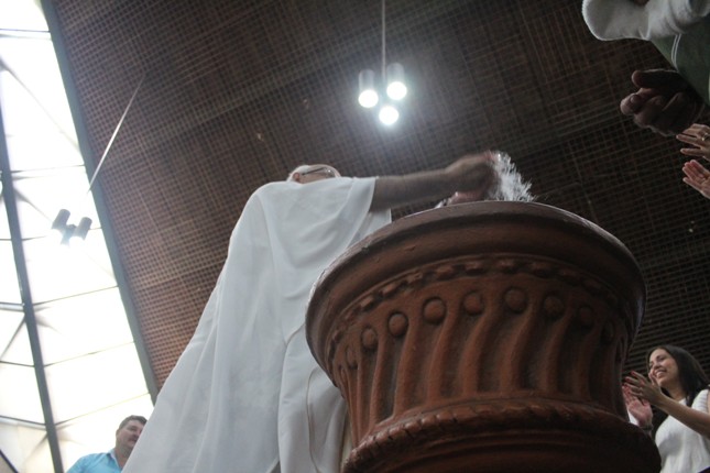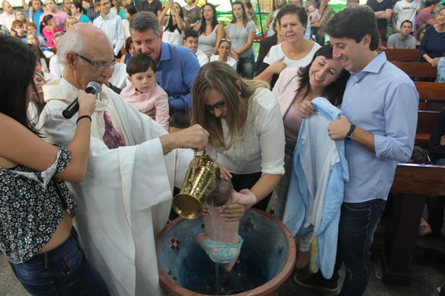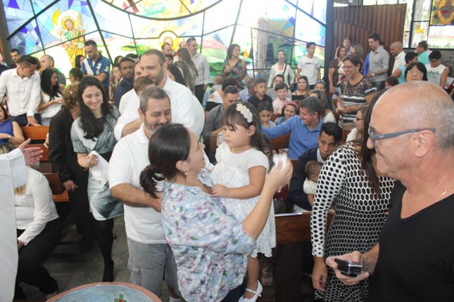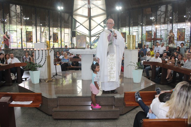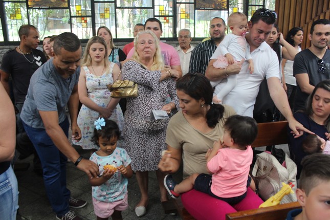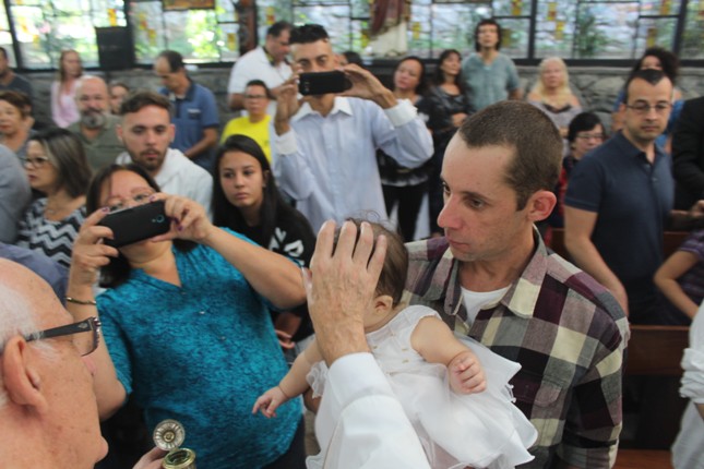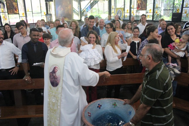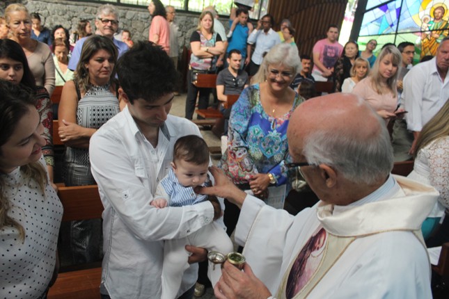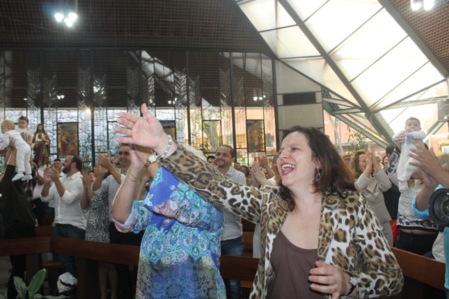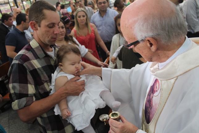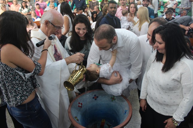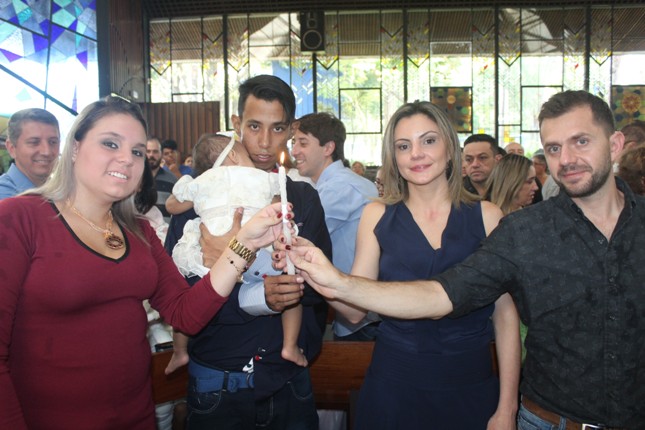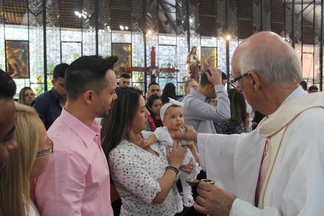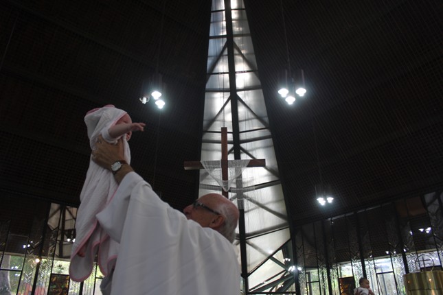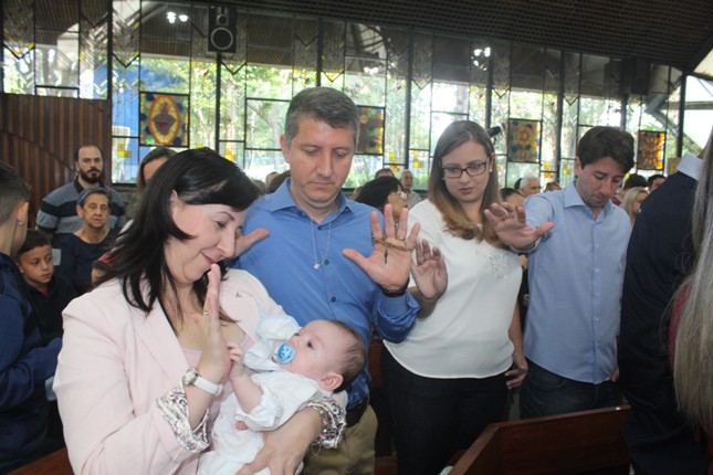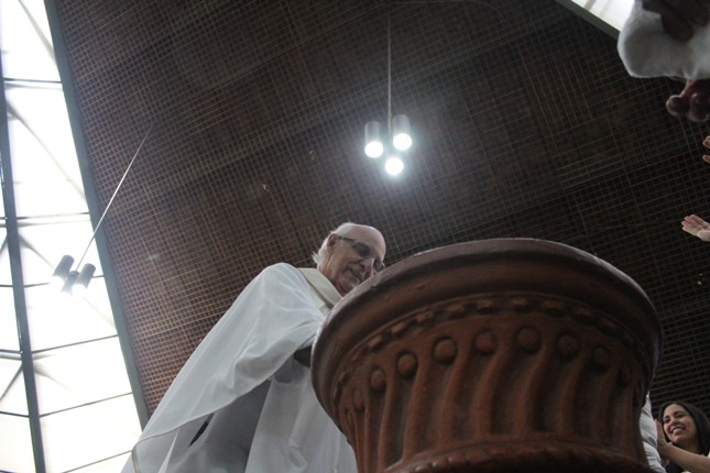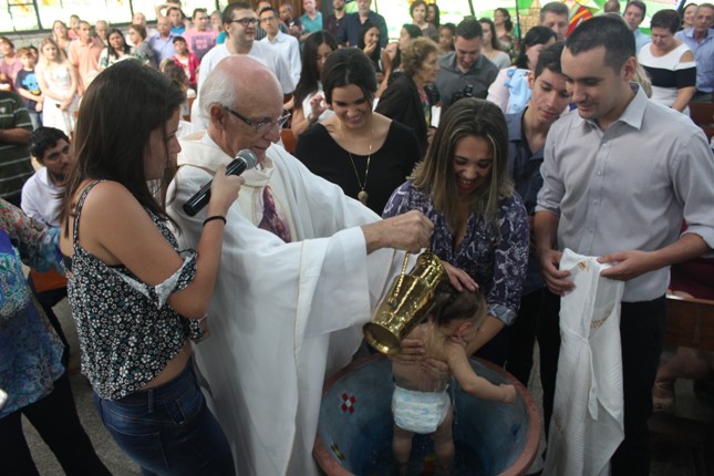 Na capela universitária São Judas Tadeu, antes da celebração eucarística, os batizados como nos mostram as fotos.