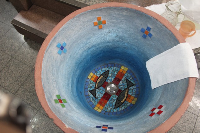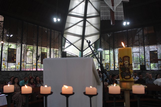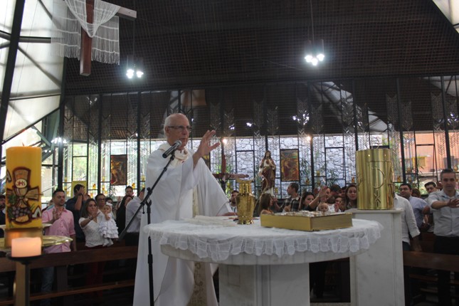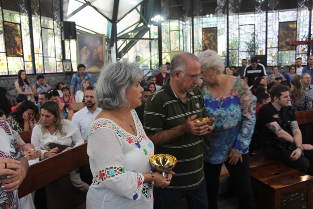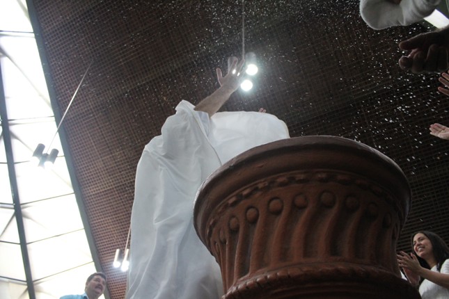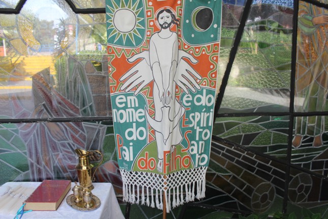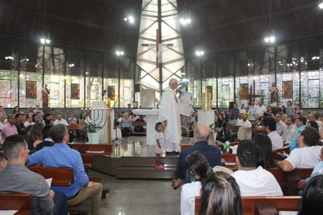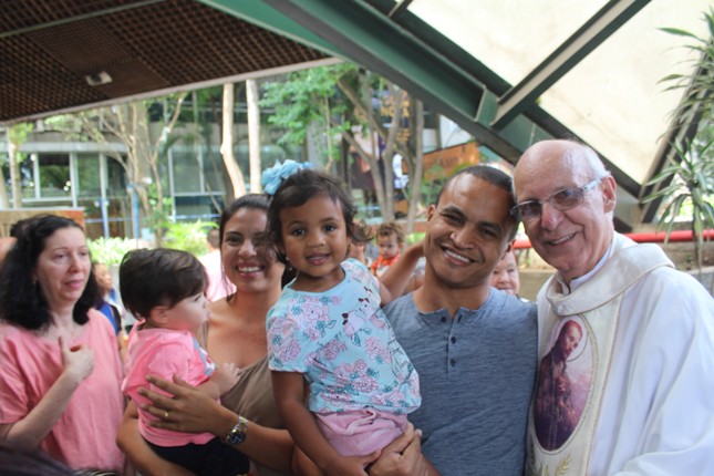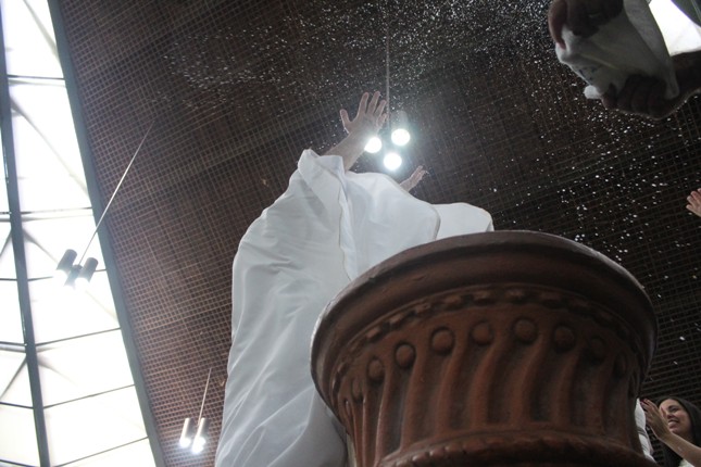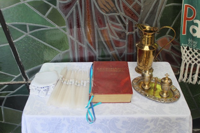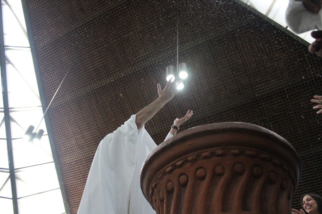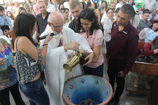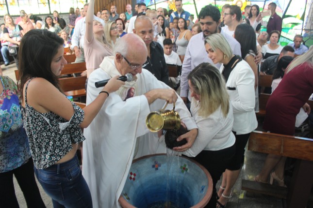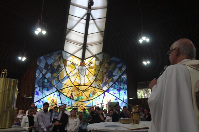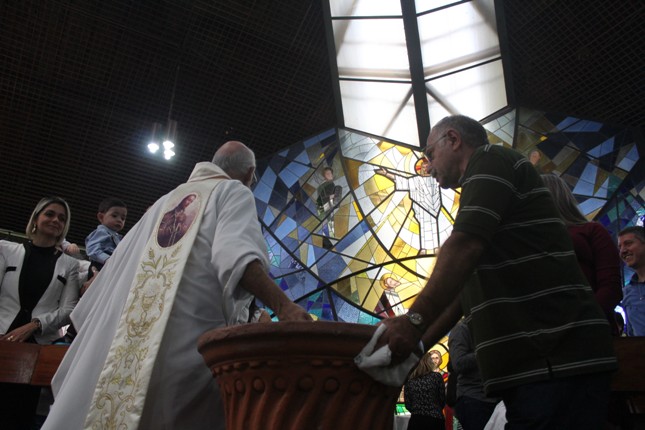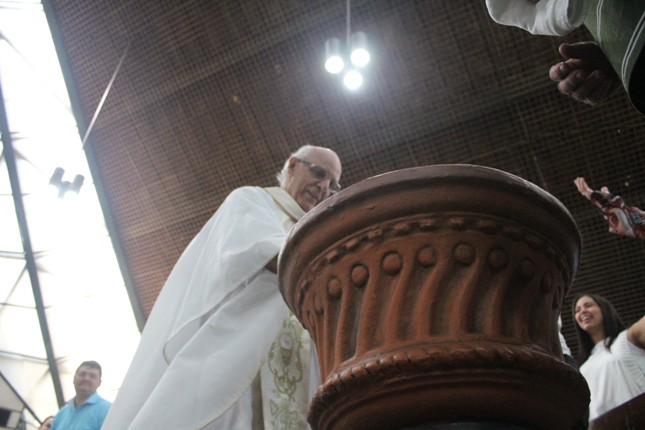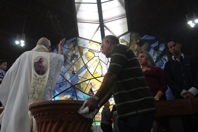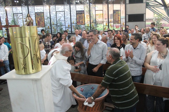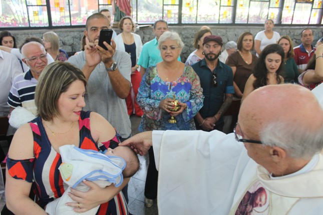 Na capela universitária São Judas Tadeu, antes da celebração eucarística, os batizados como nos mostram as fotos.
