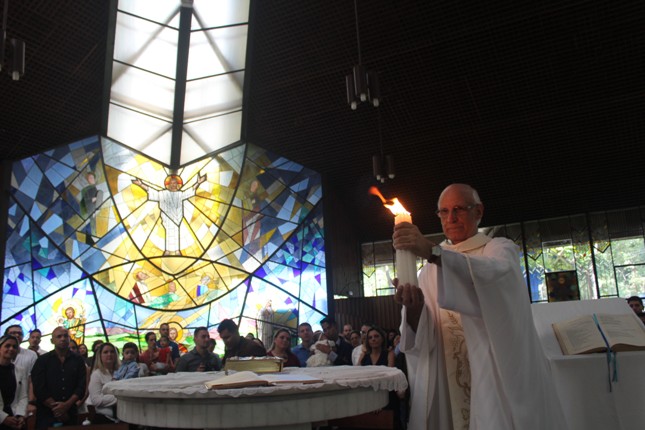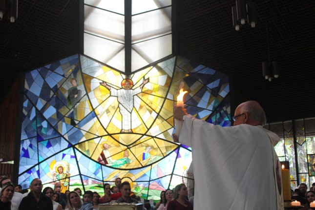 Eis que chegou para nós o dia tão esperado, o dia da salvação. A morte foi vencida e o Cordeiro encontra-se de pé e ressuscitado. Entoemos juntos o canto novo dos redimidos, façamos ecoar no mundo a novidade deste Mistério que nos envolve e nos enche de alegria.