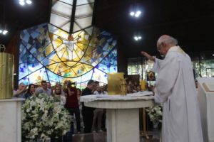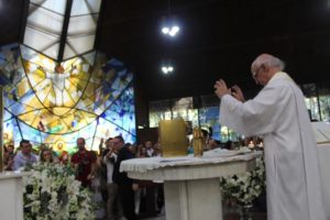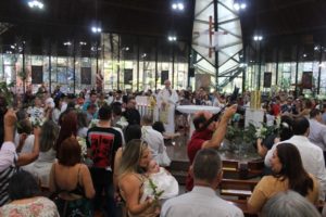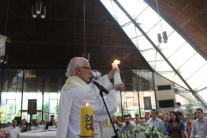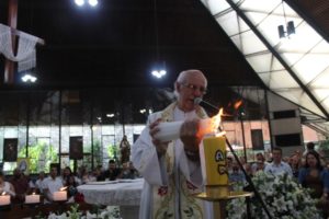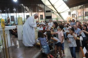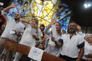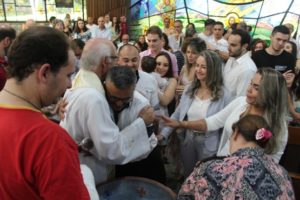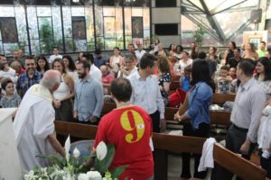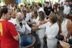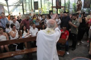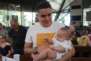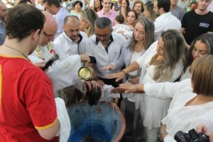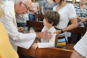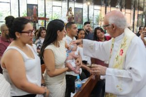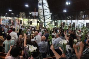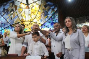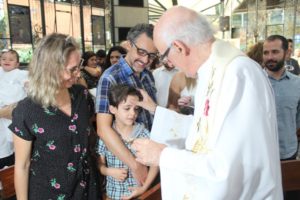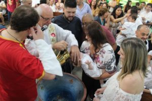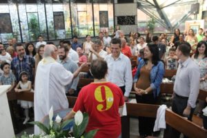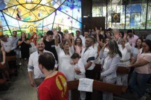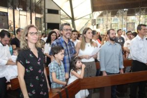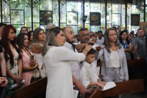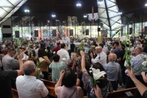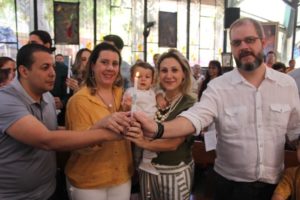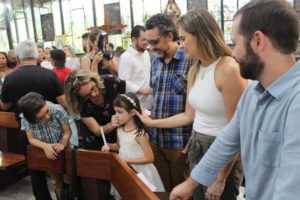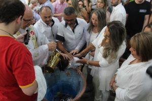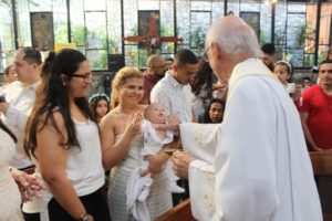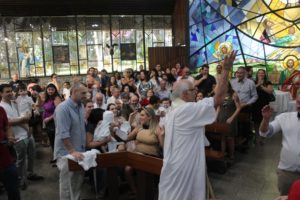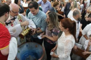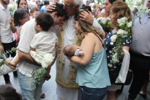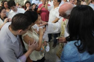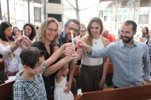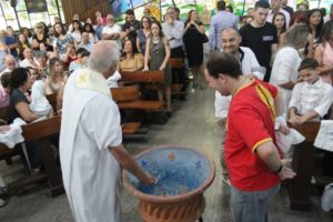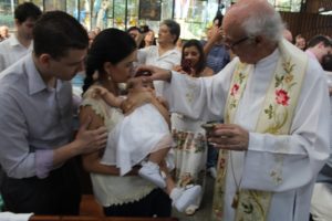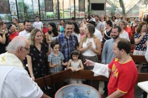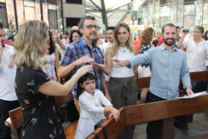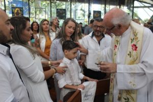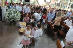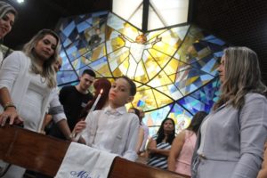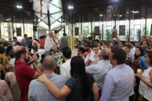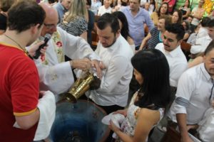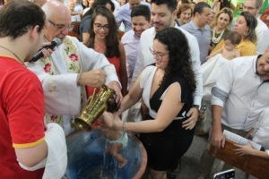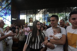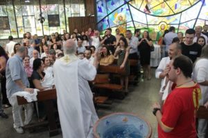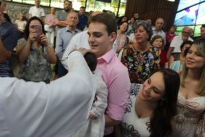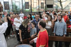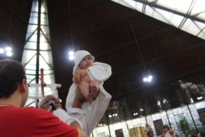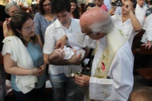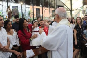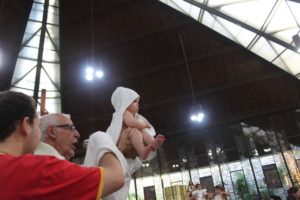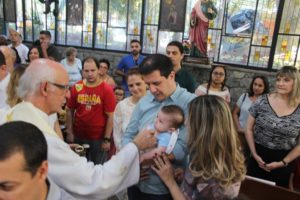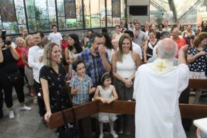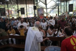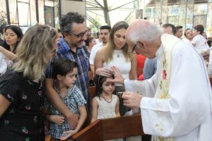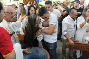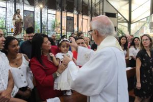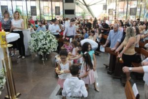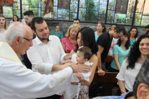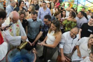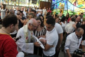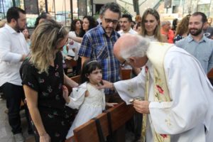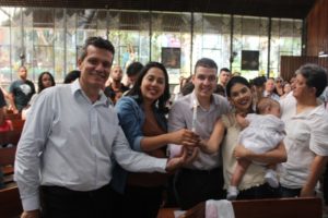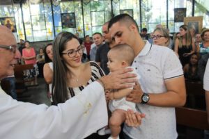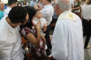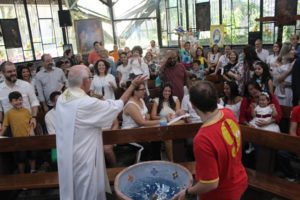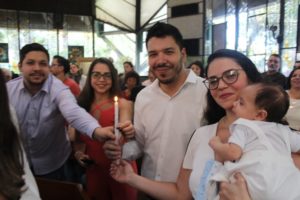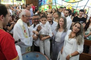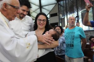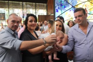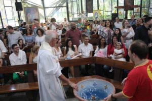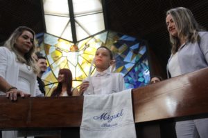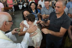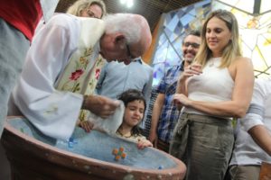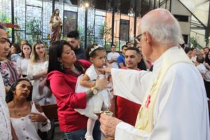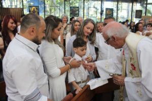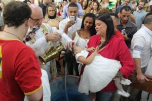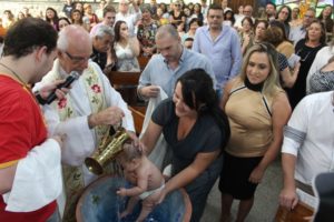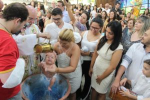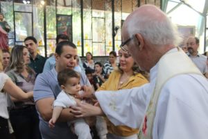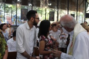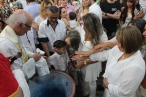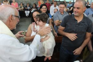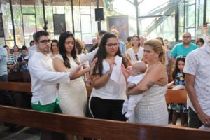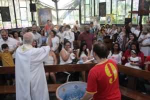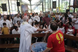 No domingo de Páscoa, mais 17 crianças foram batizadas na Comunidade São Miguel Arcanjo. O batizado, como é tradicional, começou as 9h30 e seguiu com a celebração eucaristica. Foram batizados