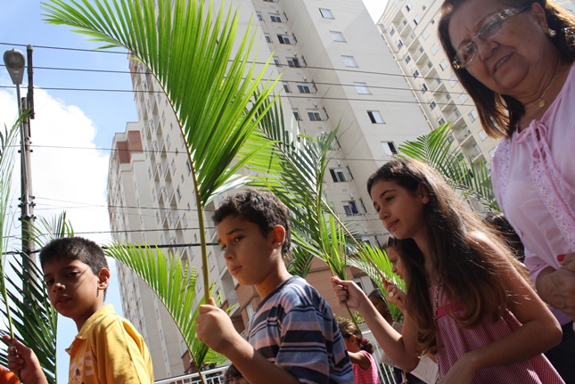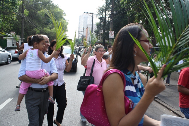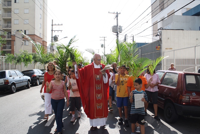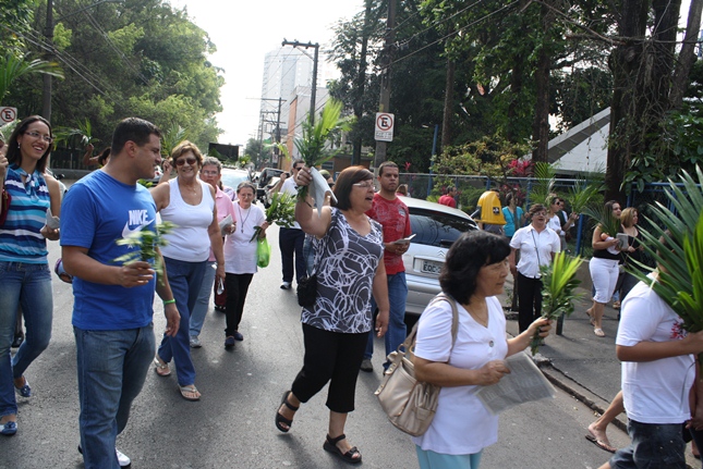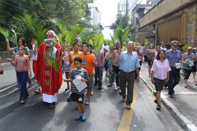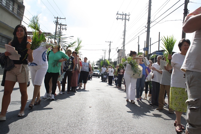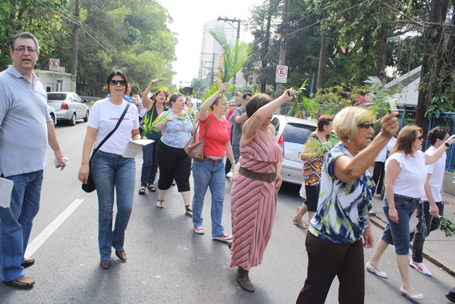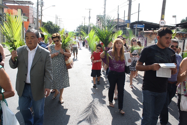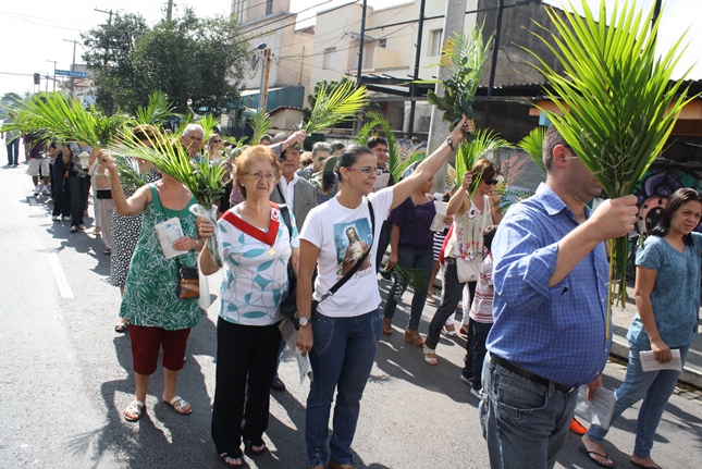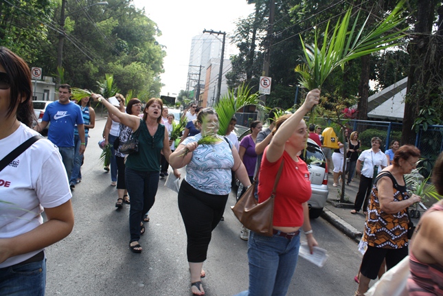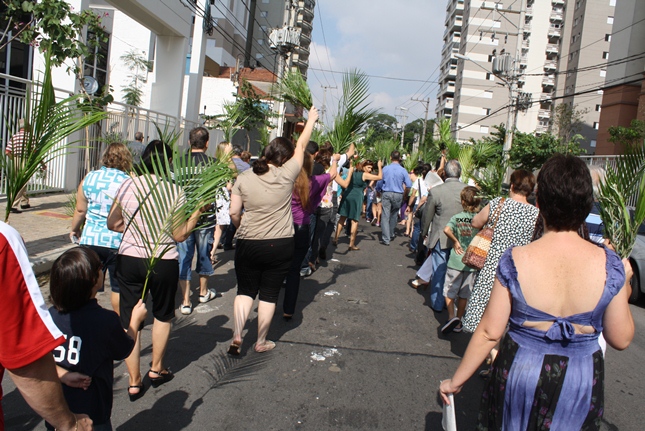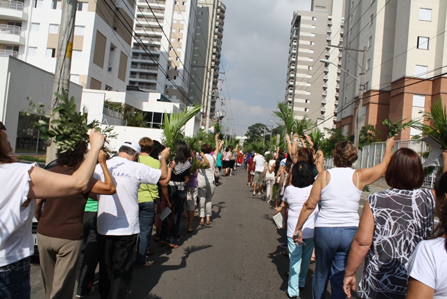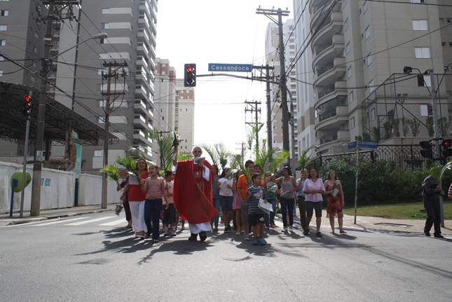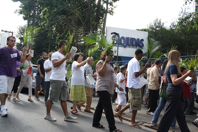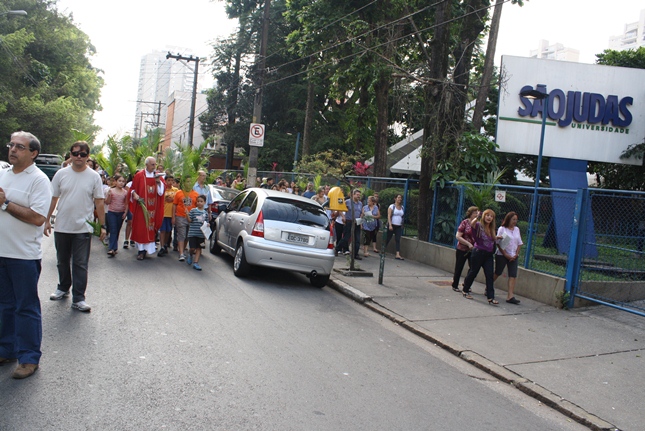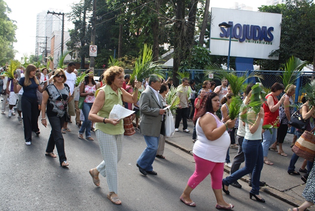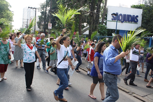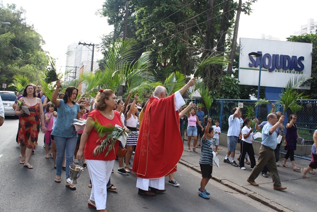 Este Domingo de Ramos foi um forte momento em comunidade. Desde a saída da procissão na igreja São Miguel Arcanjo, o trajeto passando pelos novos prédios, a entrada na Universidade São Judas Tadeu, até o final da missa na Capela São Judas, o povo cantou Hosana nas Alturas e rezou em comunhão com a Igreja.