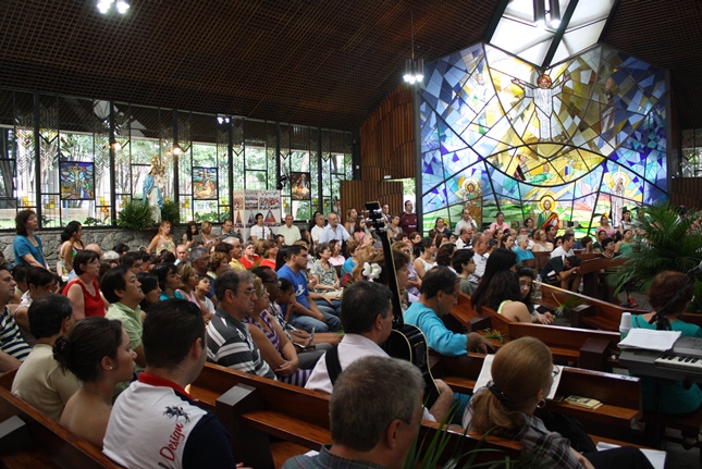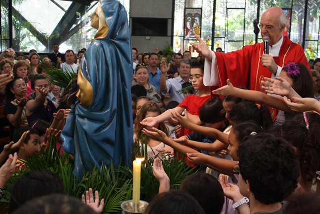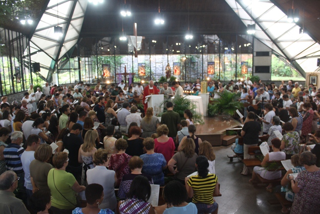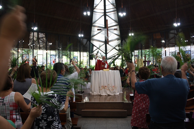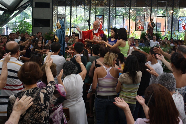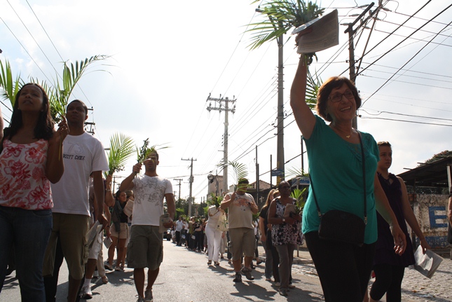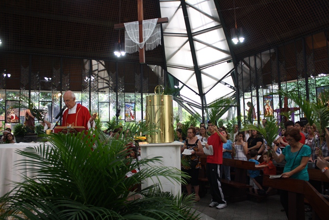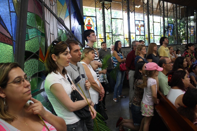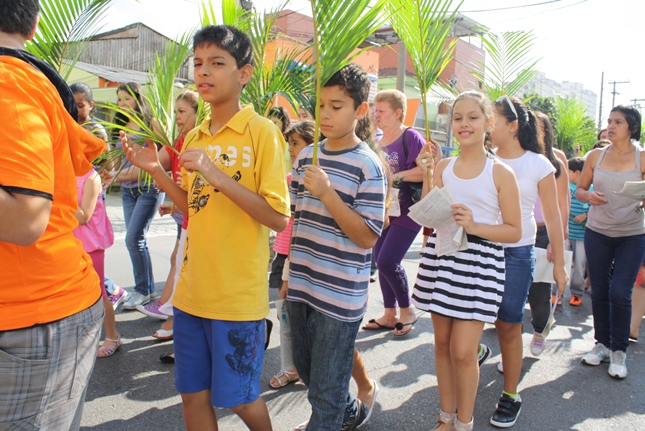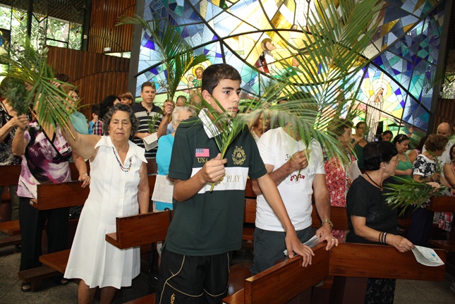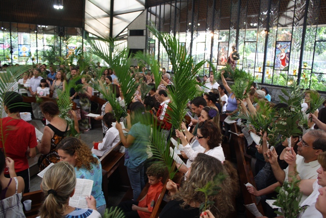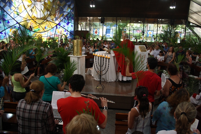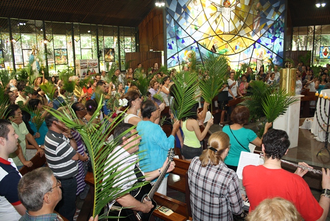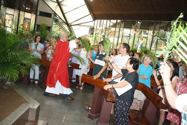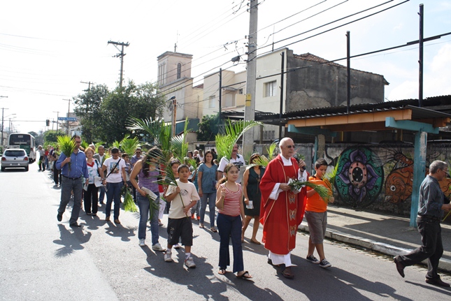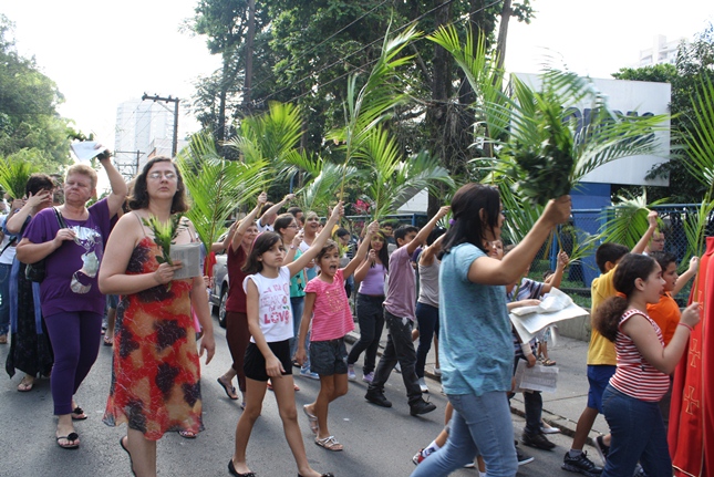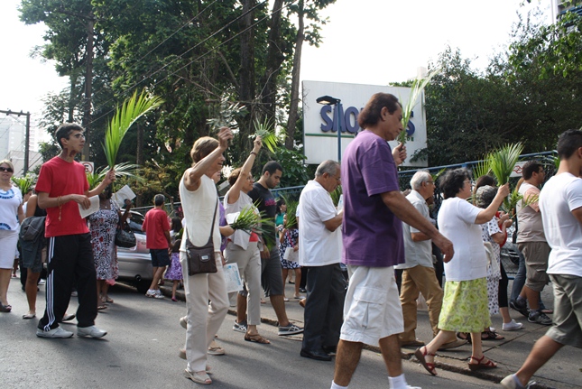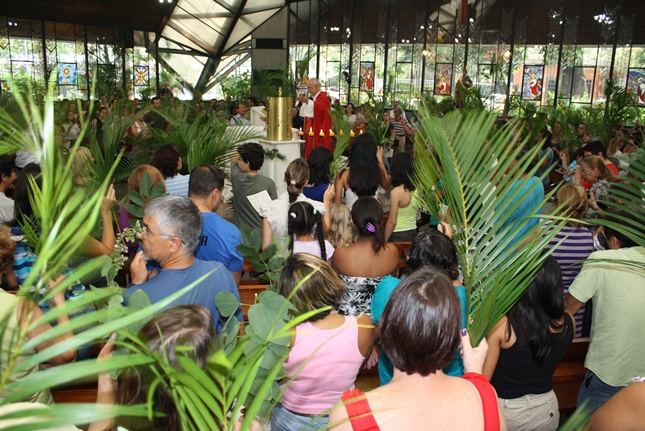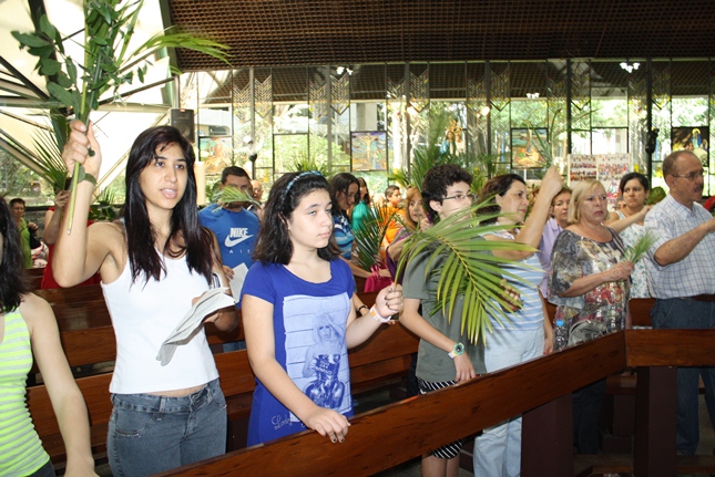 Este Domingo de Ramos foi um forte momento em comunidade. Desde a saída da procissão na igreja São Miguel Arcanjo, o trajeto passando pelos novos prédios, a entrada na Universidade São Judas Tadeu, até o final da missa na Capela São Judas, o povo cantou Hosana nas Alturas e rezou em comunhão com a Igreja.