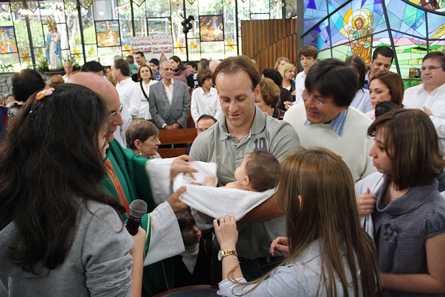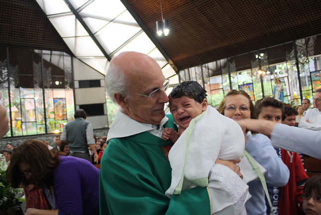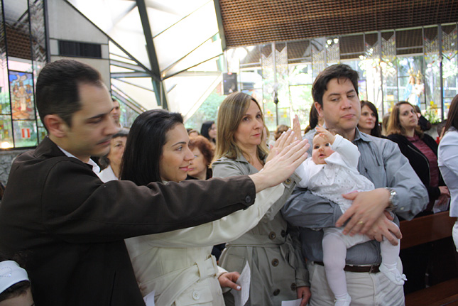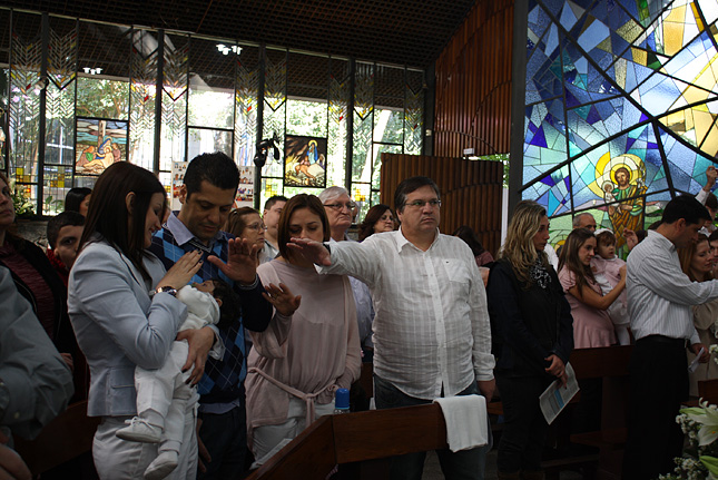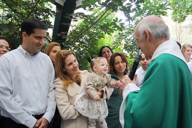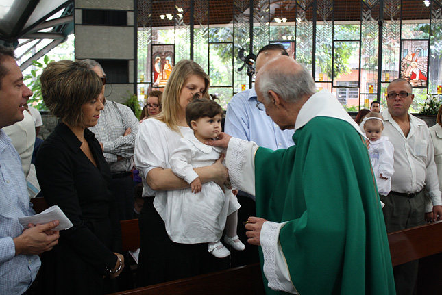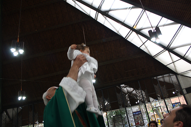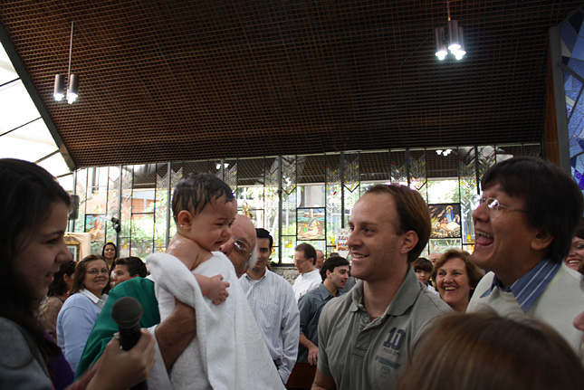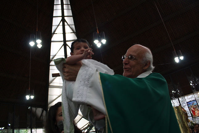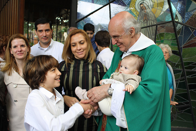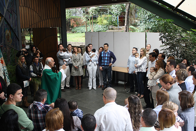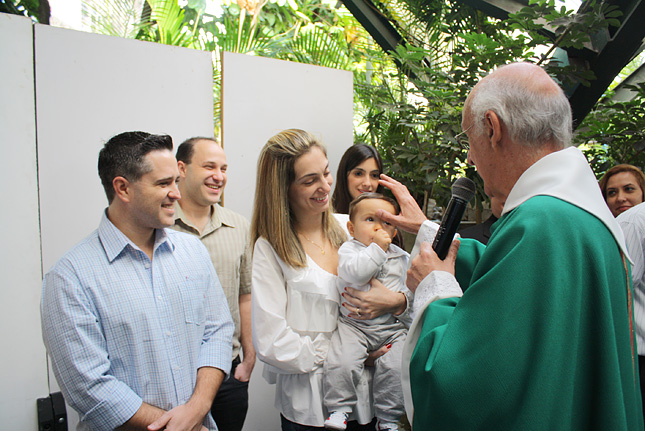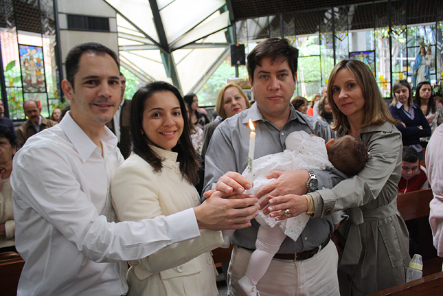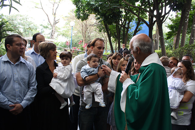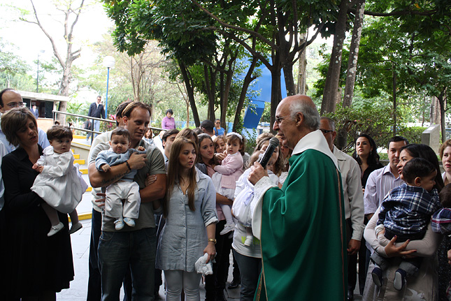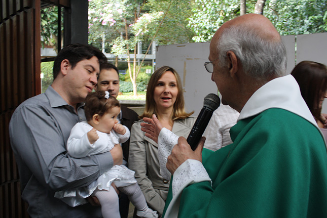 Na manhã fria do domingo, 24 de julho, na entrada da capela da Universidade São Judas, um templo acolhedor e com deslumbrantes vitrais, o padre Julio reuniu onze crianças, seus pais e padrinhos. Todos estavam dispostos num círculo, recomendou que dito o nome de cada criança todos repetissem a frase: – “Em nome do Pai, do Filho e do Espiríto, nós te acolhemos”; assim sucederam-se os nomes de: Mariana Martins, Alexandre Vasconcelos, Henrique Vasconcelos, Manuela Rodrigues, Rafael Marrano, Victor de Farias, Gabriela Poleto, Esther Luiza, Juliana Andrea Lozano, João Morais de Carvalho e Luiza Marques.
