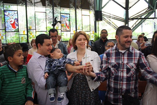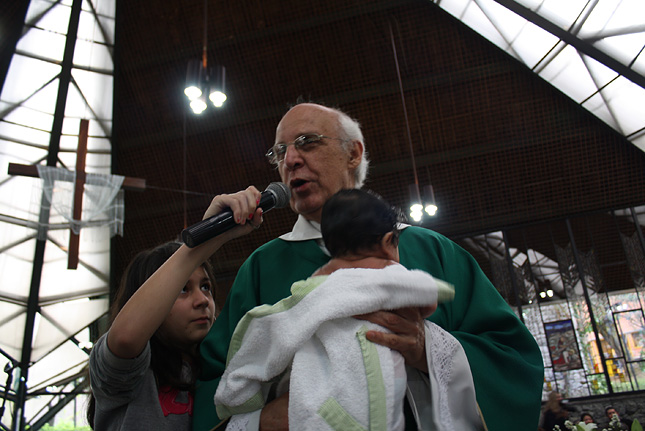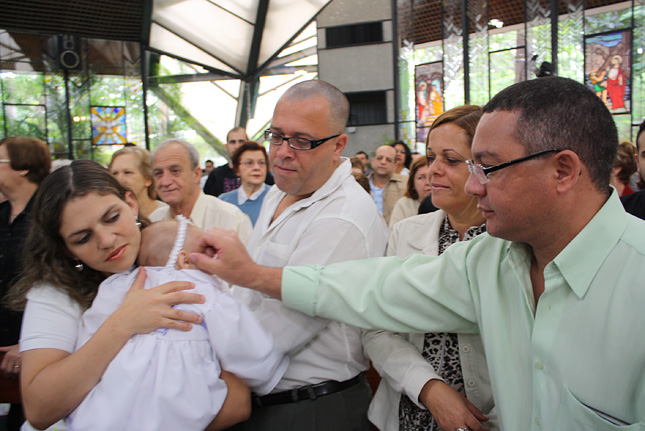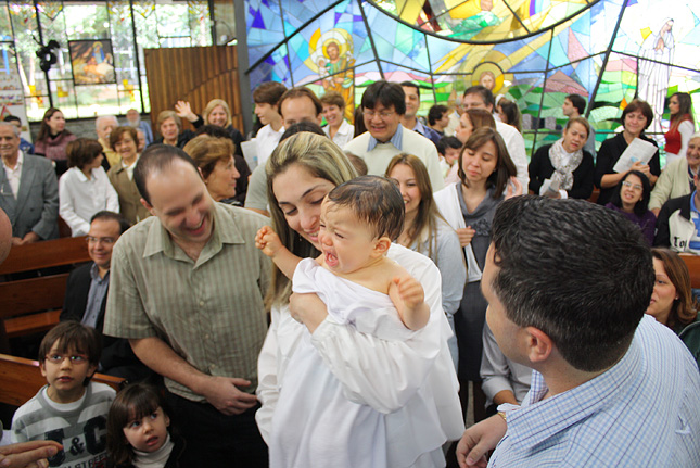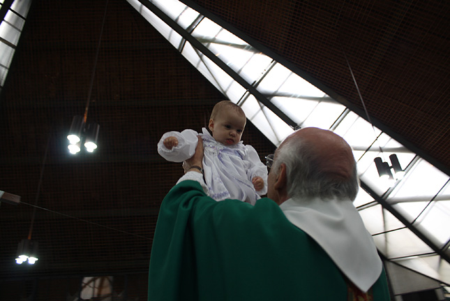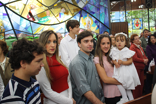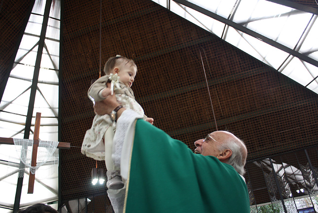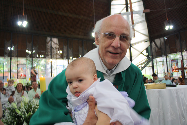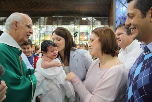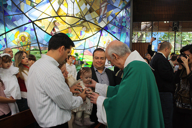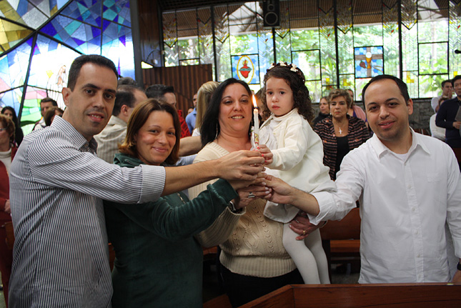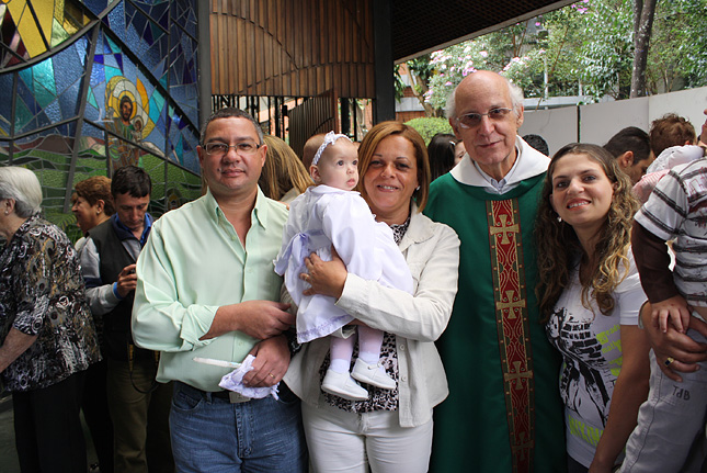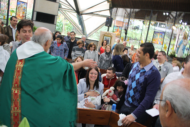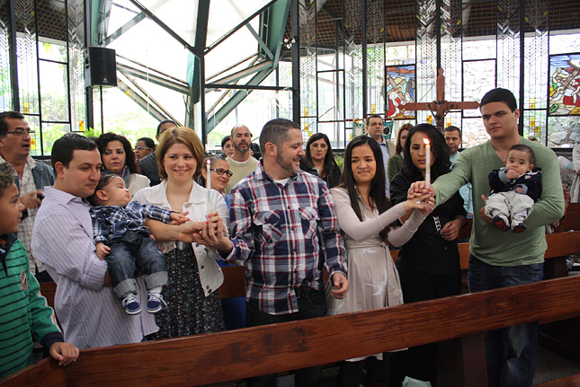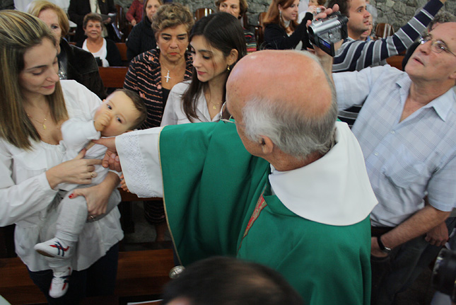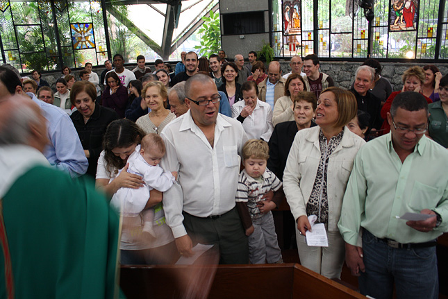 Na manhã fria do domingo, 24 de julho, na entrada da capela da Universidade São Judas, um templo acolhedor e com deslumbrantes vitrais, o padre Julio reuniu onze crianças, seus pais e padrinhos. Todos estavam dispostos num círculo, recomendou que dito o nome de cada criança todos repetissem a frase: – “Em nome do Pai, do Filho e do Espiríto, nós te acolhemos”; assim sucederam-se os nomes de: Mariana Martins, Alexandre Vasconcelos, Henrique Vasconcelos, Manuela Rodrigues, Rafael Marrano, Victor de Farias, Gabriela Poleto, Esther Luiza, Juliana Andrea Lozano, João Morais de Carvalho e Luiza Marques.