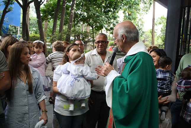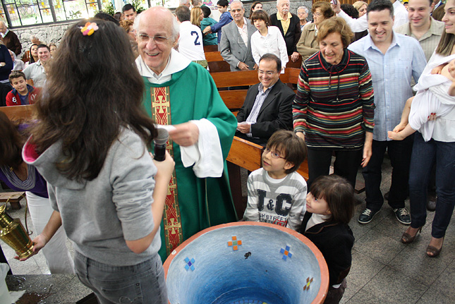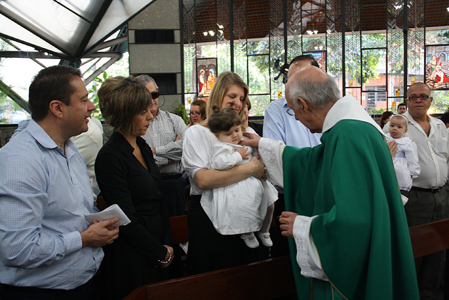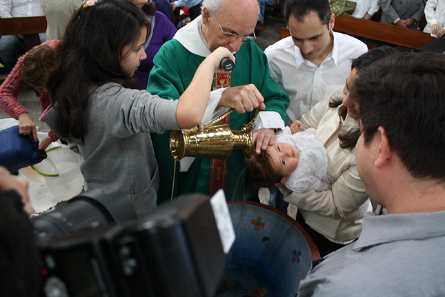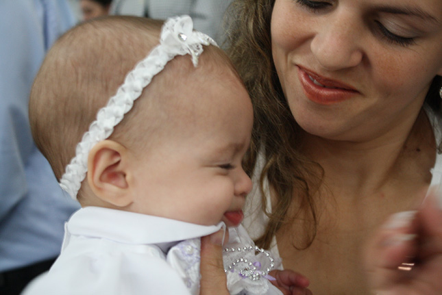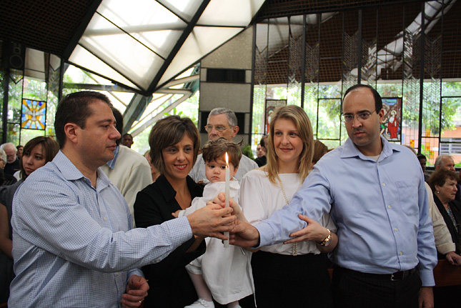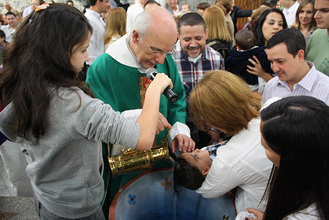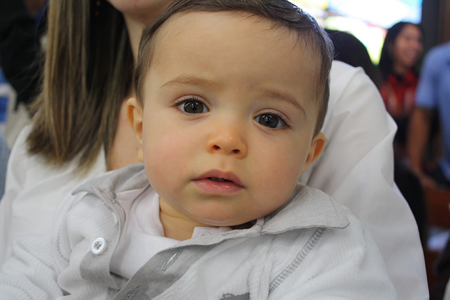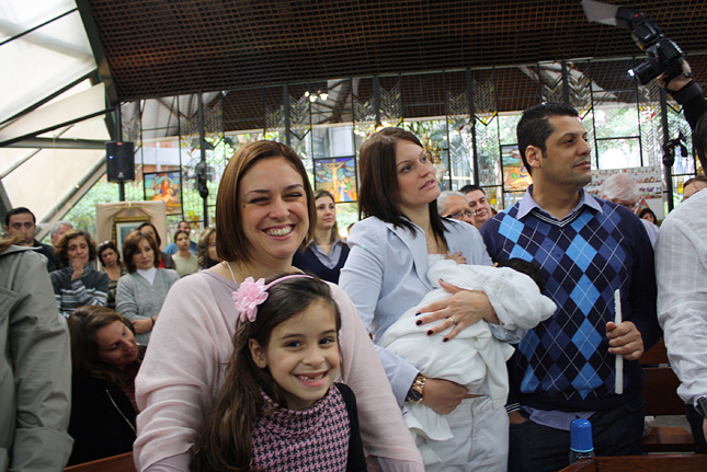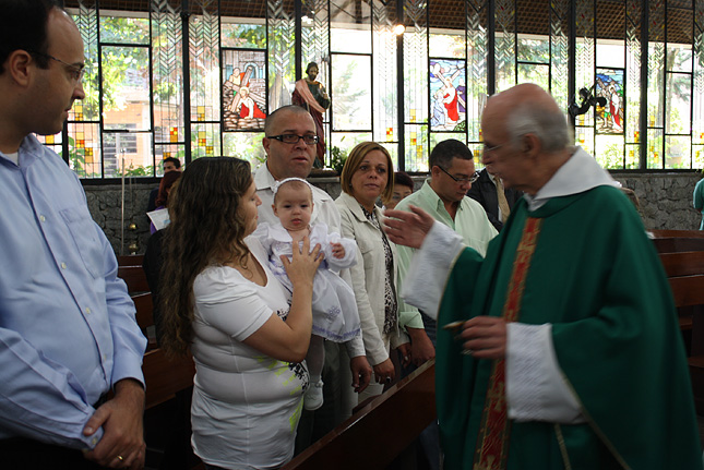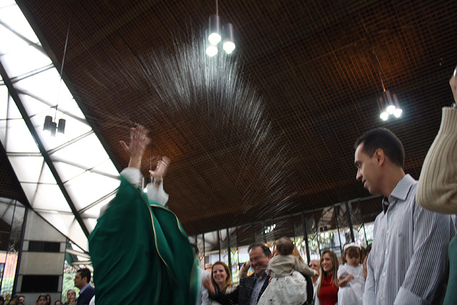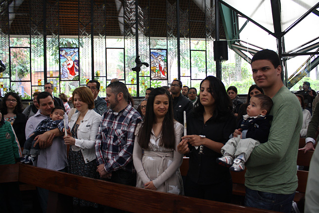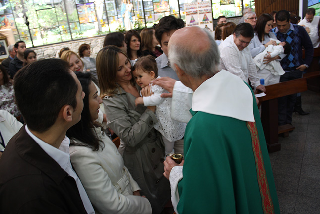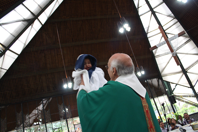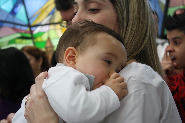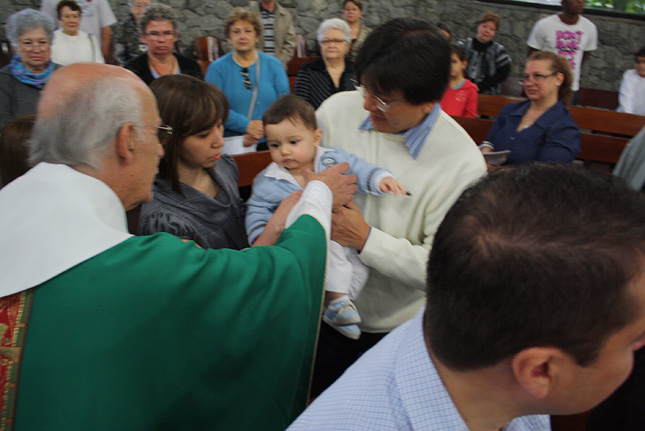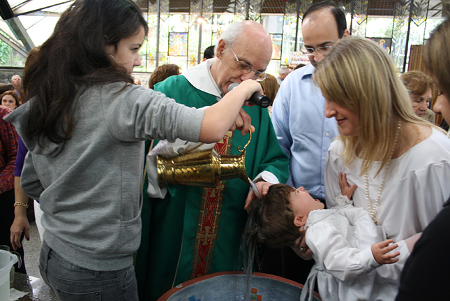 Na manhã fria do domingo, 24 de julho, na entrada da capela da Universidade São Judas, um templo acolhedor e com deslumbrantes vitrais, o padre Julio reuniu onze crianças, seus pais e padrinhos. Todos estavam dispostos num círculo, recomendou que dito o nome de cada criança todos repetissem a frase: – “Em nome do Pai, do Filho e do Espiríto, nós te acolhemos”; assim sucederam-se os nomes de: Mariana Martins, Alexandre Vasconcelos, Henrique Vasconcelos, Manuela Rodrigues, Rafael Marrano, Victor de Farias, Gabriela Poleto, Esther Luiza, Juliana Andrea Lozano, João Morais de Carvalho e Luiza Marques.