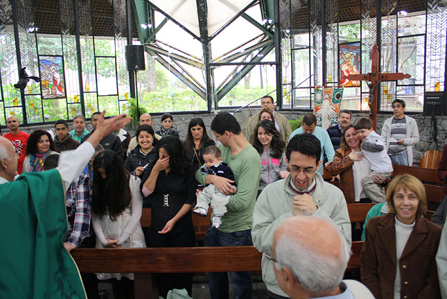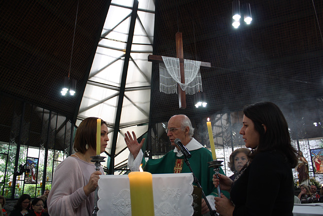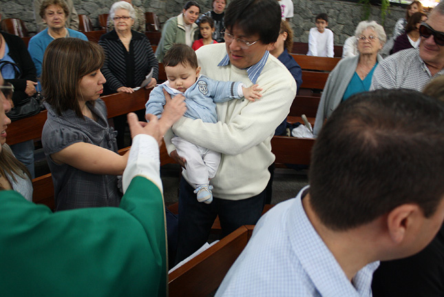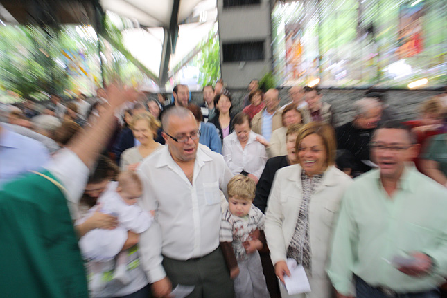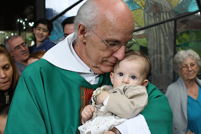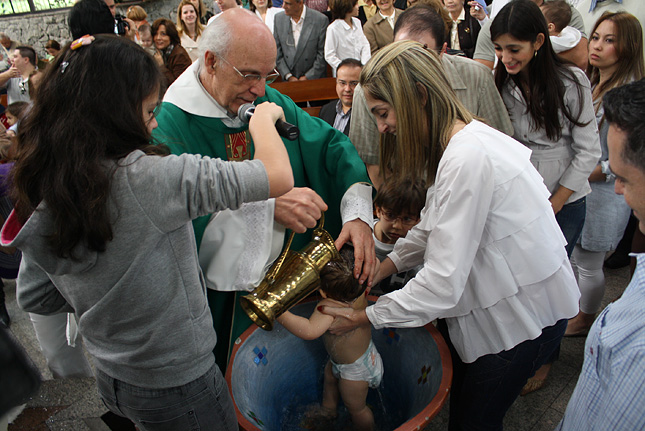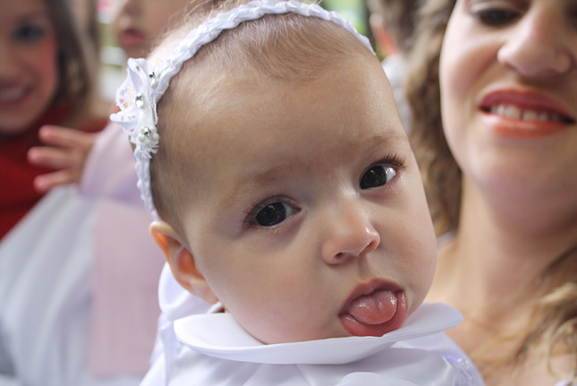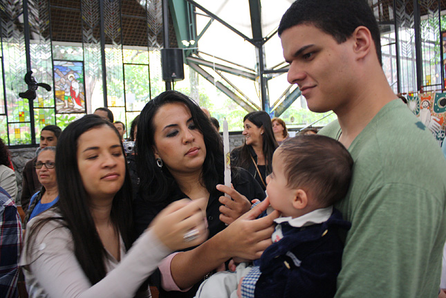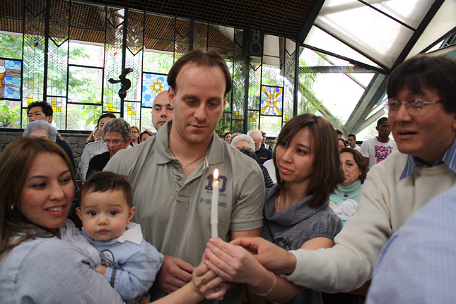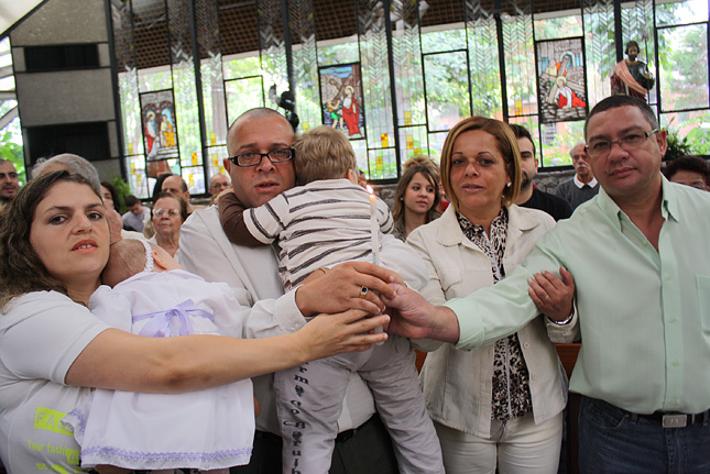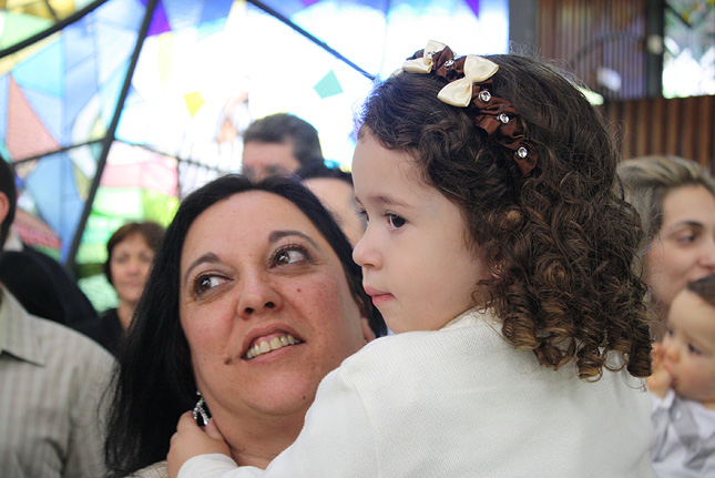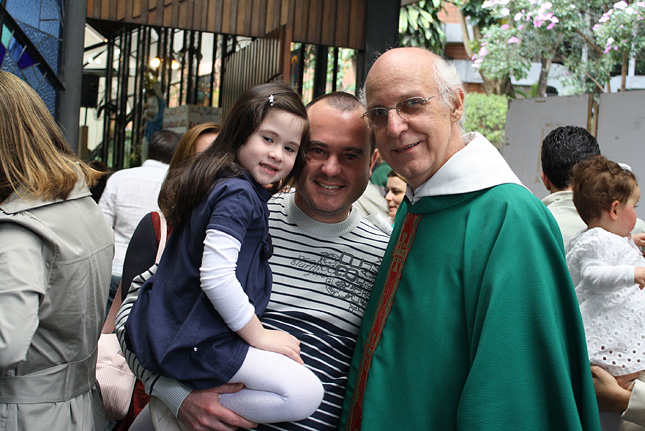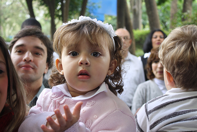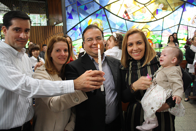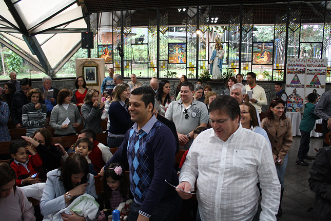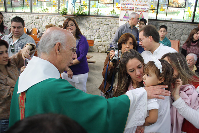 Na manhã fria do domingo, 24 de julho, na entrada da capela da Universidade São Judas, um templo acolhedor e com deslumbrantes vitrais, o padre Julio reuniu onze crianças, seus pais e padrinhos. Todos estavam dispostos num círculo, recomendou que dito o nome de cada criança todos repetissem a frase: – “Em nome do Pai, do Filho e do Espiríto, nós te acolhemos”; assim sucederam-se os nomes de: Mariana Martins, Alexandre Vasconcelos, Henrique Vasconcelos, Manuela Rodrigues, Rafael Marrano, Victor de Farias, Gabriela Poleto, Esther Luiza, Juliana Andrea Lozano, João Morais de Carvalho e Luiza Marques.