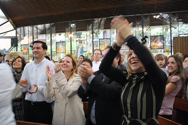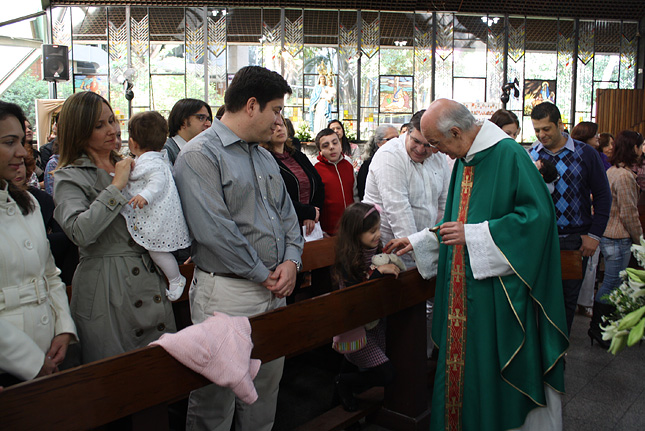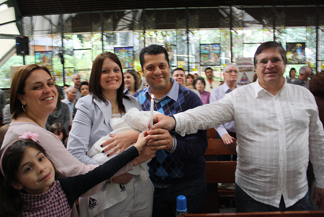 Fui tocada, através da palavra do Padre Julio, quando do batizado do meu primeiro filho (Vinicius), a quatro anos atrás. Desde então venho na missa as domingos de manhã, para saber um pouco mais sobre o amor de Deus. No domingo do dia 24.07.11 batizei o meu segundo filho (João) na capela São Judas. Os padrinhos (Alessandra e Marcio), os mesmos do meu filhoVinicius, foram grandes personagens desta minha reaproximação com a Igreja, que Graças a Deus já dura 4 anos…. Muito obrigada a toda comunidade da Móoca que acolhei a mim e a minha família (já que somos da Vila Guilherme – Zona Norte)com tanto carinho!