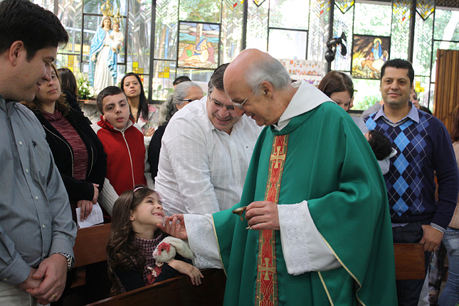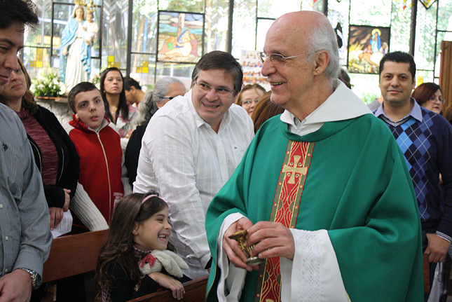 Durante a celebração, a capela lotada de pessoas da comunidade, Monsenhor Lancellotti pediu aos pais e padrinhos que não ensinassem as crianças a serem egoístas, pois isso o mundo já ensina, pediu sim que as crianças fossem ensinadas a serem solidárias, com as crianças de rua da cidade de São Paulo, com as crianças da Noruega que estão assustadas, com as crianças palestinas e judias.