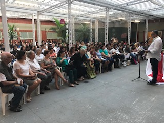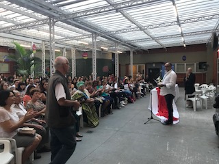 O Padre Julio, pela igreja católica, destacou a intolerância que existe com os moradores em situação de rua, especialmente no espaço do Parque que abriga a Prefeitura Regional da Mooca. Os alunos interagiram, inclusive colando frases relacionadas ao ato. Em frente à plaquinha de identificação do Pe Julio, as frases “amor”, perdão e compaixão. Coincidência?. Certamente que não, pois acompanham a vida prática desse religioso.