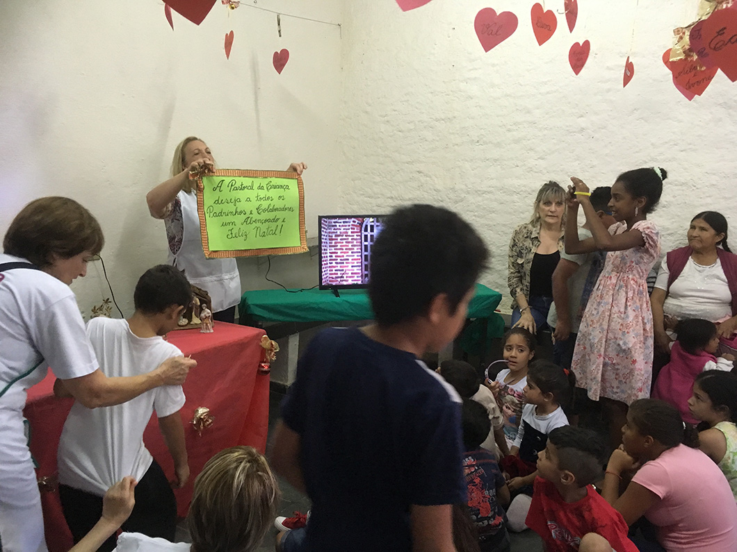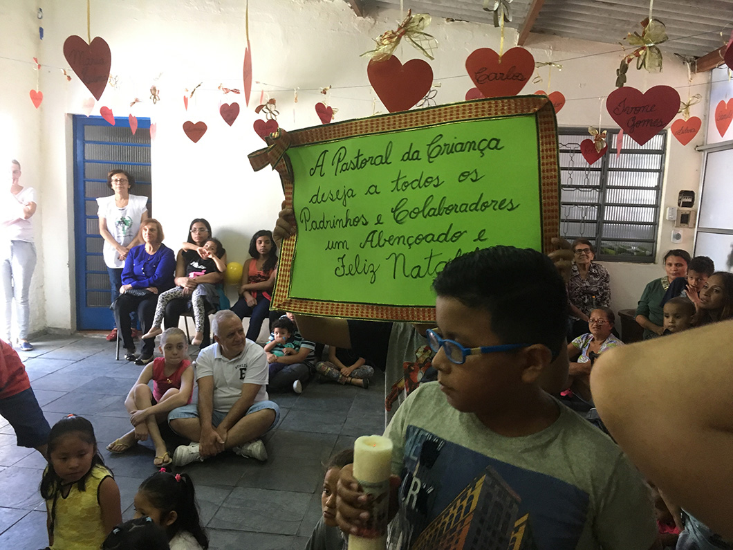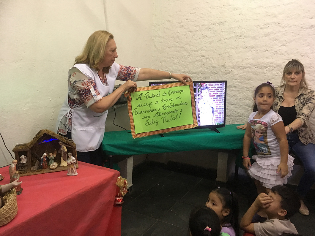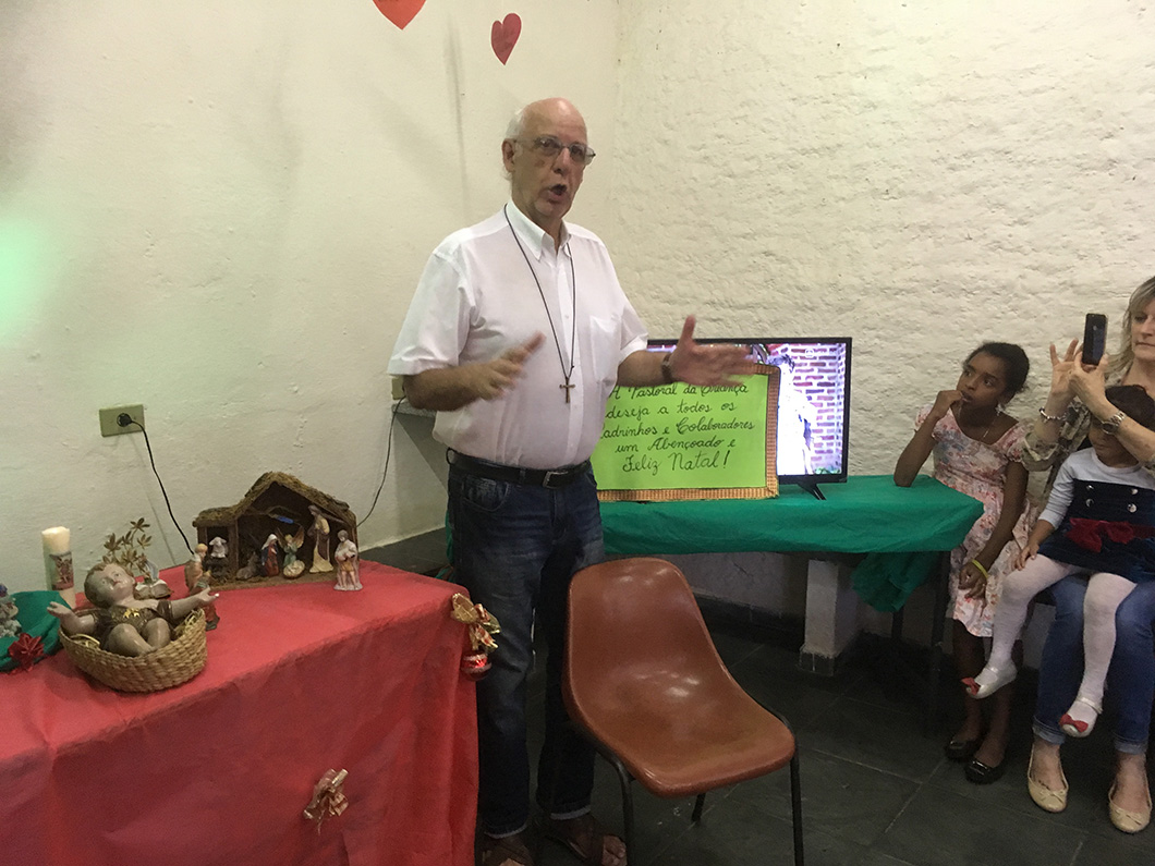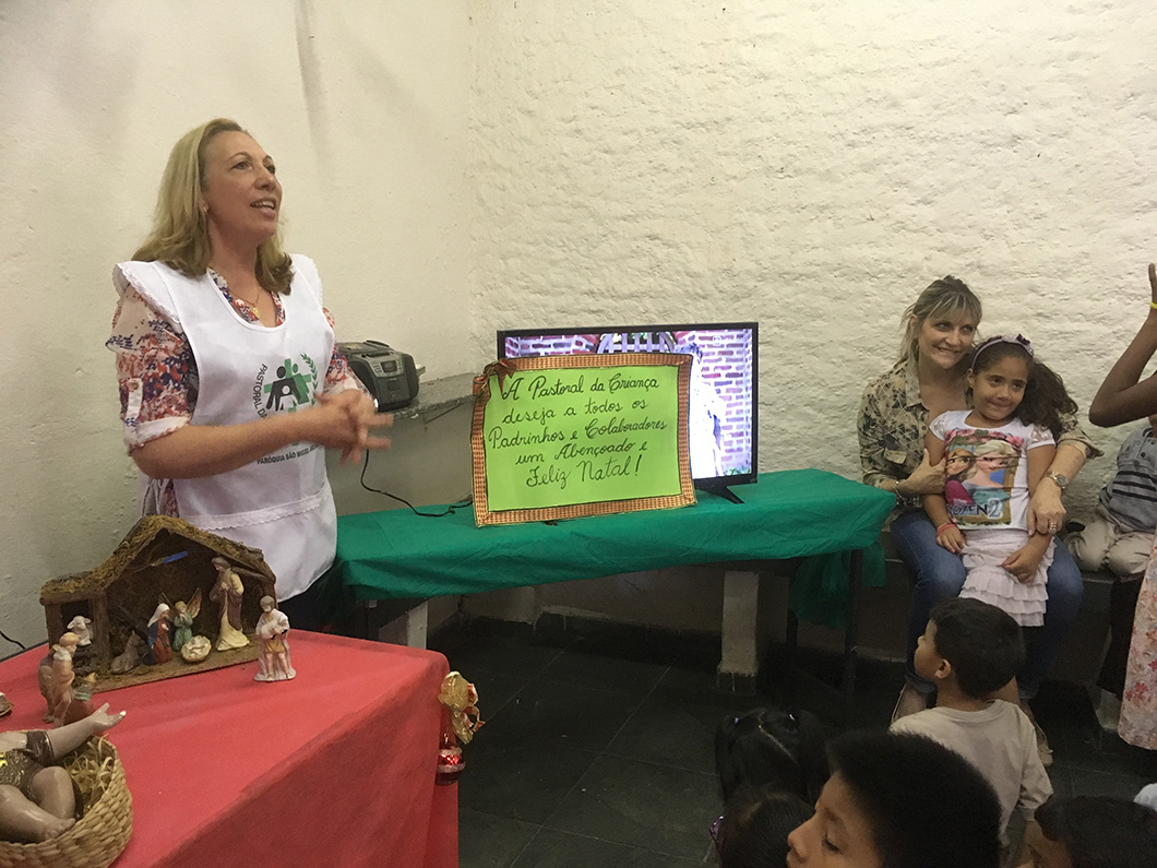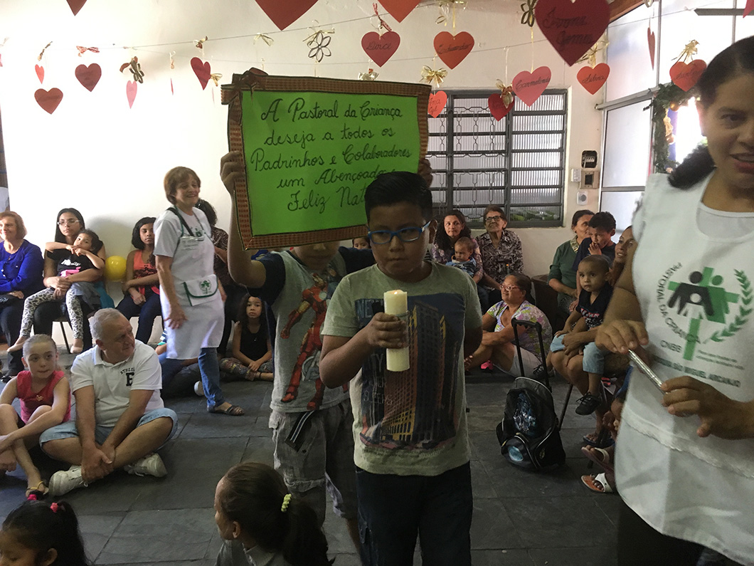 Cerca de 150 crianças participaram da festa de Natal da Pastoral da Criança da paróquia São Miguel Arcanjo, realizada dia 17/12/2016. Estavam presentes também familiares e outros integrantes da comunidade. Na oração que fez com os participantes, o Pe. Julio lembrou de D. Paulo Evaristo Arns, arcebispo emérito de São Paulo, que morreu dias antes: