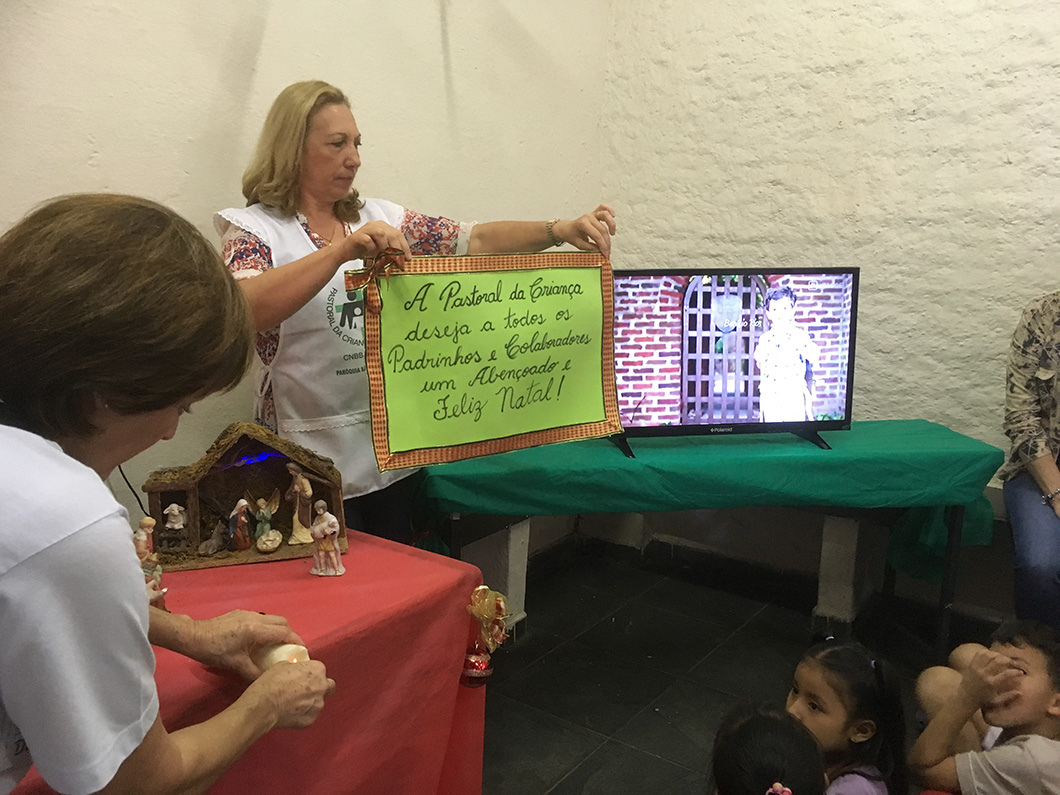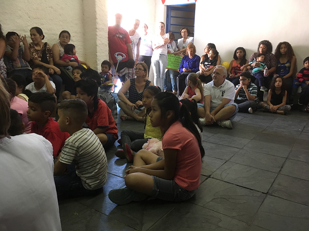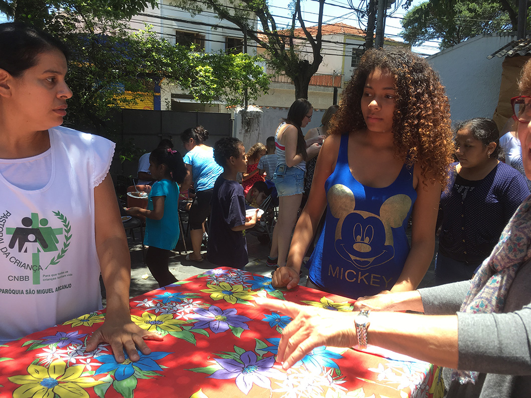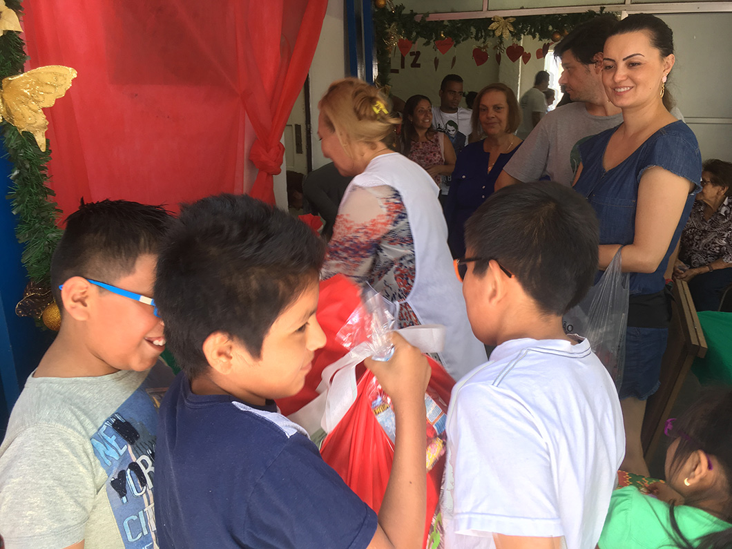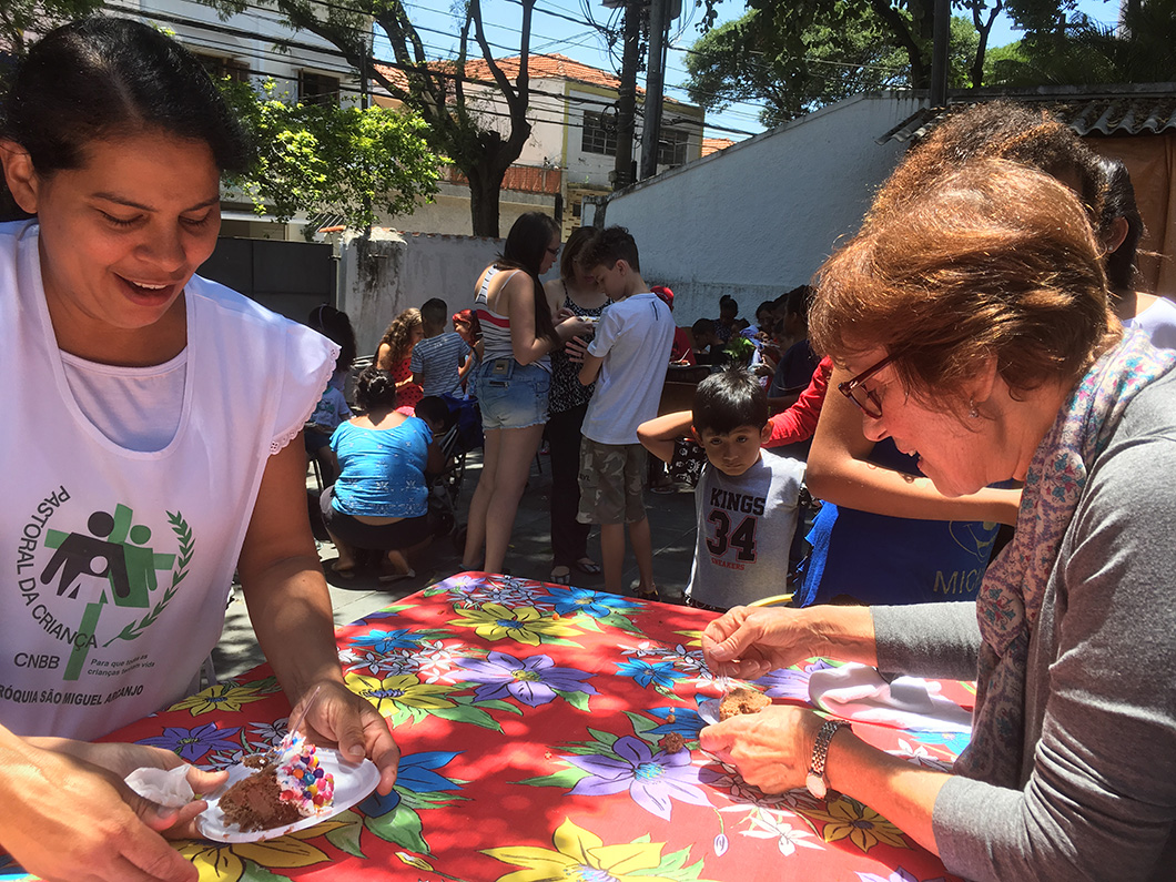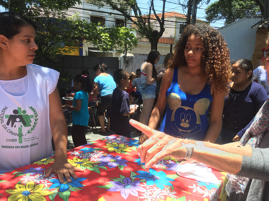 Cerca de 150 crianças participaram da festa de Natal da Pastoral da Criança da paróquia São Miguel Arcanjo, realizada dia 17/12/2016. Estavam presentes também familiares e outros integrantes da comunidade. Na oração que fez com os participantes, o Pe. Julio lembrou de D. Paulo Evaristo Arns, arcebispo emérito de São Paulo, que morreu dias antes:
