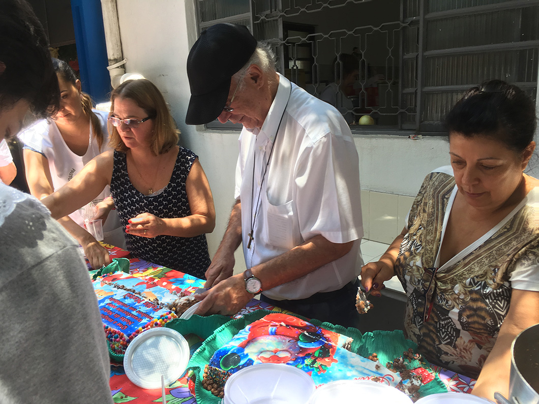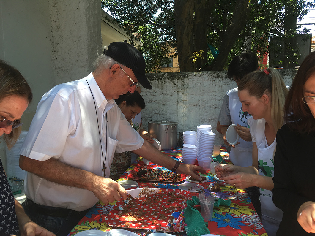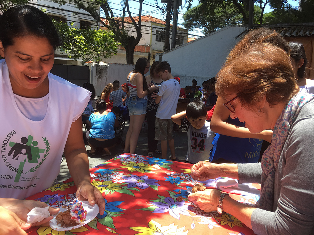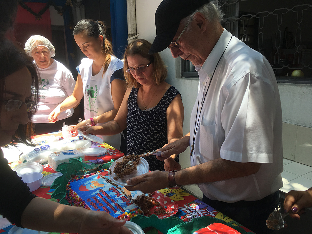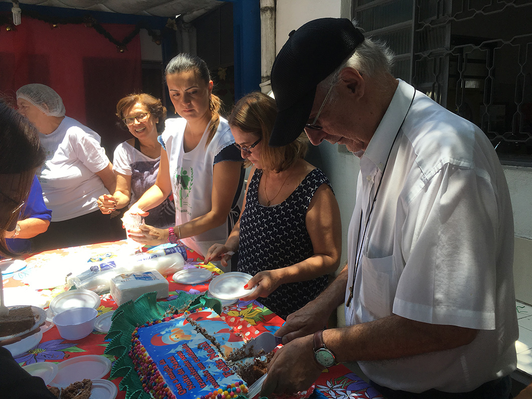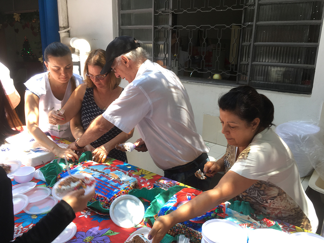 Cerca de 150 crianças participaram da festa de Natal da Pastoral da Criança da paróquia São Miguel Arcanjo, realizada dia 17/12/2016. Estavam presentes também familiares e outros integrantes da comunidade. Na oração que fez com os participantes, o Pe. Julio lembrou de D. Paulo Evaristo Arns, arcebispo emérito de São Paulo, que morreu dias antes: