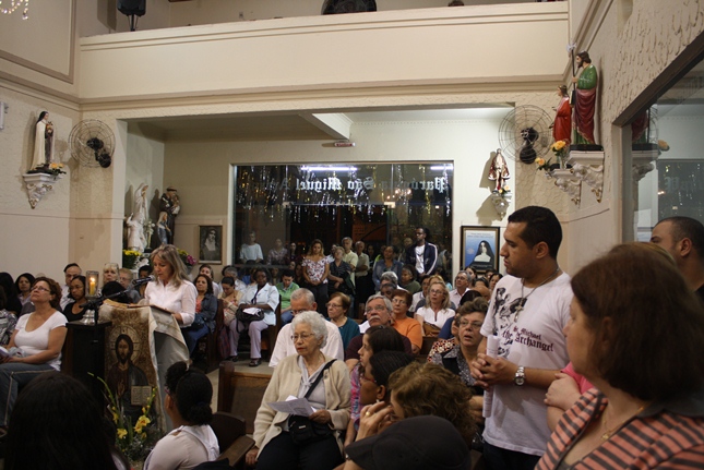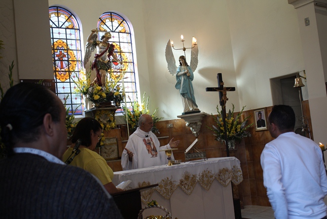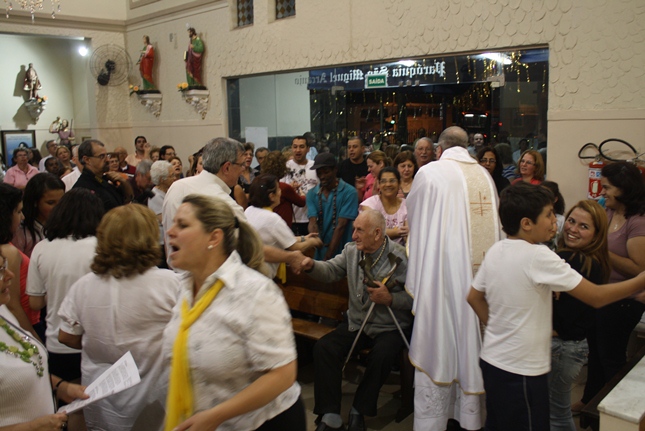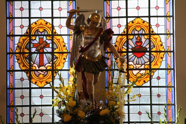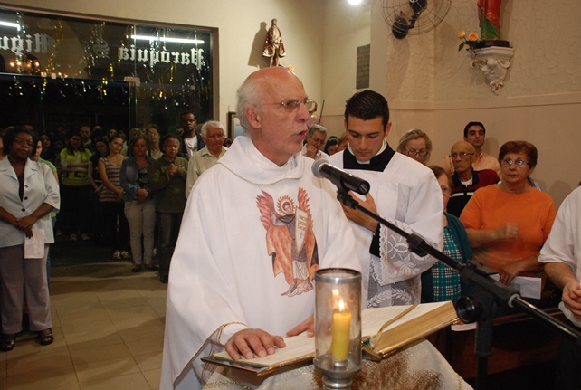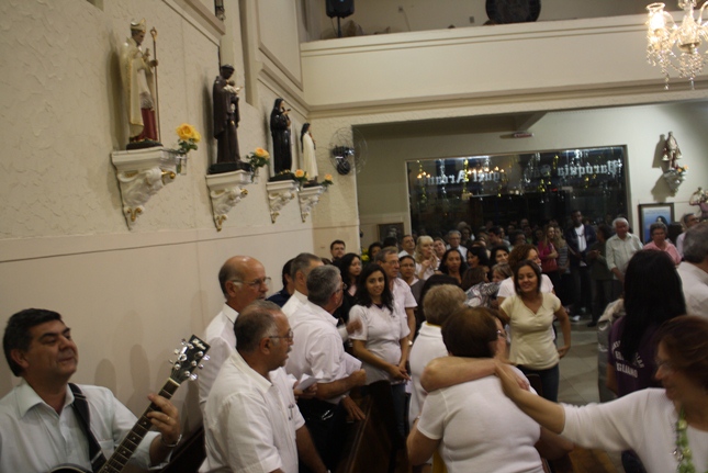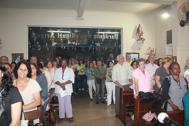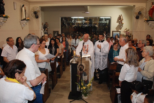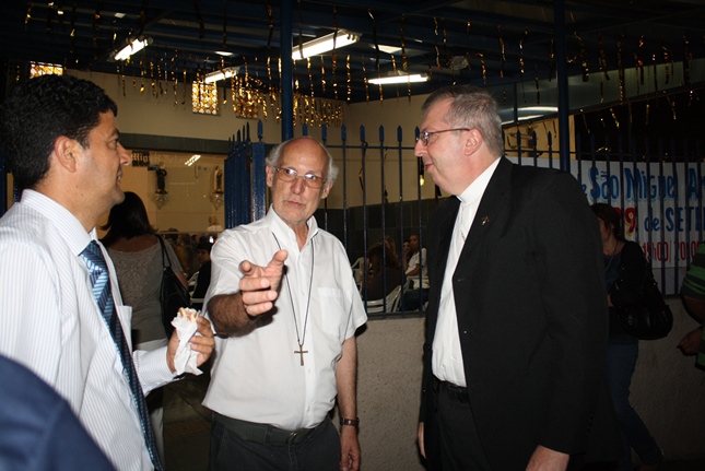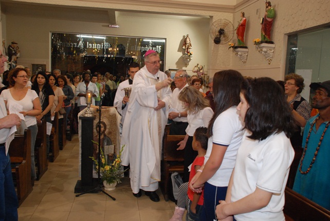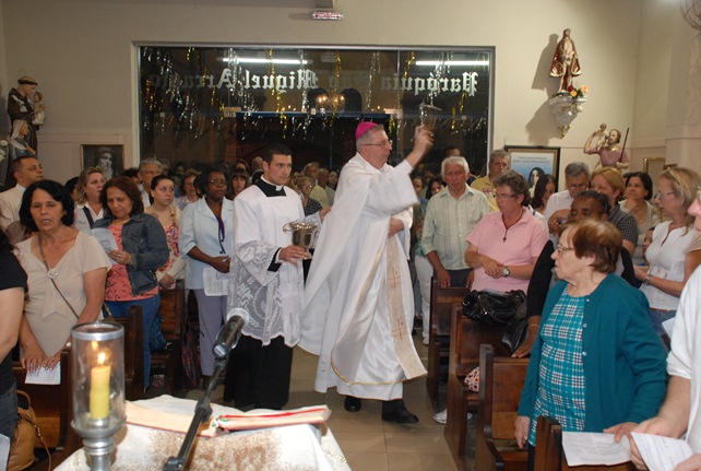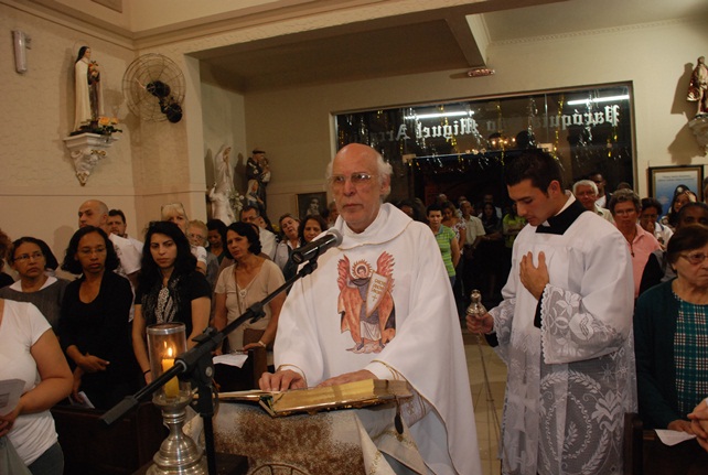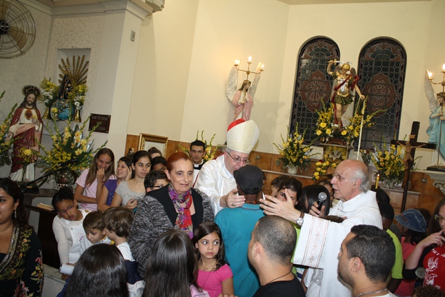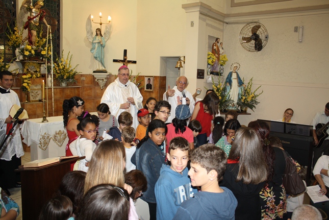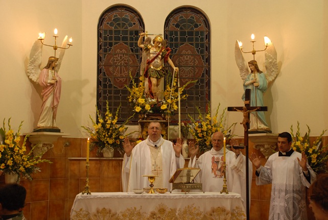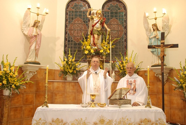 Neste dia 29/09/11, a Festa de São Miguel Arcanjo. Como sempre, muita gente vinda de todas as partes da Cidade de São Paulo e recebendo o tradicional acolhimento da Comunidade. Acolhimento nas barracas de salgados e doces, na Secretaria e especialmente na Igreja, esse ano também com  a missa ao meio dia. Tivemos, portanto, missa às 7hs30, 12hs, 15hs e 20hs. A última celebração, presidida por Dom Milton, Bispo Auxiliar da Arquidiocese de São Paulo.