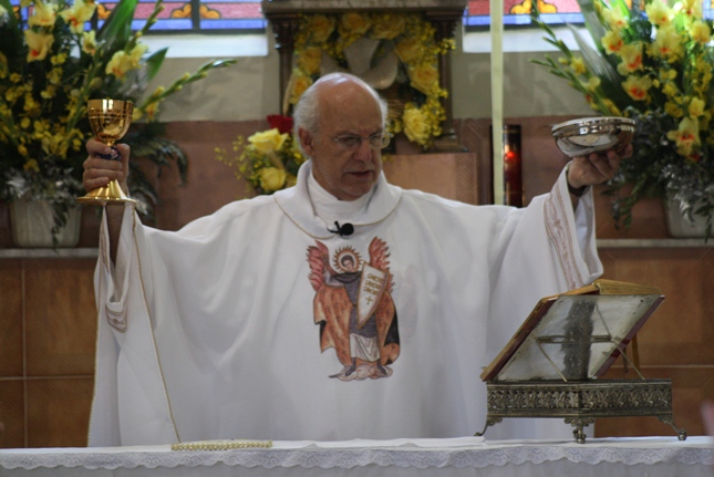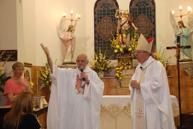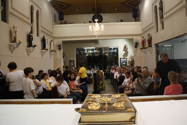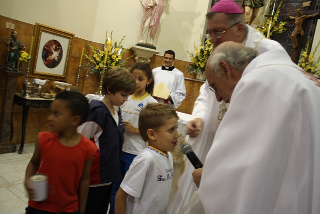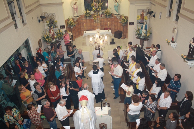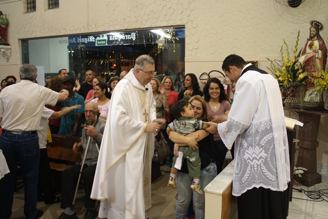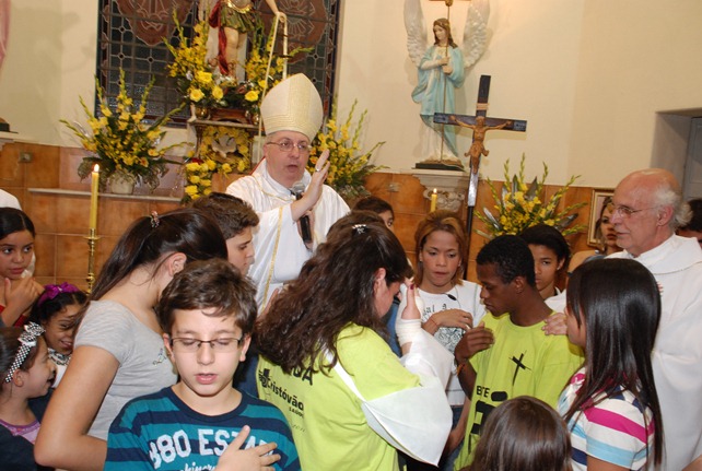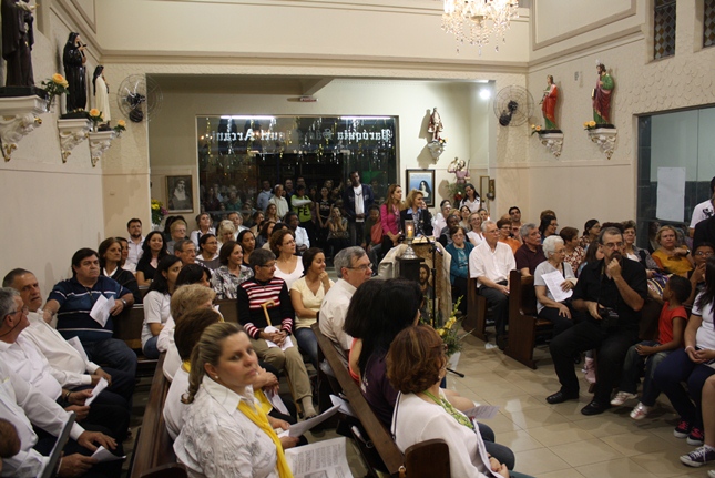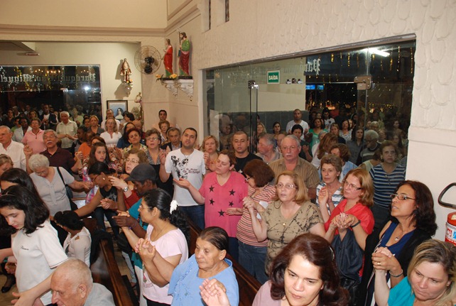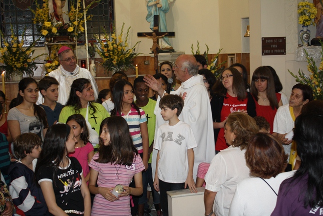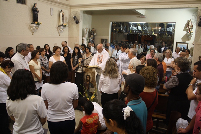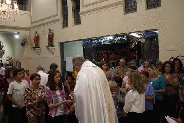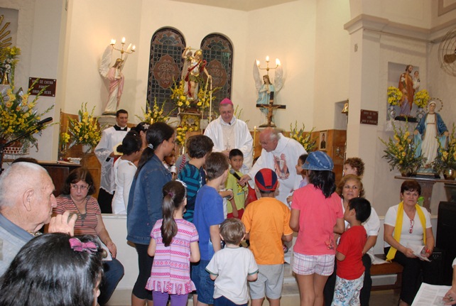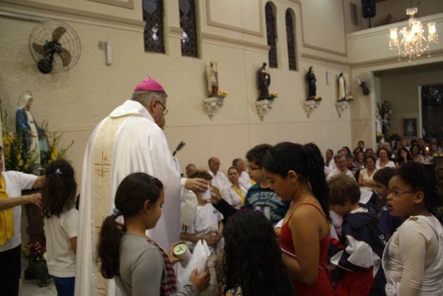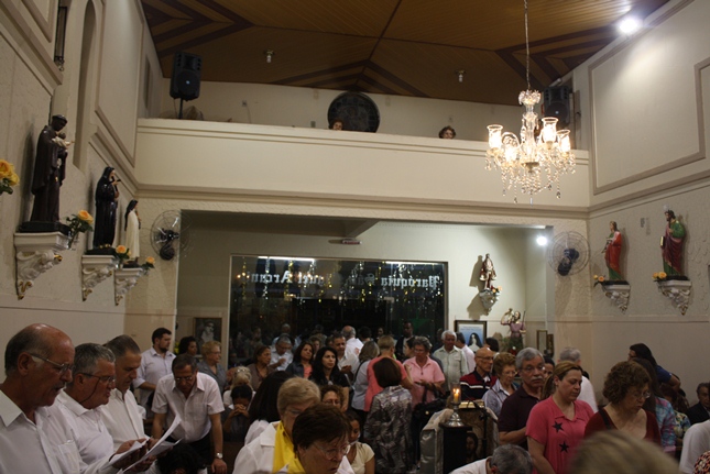Neste dia 29/09/11, a Festa de São Miguel Arcanjo. Como sempre, muita gente vinda de todas as partes da Cidade de São Paulo e recebendo o tradicional acolhimento da Comunidade. Acolhimento nas barracas de salgados e doces, na Secretaria e especialmente na Igreja, esse ano também com  a missa ao meio dia. Tivemos, portanto, missa às 7hs30, 12hs, 15hs e 20hs. A última celebração, presidida por Dom Milton, Bispo Auxiliar da Arquidiocese de São Paulo.