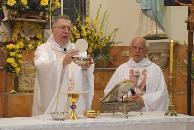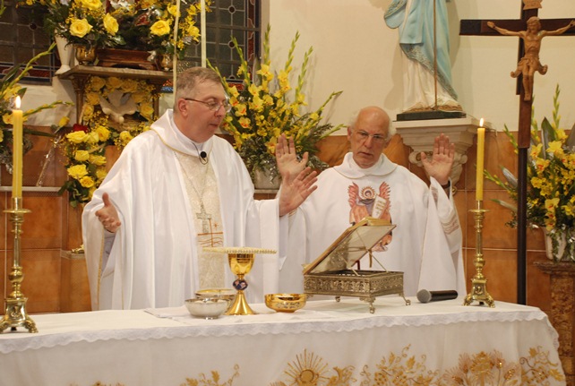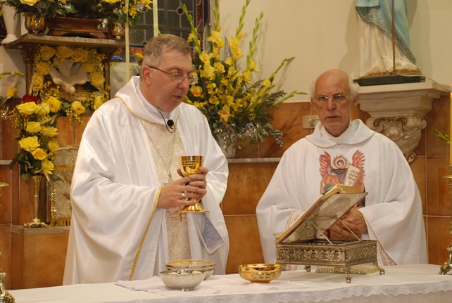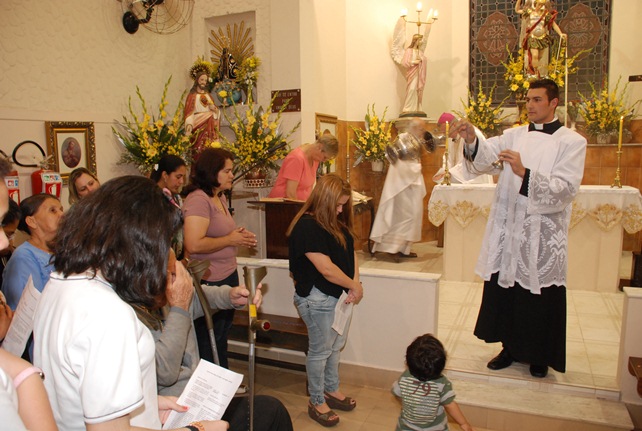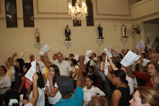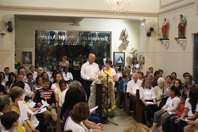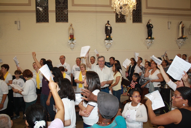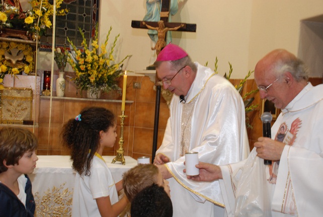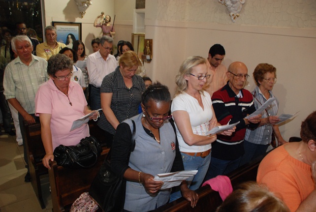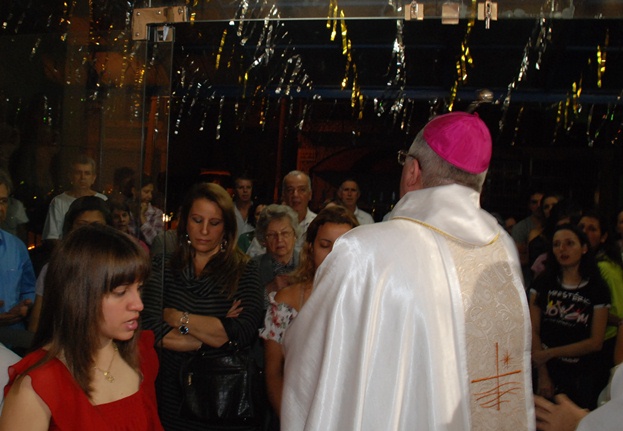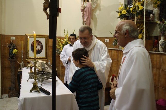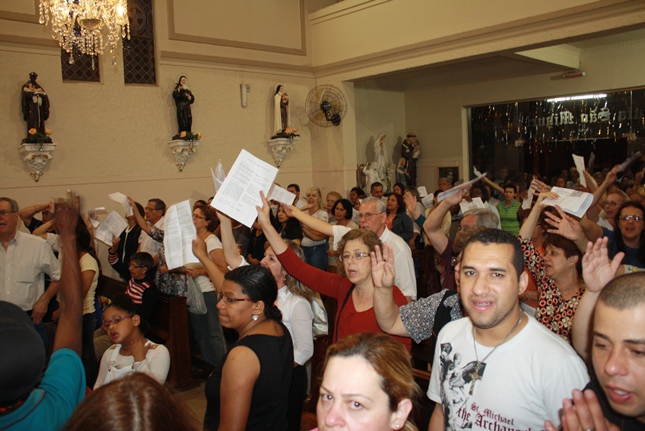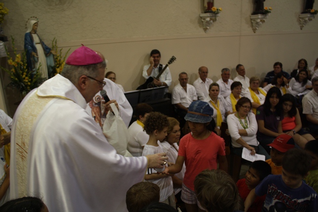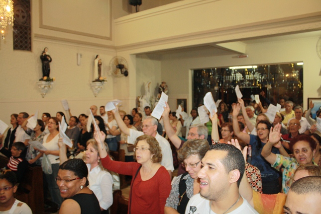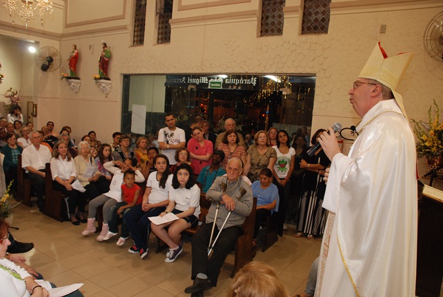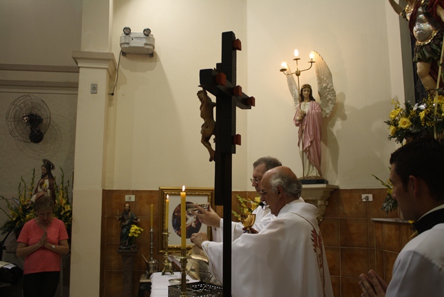 Neste dia 29/09/11, a Festa de São Miguel Arcanjo. Como sempre, muita gente vinda de todas as partes da Cidade de São Paulo e recebendo o tradicional acolhimento da Comunidade. Acolhimento nas barracas de salgados e doces, na Secretaria e especialmente na Igreja, esse ano também com  a missa ao meio dia. Tivemos, portanto, missa às 7hs30, 12hs, 15hs e 20hs. A última celebração, presidida por Dom Milton, Bispo Auxiliar da Arquidiocese de São Paulo.