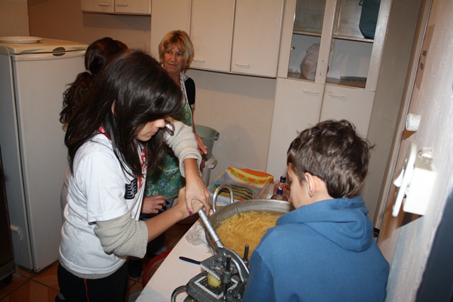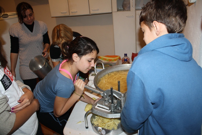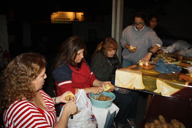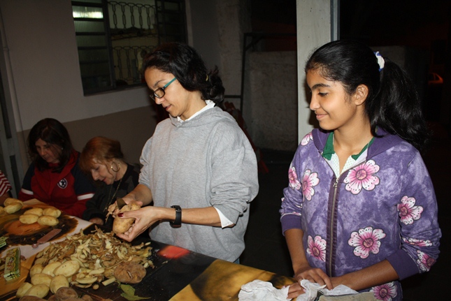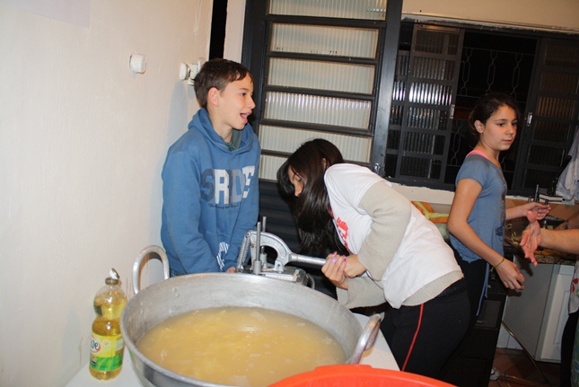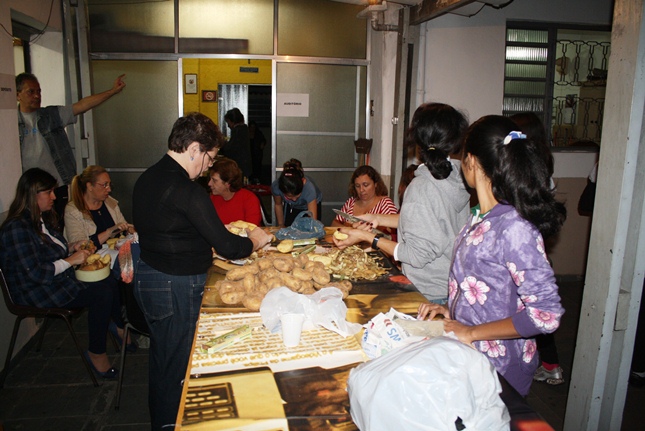 Havia também muita batata. Precisava descascar. Mas teve muita animação e logo o serviço estava pronto.